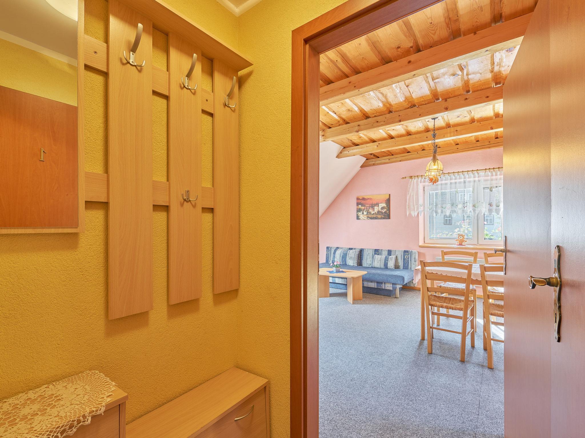 1-Zimmer-Studio 36 m2, im Obergeschoss. Abgeschrägtes Wohn-/Schlafzimmer mit 1 Doppeldiwanbett, 1 Doppelbett und Sat-TV. Kochnische (2 Kochplatten, Wasserkocher, Mikrowelle, Grill, elektrische Kaffeemaschine) mit Esstisch. Dusche/WC. E-Heizung, Boiler. Zur Verfügung: Internet (Wireless LAN, gratis). Bitte beachten: geeignet für Familien. Nichtraucher-Unterkunft. 1 kleines Haustier/Hund erlaubt.