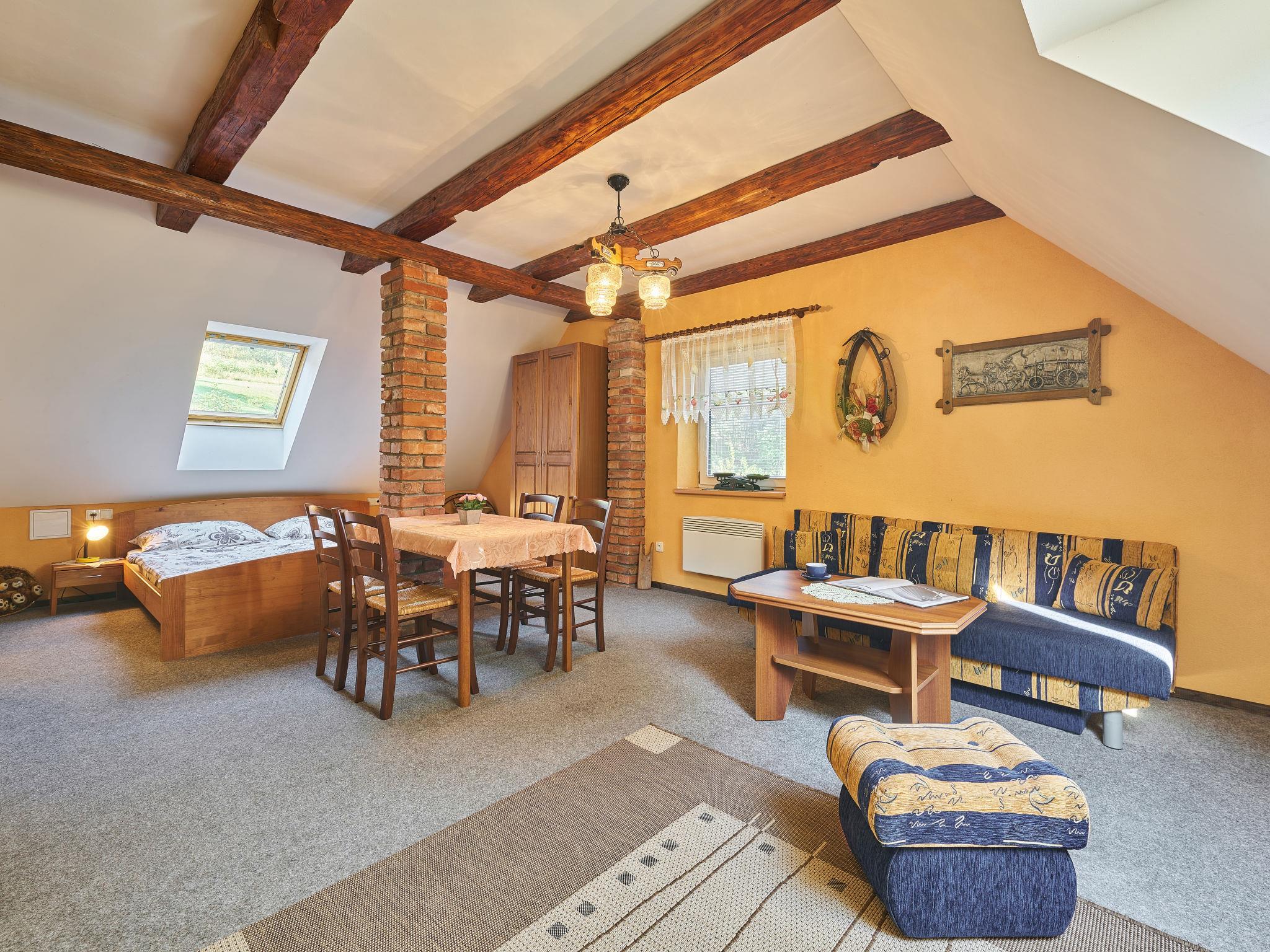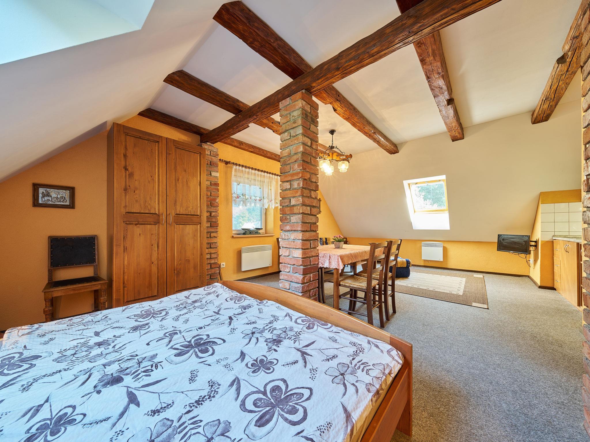 Chlívce 8 km von Hronov: Gemütlicher, freistehender Landsitz "Chlívce u Hronova", auf 2 Stockwerken. Ausserhalb des Ortes, ruhige, erhöhte Lage. Zur Mitbenutzung: Grundstück 1'000 m2, Schwimmbad rund (4,60 m Durchmesser, saisonale Verfügbarkeit: 01.Jul. - 31.Aug.). Laube, Gartenmöbel, Grill, Feuerstelle, Grillhaus, Kinderspielplatz, Parkplatz beim Haus. Einkaufsgeschäft 3.5 km, Einkaufszentrum 8 km, Restaurant 250 m, Bushaltestelle "Chlívce" 500 m, Bahnstation "Hronov, Cervený Kostelec" 8 km, Freibad 9 km, Hallenbad 35 km, Naturbadeteich 4 km. Skilift, Skipisten 200 m, Langlaufloipe 10 m. Nahe gelegene Sehenswürdigkeiten: Muzeum Aloise Jiráska/Hronov 8 km, Adršpašsko-teplické skály 17 km, Broumovské steny, Náchod 17 km, Ratiborice a Babiccino údolí 20 km, Broumov 28 km, Relaxpark Pec pod Snežkou 50 km. Bekannte Skigebiete sind gut erreichbar: Radvanice 10 km, Petrikovice 16 km, Mladé Buky 34 km, Janské Lázne 40 km. Bekannte Seen in der Umgebung sind gut erreichbar: vodní nádrž Rozkoš 25 m. Kinderhaus im Garten. Mahlzeiten können auf Anfrage in einem privaten Club (250 m entfernt) arrangiert werden. Dieses Ferienhaus kann als ganzes Haus oder in der Nebensaison separat für 4 voll ausgestattete Apartments gemietet werden.