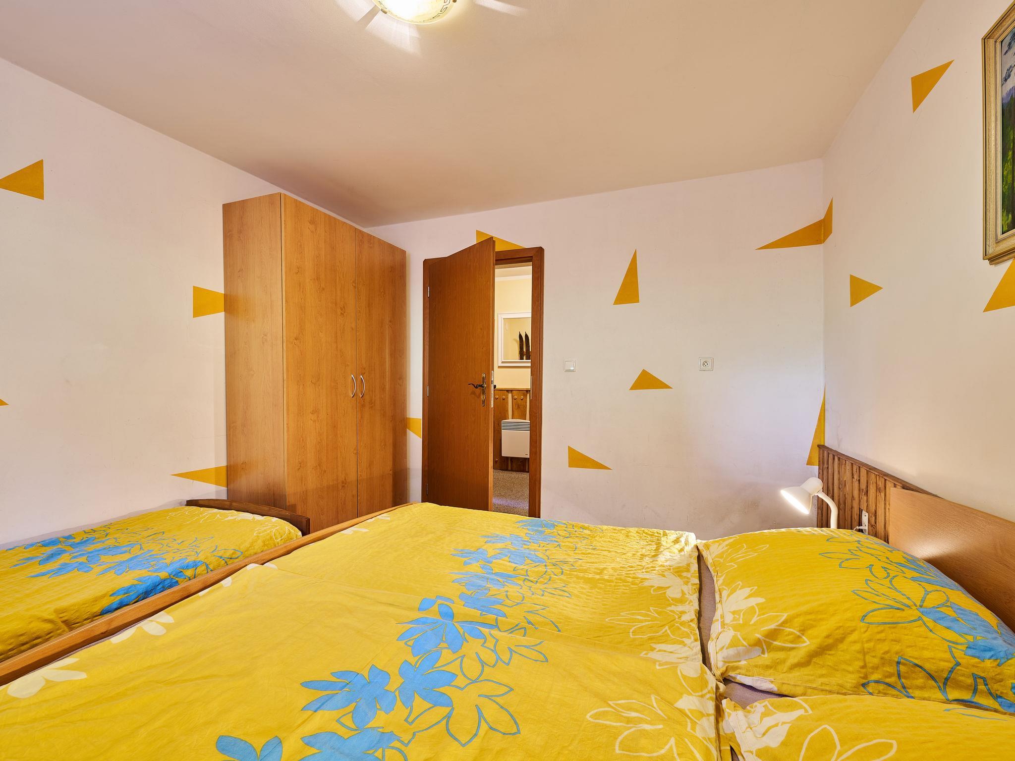 3-Zimmer-Wohnung 69 m2, im erhöhten Erdgeschoss. Wohnzimmer mit 1 Diwanbett und Sat-TV. 2 Zimmer, jedes Zimmer mit 1 Bett und 1 Doppelbett. Kochnische (2 Kochplatten, Wasserkocher, Mikrowelle, Grill, elektrische Kaffeemaschine) mit Esstisch. Dusche/WC. E-Heizung, Boiler. Zur Verfügung: Internet (Wireless LAN, gratis). Bitte beachten: geeignet für Familien. Nichtraucher-Unterkunft. 1 kleines Haustier/Hund erlaubt. Eigener Eingang.