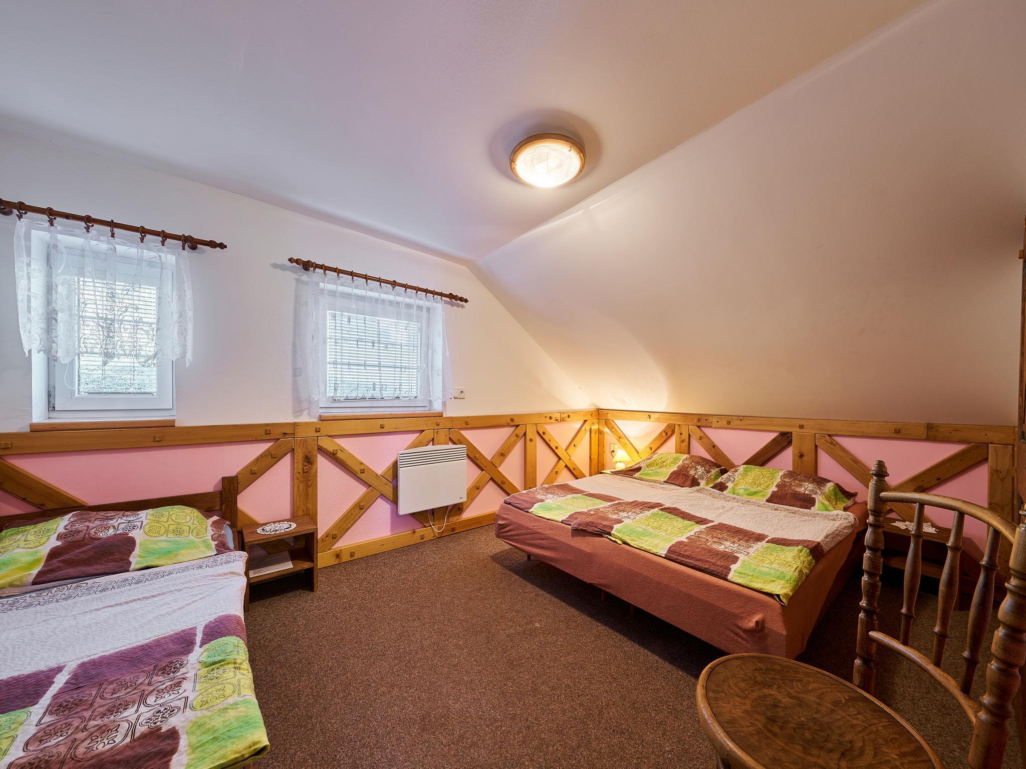 Chlívce 8 km von Hronov: Gemütlicher, freistehender Landsitz "Chlívce u Hronova", auf 2 Stockwerken. Ausserhalb des Ortes, ruhige, erhöhte Lage. Zur Mitbenutzung: Grundstück 1'000 m2, Schwimmbad rund (4,60 m Durchmesser, saisonale Verfügbarkeit: 01.Jul. - 31.Aug.). Laube, Gartenmöbel, Grill, Feuerstelle, Grillhaus, Kinderspielplatz, Parkplatz beim Haus. Einkaufsgeschäft 3.5 km, Einkaufszentrum 8 km, Restaurant 250 m, Bushaltestelle "Chlívce" 500 m, Bahnstation "Hronov, Cervený Kostelec" 8 km, Freibad 9 km, Hallenbad 35 km, Naturbadeteich 4 km. Skilift, Skipisten 200 m, Langlaufloipe 10 m. Nahe gelegene Sehenswürdigkeiten: Muzeum Aloise Jiráska/Hronov 8 km, Adršpašsko-teplické skály 17 km, Broumovské steny, Náchod 17 km, Ratiborice a Babiccino údolí 20 km, Broumov 28 km, Relaxpark Pec pod Snežkou 50 km. Bekannte Skigebiete sind gut erreichbar: Radvanice 10 km, Petrikovice 16 km, Mladé Buky 34 km, Janské Lázne 40 km. Bekannte Seen in der Umgebung sind gut erreichbar: vodní nádrž Rozkoš 25 m. Kinderhaus im Garten. Mahlzeiten können auf Anfrage in einem privaten Club (250 m entfernt) arrangiert werden. Dieses Ferienhaus kann als ganzes Haus oder in der Nebensaison separat für 4 voll ausgestattete Apartments gemietet werden.