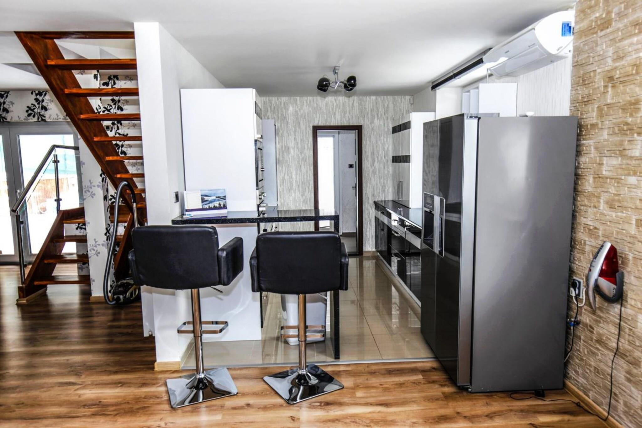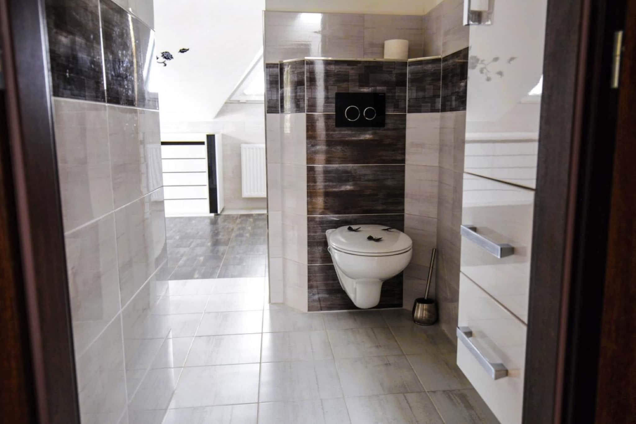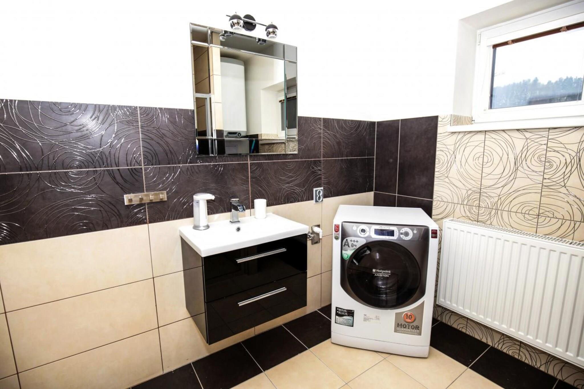 Entdecken Sie den perfekten Kurzurlaub in dieser charmanten Villa in Frenštát pod Radhoštem, die einen ruhigen Rückzugsort für bis zu 14 Gäste bietet. Mit 6 geräumigen Schlafzimmern ist dieses Haus ideal für Familien oder Gruppen, die Komfort, Entspannung und Abenteuer suchen. Das Anwesen bietet weitläufige Außenbereiche, in denen sowohl Kinder als auch Erwachsene die frische Luft genießen können, sowie eine kinderfreundliche Nachbarschaft und ein Waldgebiet, in dem Sie sich wie in Ihrem eigenen privaten Resort fühlen. Nur 10 km von malerischen Dörfern wie Nový Jicín und Štramberk entfernt, gibt es keinen Mangel an Aktivitäten, die Sie genießen können. Wenn Sie Spaß haben möchten, besuchen Sie den Aquapark Frenštát Pod Radhoštem oder fordern Sie sich im nur 13 km entfernten Prosper Golf Club heraus. Im Winter können Sie in nahe gelegenen Resorts wie Malenovice Skifahren oder in den Sommermonaten eine malerische Wanderung unternehmen. Egal, ob Sie Abenteuer oder Entspannung suchen, diese Villa bietet alles! Diese Villa kombiniert modernen Komfort mit Entspannung vom Feinsten. Entspannen Sie sich nach einem Tag voller Entdeckungen im Whirlpool oder in der Sauna oder genießen Sie einfach die ruhige Umgebung. In der voll ausgestatteten Küche können Sie mühelos Mahlzeiten zubereiten und die geräumigen Wohnbereiche bieten mit WLAN, TV-Kanälen und vielen gemütlichen Ecken den perfekten Ort zum Entspannen. Die Außenterrasse und der Garten eignen sich perfekt für Grillabende mit der Familie oder einfach zum Sonnenbaden, während die Kinder in der Nähe sicher spielen.