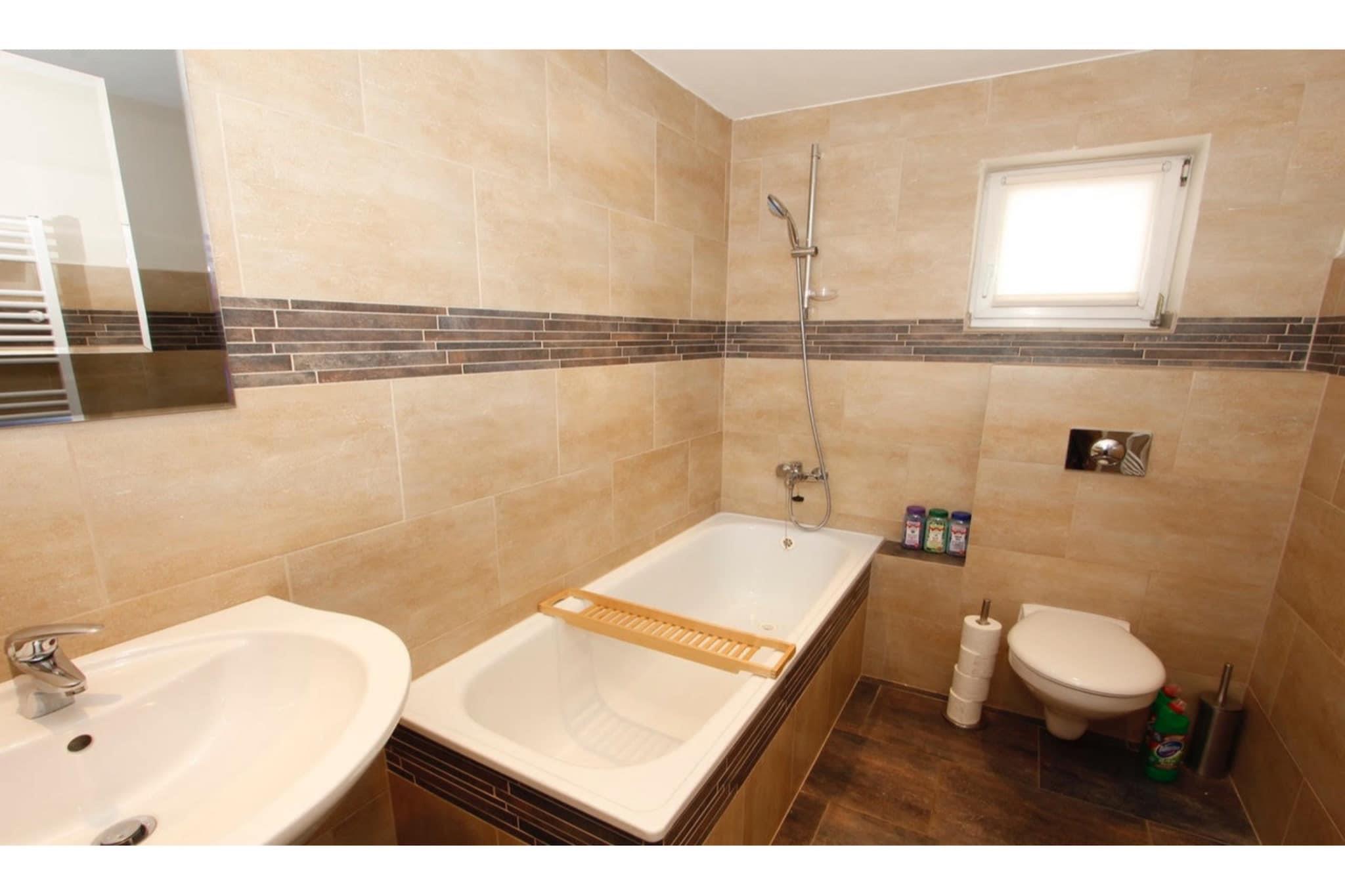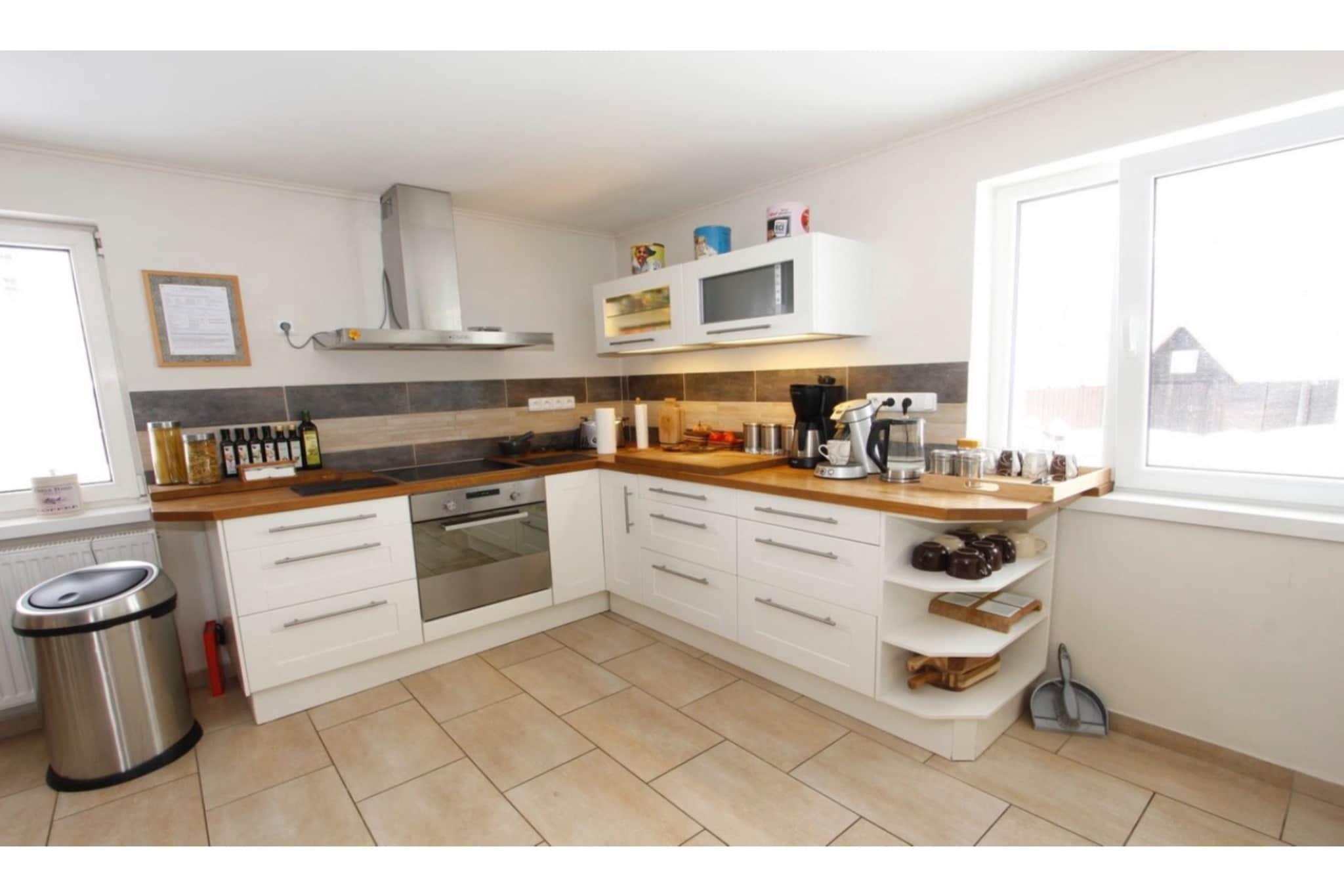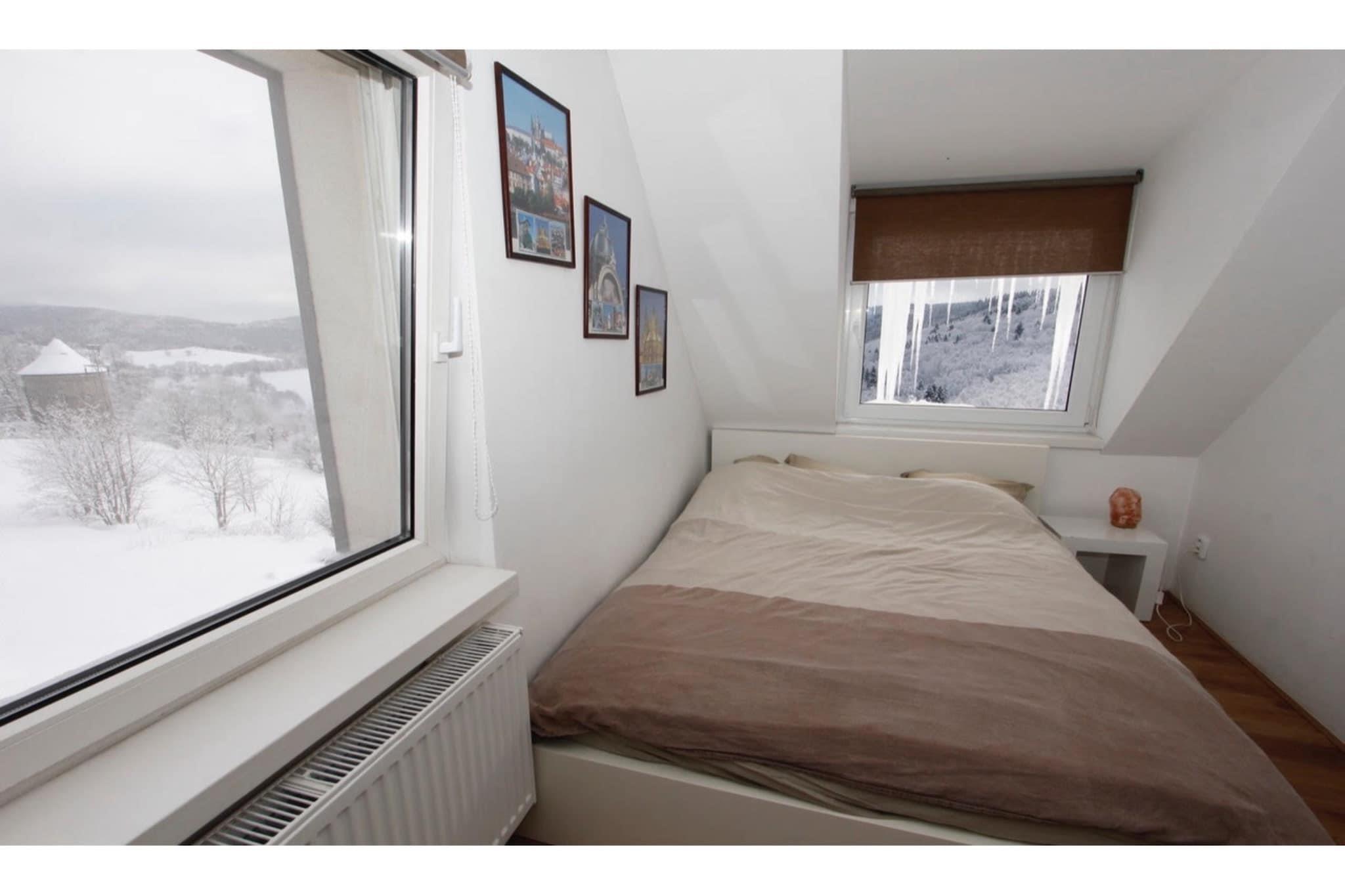 Villa Maximus – Wellness & Natururlaub im Erzgebirge Die Villa Maximus liegt eingebettet in die sanften Hügel des Erzgebirges im Dorf Nové Mesto – einem ruhigen Stadtteil des historischen Jáchymov, nahe der deutschen Grenze. Nur wenige Minuten von den weltberühmten Radon-Kurorten entfernt, ist sie das perfekte Reiseziel für Gäste, die Entspannung und Abenteuer zugleich suchen. Die lokale Kurtradition wurde von der Nobelpreisträgerin Marie Curie inspiriert, deren Forschungen den Grundstein für die Heilbehandlungen legten, für die Jáchymov heute bekannt ist. Im Winter verwandelt sich die Region in ein Skiparadies mit Top-Skigebieten wie Klínovec, Boží Dar, Plešivec und Oberwiesenthal in der Nähe. In den wärmeren Monaten können Gäste wandern, Rad fahren, Golf spielen, Rafting machen, angeln oder die vielen Schlösser, Burgen und historischen Stätten der Region erkunden. Die berühmten Kurorte Karlsbad und Marienbad sind ebenfalls leicht zu erreichen und bieten sich für einen perfekten Tagesausflug an. Ihr zweites Zuhause Die Villa Maximus ist geräumig, gemütlich und liebevoll eingerichtet – ideal für größere Familien oder Gruppen von bis zu 12 Personen. Das Haus verfügt über: Ein gemütliches Wohnzimmer Eine voll ausgestattete Küche 6 Schlafzimmer und 6 Badezimmer Einen gemütlichen Aufenthaltsraum zum Spielen und Entspannen Vom Balkon oder den Gartenterrassen aus genießen Sie den atemberaubenden Blick auf die umliegende Landschaft, die mittelalterlichen Türme und die Skipisten von Napravná. Der große Garten bietet viel Platz für Kinder zum freien und sicheren Spielen. Privatparkplätze für 3 bis 4 Autos stehen zur Verfügung. Warum Villa Maximus wählen? Die weltberühmten Kureinrichtungen von Jáchymov sind zu Fuß erreichbar. Ruhige Lage in der Nähe von Natur, Skigebieten und Wellnesszentren. Geräumige Unterkunft, ideal für Gruppen oder Familien. Atemberaubender Bergblick und ein familienfreundlicher Garten. Eine seltene Gelegenheit, in einer Stadt mit einzigartigem Wissenschafts- und Kurtradition zu übernachten. Buchen Sie Ihren Aufenthalt und erleben Sie die wohltuende Ruhe des Erzgebirges – wo Wellness, Natur und Geschichte zusammenkommen.