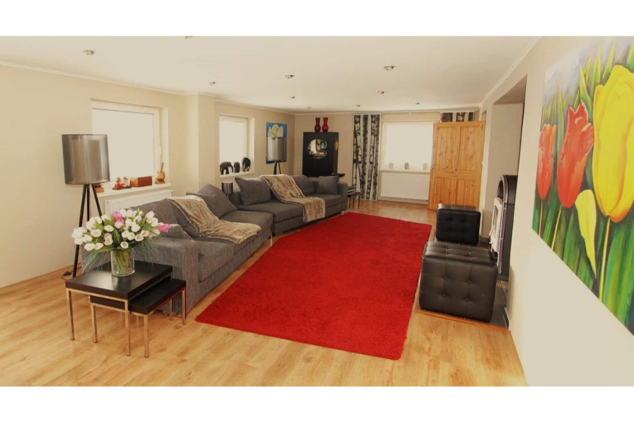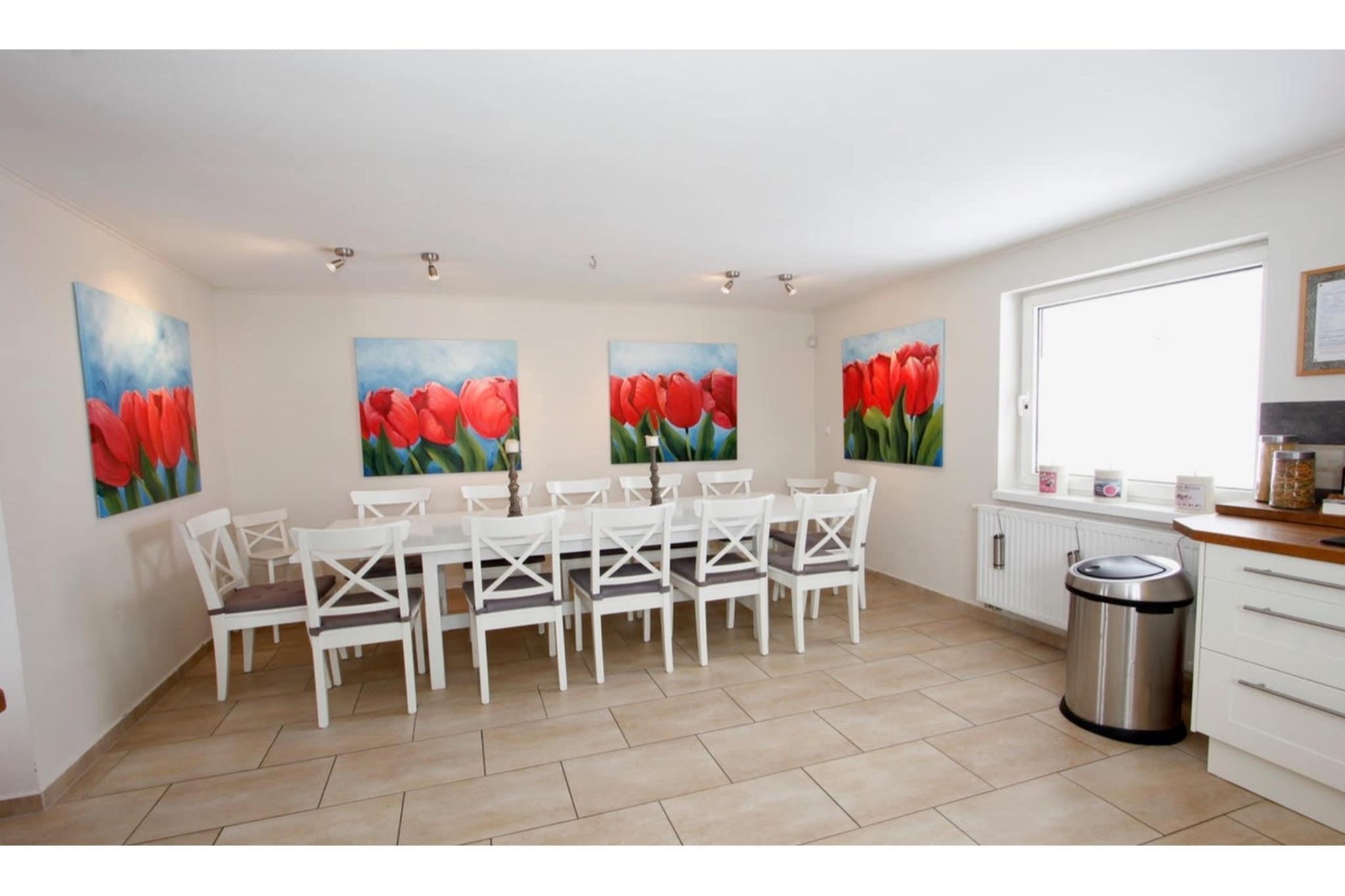 Parterre: (Wohnzimmer(TV(Flatscreen, Satellit, Niederländische TV-Kanäle, Deutsch Fernsehsender, internationale TV-Kanäle), Herd(Holz), Sitzecke, DVD-Spieler, Balkon), Küche(Esstisch(12 Personen), Wasserkocher, Kochherd(4 Kochplatten, Ceranfeld, Induktion), Dunstabzugshaube, Kaffeemaschine, Backofen, Mikrowelle, Spülmaschine, Kühl-/Gefrierkombination), Badezimmer(Badewanne, Waschbecken, Toilette), Toilette(Waschbecken)) In der 1. Etage: (Schlafzimmer mit Badezimmer(Doppelbett, Dusche, Waschbecken, Toilette), Schlafzimmer mit Badezimmer(Doppelbett, Dusche, Waschbecken, Toilette), Schlafzimmer mit Badezimmer(Doppelbett, Dusche, Waschbecken, Toilette)) In der 2. Etage: (Schlafzimmer mit Badezimmer(Doppelbett, Badewanne mit Dusche, Waschbecken, Toilette), DVD-Spieler) Souterrain: (Waschraum(Trockner, Waschbecken, Toilette, Waschmaschine), Freizeitraum(Esstisch, Sitzecke, Gesellschaftsspiele), Abstellraum) Gästeunterkunft in der 1. Etage: (Schlafzimmer(Etagenbett, Sitzecke), Durchgangsschlafzimmer(Doppelbett), Badezimmer(Dusche, Waschbecken, Toilette)) Terrasse(alleinige Nutzung), Garten(alleinige Nutzung), Gartenmöbel, Grill, Parkplatz, Kinderbett, Hochstuhl, Föhn