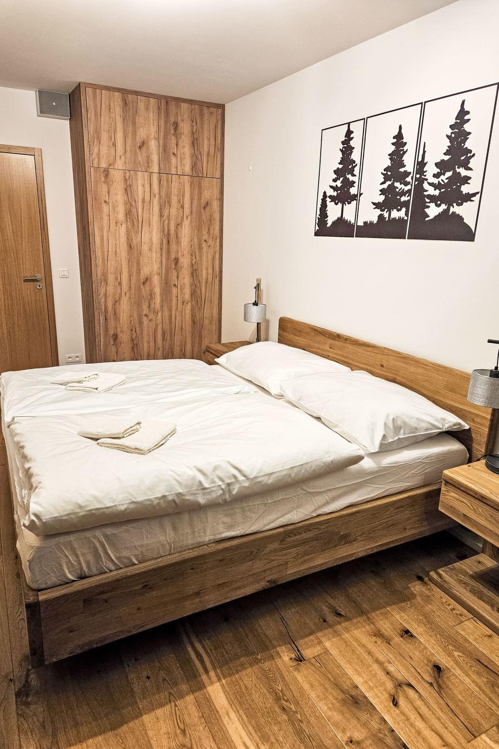 "Ski&Bike Siréna", 2-Zimmer-Wohnung. Geräumig: Wohnzimmer mit 1 Doppeldiwanbett und TV. Ausgang zum Balkon. 1 Zimmer mit 1 Doppelbett. Kochnische (Backofen, Geschirrspüler, 4 Glaskeramikplatten, Toaster, Wasserkocher, Mikrowelle, Tiefkühler, elektrische Kaffeemaschine) mit Esstisch. Dusche/WC. Balkon. Balkonmöbel. Schöne Sicht auf die Landschaft. Zur Verfügung: Internet (WLAN, gratis). Parkplatz Nr. 24. Bitte beachten: geeignet für Familien. Nichtraucher-Unterkunft.