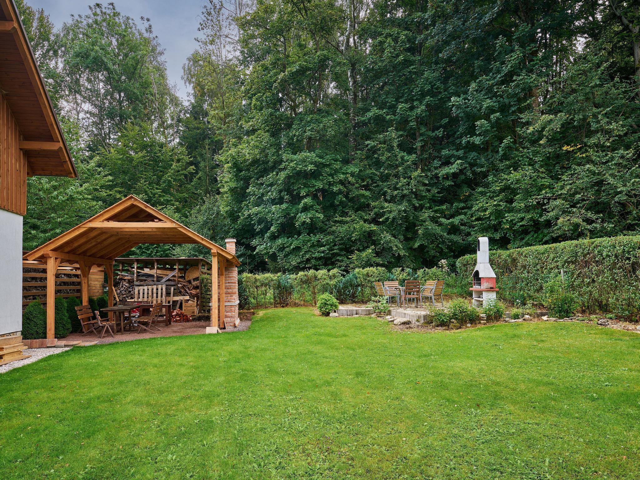 "U Švýcarského dvora II", 1-Zimmer-Wohnung 27 m2, im Erdgeschoss. Zweckmässig und gemütlich eingerichtet: 1 Zimmer mit 1 Bett, 1 Doppelbett, Esstisch und Sat-TV. Kochnische (2 Kochplatten, Wasserkocher, Mikrowelle). Dusche/WC. Heizung. Sicht auf den Garten. Zur Verfügung: Internet (WLAN, gratis). Bitte beachten: Nichtraucher-Unterkunft. Rauchmelder, Feuerlöscher.