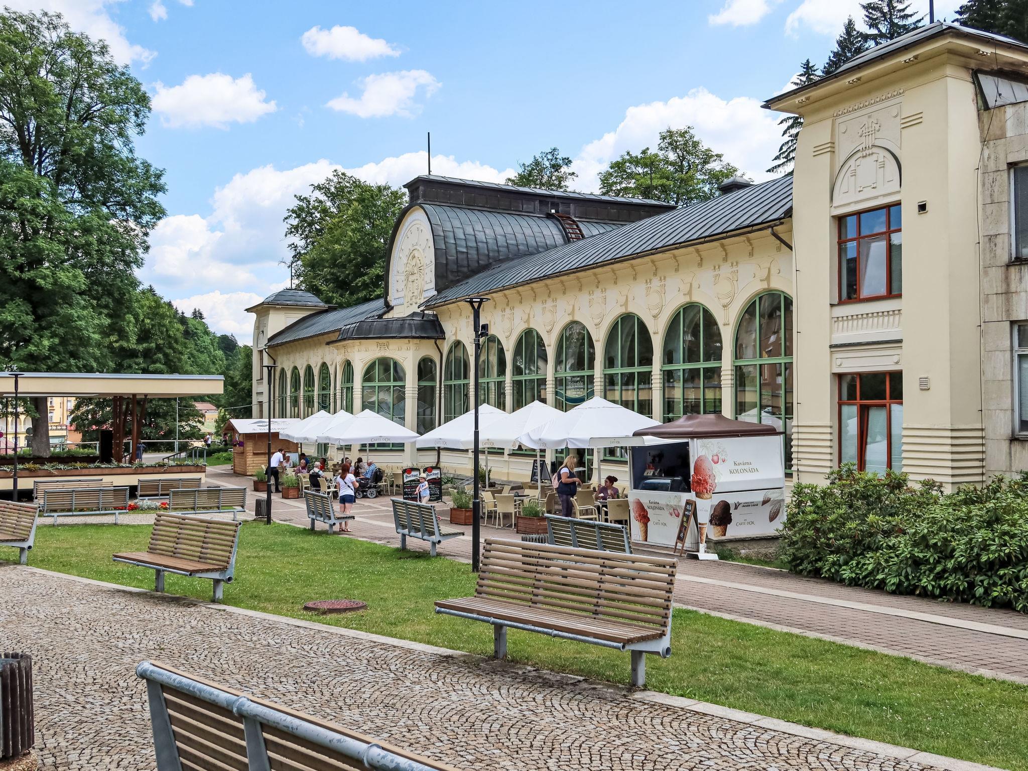 Gemütliches, freistehendes, komfortables Landhaus "U Švýcarského dvora", Baujahr 2006. 4 Wohnungen im Ferienhaus. Im Ort, 800 m vom Zentrum von Janské Lázne, ruhige Lage, 200 m vom Skigebiet. Zur Mitbenutzung: gepflegter Garten mit Rasen. Sitzplatz, Pergola, Gartenmöbel, Grill, Kinderspielplatz (Schaukel). Im Hause: Wireless LAN, Zentralheizung. Parkplatz (für 4 Autos) beim Haus. Lebensmittelgeschäft 1.2 km, Supermarkt 2 km, Restaurant 1 km, Café 1 km, Bushaltestelle "Janské Lázne, Lesní dum" 700 m, Bahnstation "Svoboda nad Úpou" 2.8 km, Freibad 1 km, Hallenbad 1 km, Thermalbad "Janské Lázne" 1 km. Golfplatz (18 Loch) 8 km, Tennis 800 m, Minigolf 2.5 km, Reitstall 2 km, Wanderwege ab Haus 20 m, Radweg 700 m, Skilift 900 m, Gondelbahn 1.7 km, Skipisten 200 m, Skiverleih 600 m, Skibushaltestelle 50 m, Skischule, Schlittelbahn 800 m, Langlaufloipe 2.5 km, Kinderspielplatz 200 m. Nahe gelegene Sehenswürdigkeiten: Aquacentrum, Janské Lázne Spa 1 km, Stezka korunami stromu Janské Lázne 3 km, RelaxPark Pec, lanovka Snežka 15 km, zámek Vrchlabí, Aquacentrum Vrchlabí 18 km, Špindleruv Mlýn, Zoo Safari Dvur Králové 33 km, Adršpašské skály 42 km. Bekannte Skigebiete sind gut erreichbar: Janské Lázne - Koštálka 1.5 km, Cerná hora - Pec 1900 m, Mladé Buky 7 km, Horní Malá Úpa 20 km, Špindleruv Mlýn 34 km. Bekannte Seen in der Umgebung sind gut erreichbar: Dolce Trutnov 18 km. Wandergebiete: krkonošské naucné stezky. Bitte beachten: geeignet für Familien. Besitzer wohnt in separatem Hausteil.