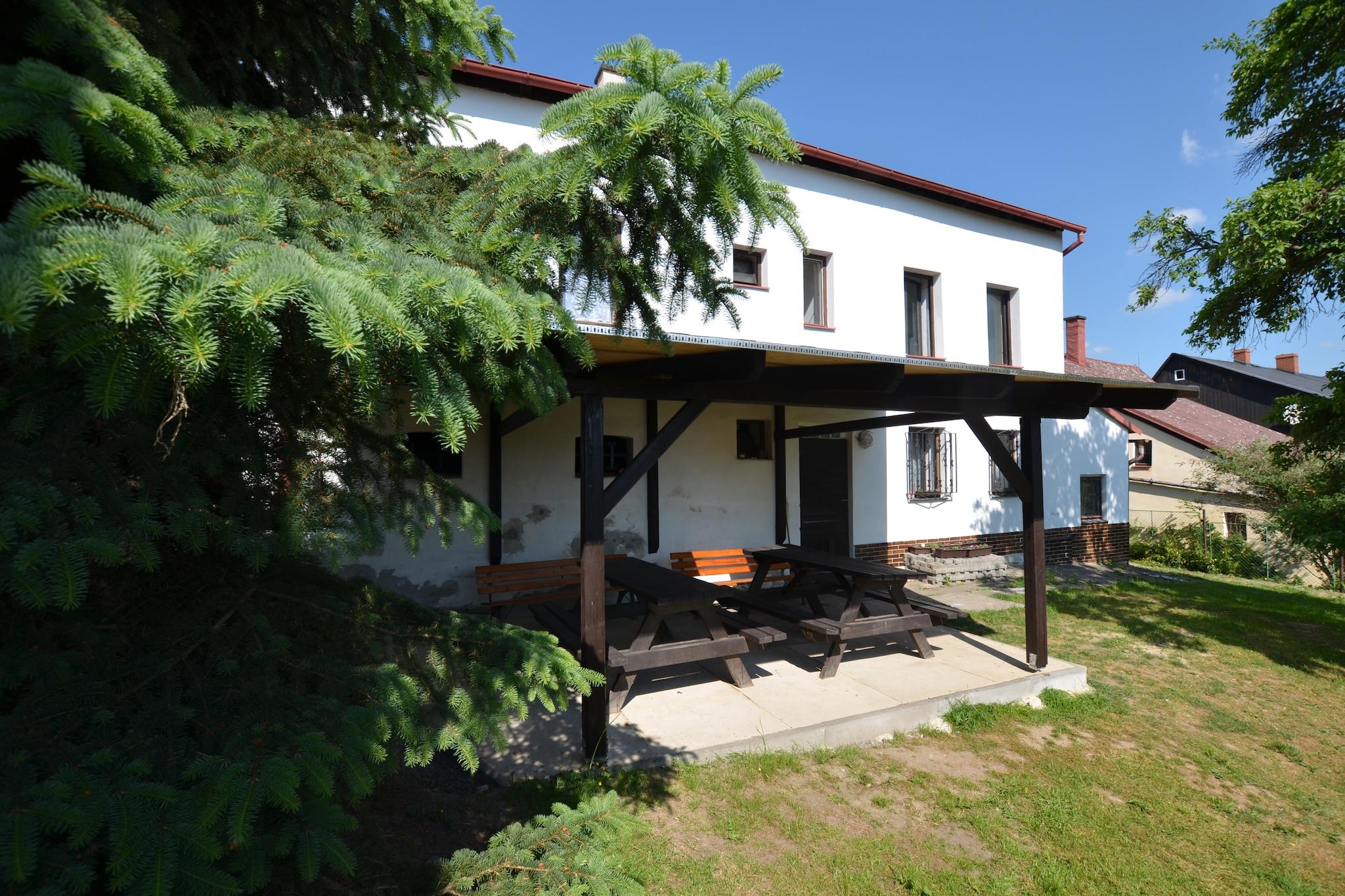 Geräumiges Familiendomizil Dieses großzügige Ferienhaus in Jiretín pod Jedlovou bietet Platz für bis zu 21 Gäste in 8 Schlafzimmern und ist somit ideal für große Familienfeiern oder Gruppenausflüge. Haustiere sind willkommen, und der wunderschön angelegte Garten bietet viel Platz zum Spielen. Gäste können sich auf der überdachten Terrasse oder in den Liegestühlen entspannen. Eine private Sauna und mehrere Sitzbereiche sorgen für Entspannung nach einem erlebnisreichen Tag. Abenteuer und Gastronomie in der Nähe Supermärkte sind nur 200 m und das nächste Schwimmbad nur 500 m vom Haus entfernt. Skibegeisterte erreichen die Pisten mit einem 1 km entfernten Skilift. Die Gegend bietet außerdem malerische Wander- und Radwege, die für Gäste und ihre Haustiere geeignet sind. Restaurants und Cafés in Gehweite bieten lokale Küche – perfekt für ein entspanntes Essen nach Outdoor-Abenteuern. Unterhaltung zu Hause Das Haus verfügt über eine gut ausgestattete Küche mit modernen Geräten wie Backofen, Mikrowelle und Geschirrspüler für Familienmahlzeiten. Gäste können auf den Spielplätzen Billard, Tischtennis oder Darts spielen, während Ihre Haustiere den 800 m² großen Garten erkunden. Parkplätze vor Ort sorgen für Komfort für Gruppen, die mit dem Auto anreisen. Öffentliche Verkehrsmittel sind nur 40 m entfernt. Die Kombination aus Komfort, Erholung und haustierfreundlicher Atmosphäre macht dieses Haus zum idealen Ausgangspunkt, um Nordböhmen zu erkunden.