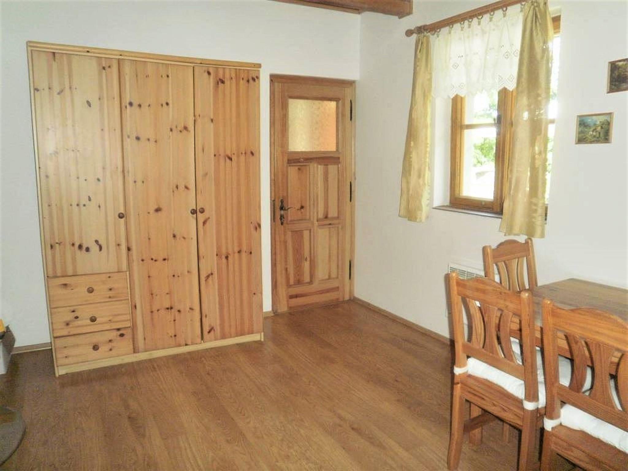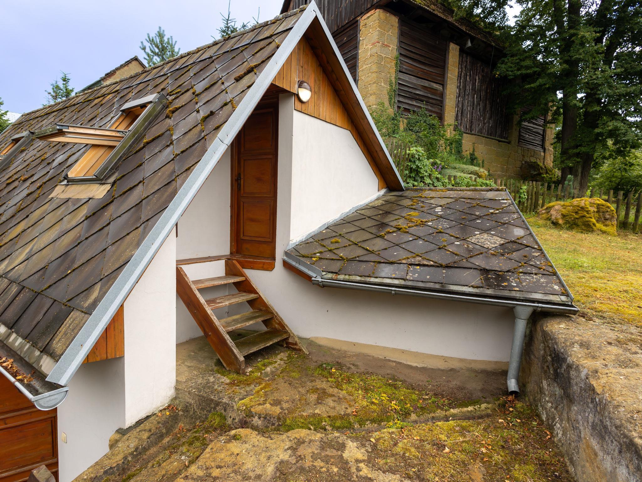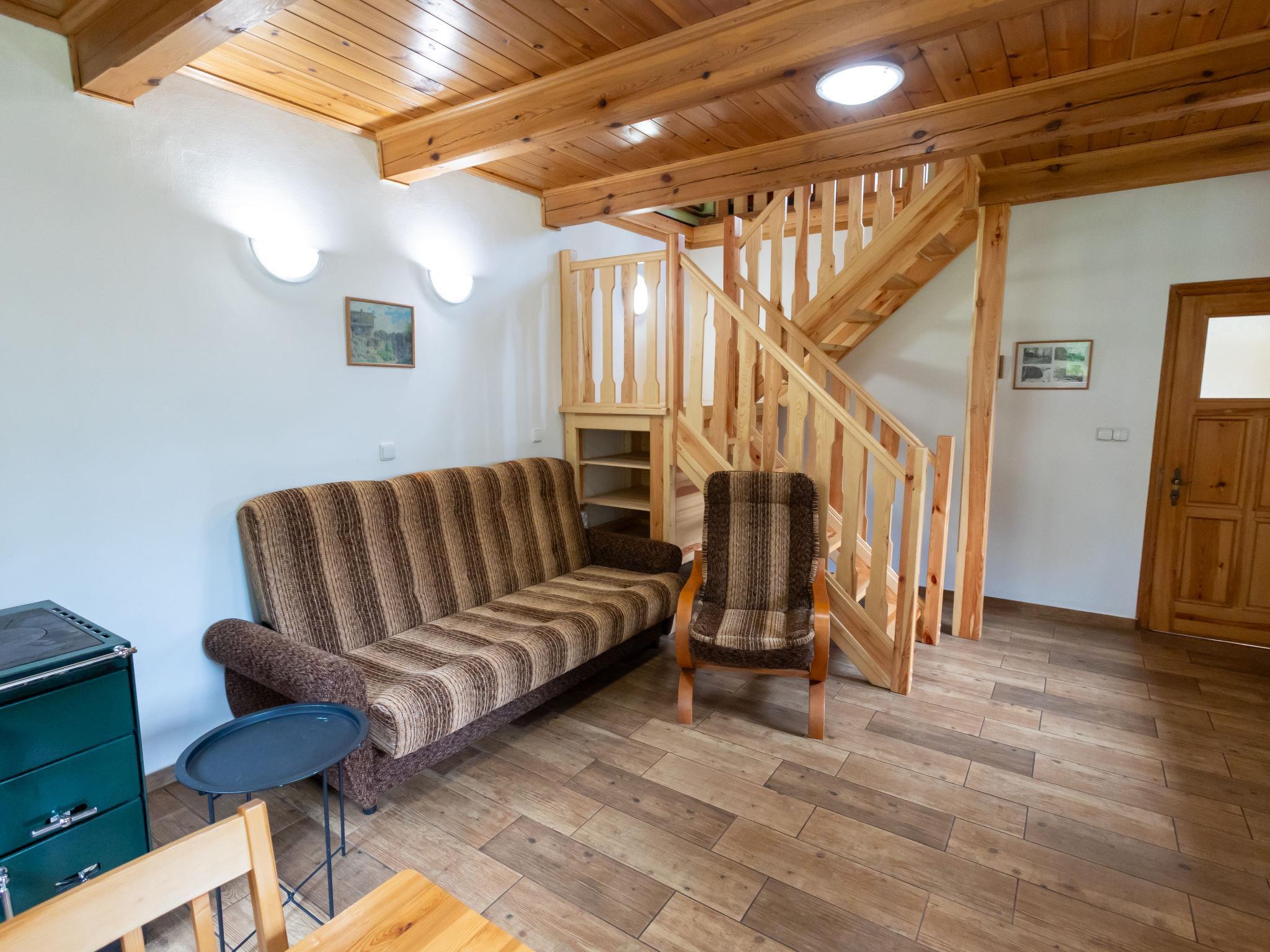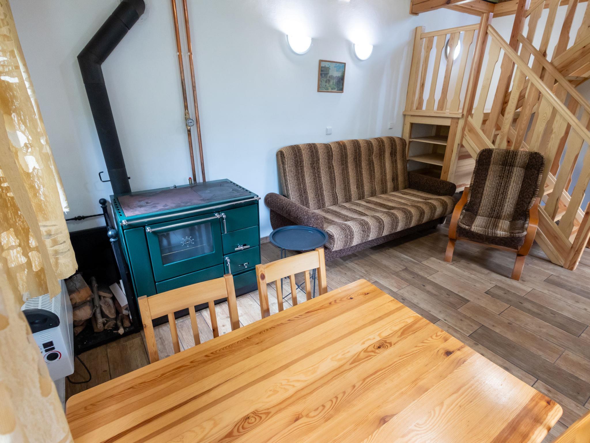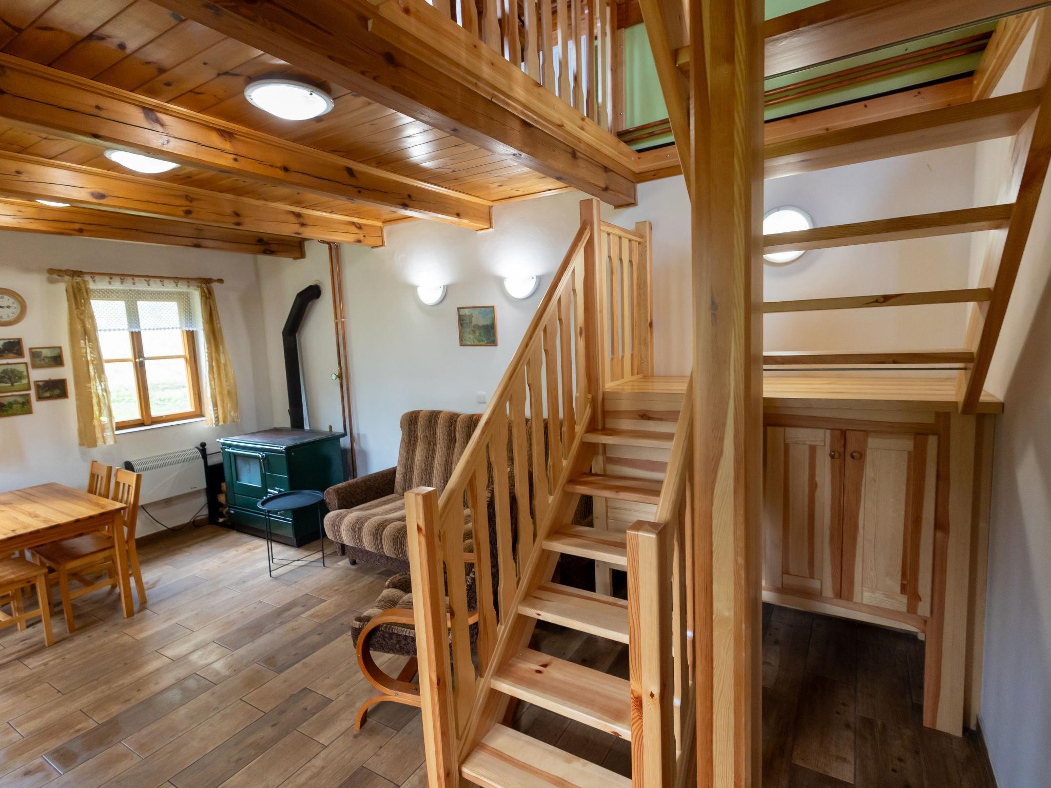 "U skály", 2-Zimmer-Landhaus auf 2 Stockwerken. Gemütlich eingerichtet: offenes Wohn-/Esszimmer mit 1 Doppeldiwanbett, Schwedenofen und Esstisch. Kochnische (2 Kochplatten, Wasserkocher, Mikrowelle). Dusche/WC. Obergeschoss: offen 1 Zimmer mit 4 Betten. E-Heizung, Holzheizung. Geeignet für Familien.