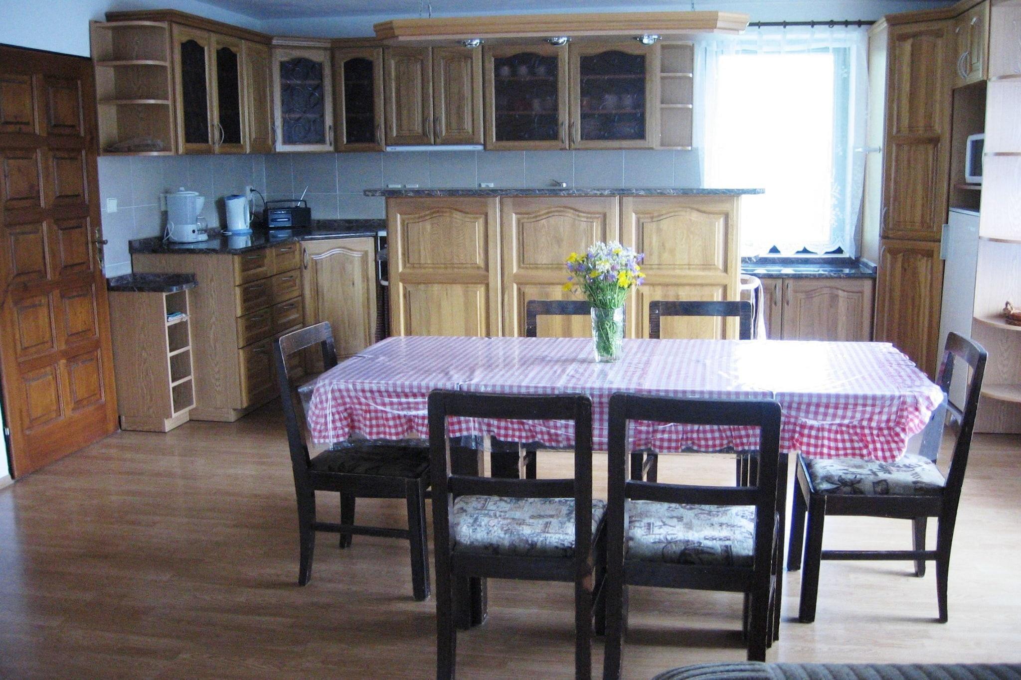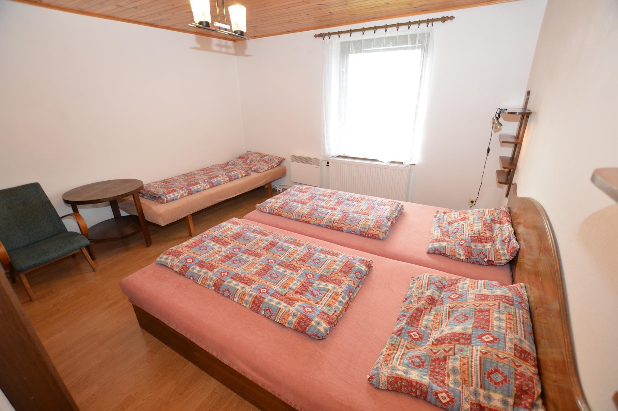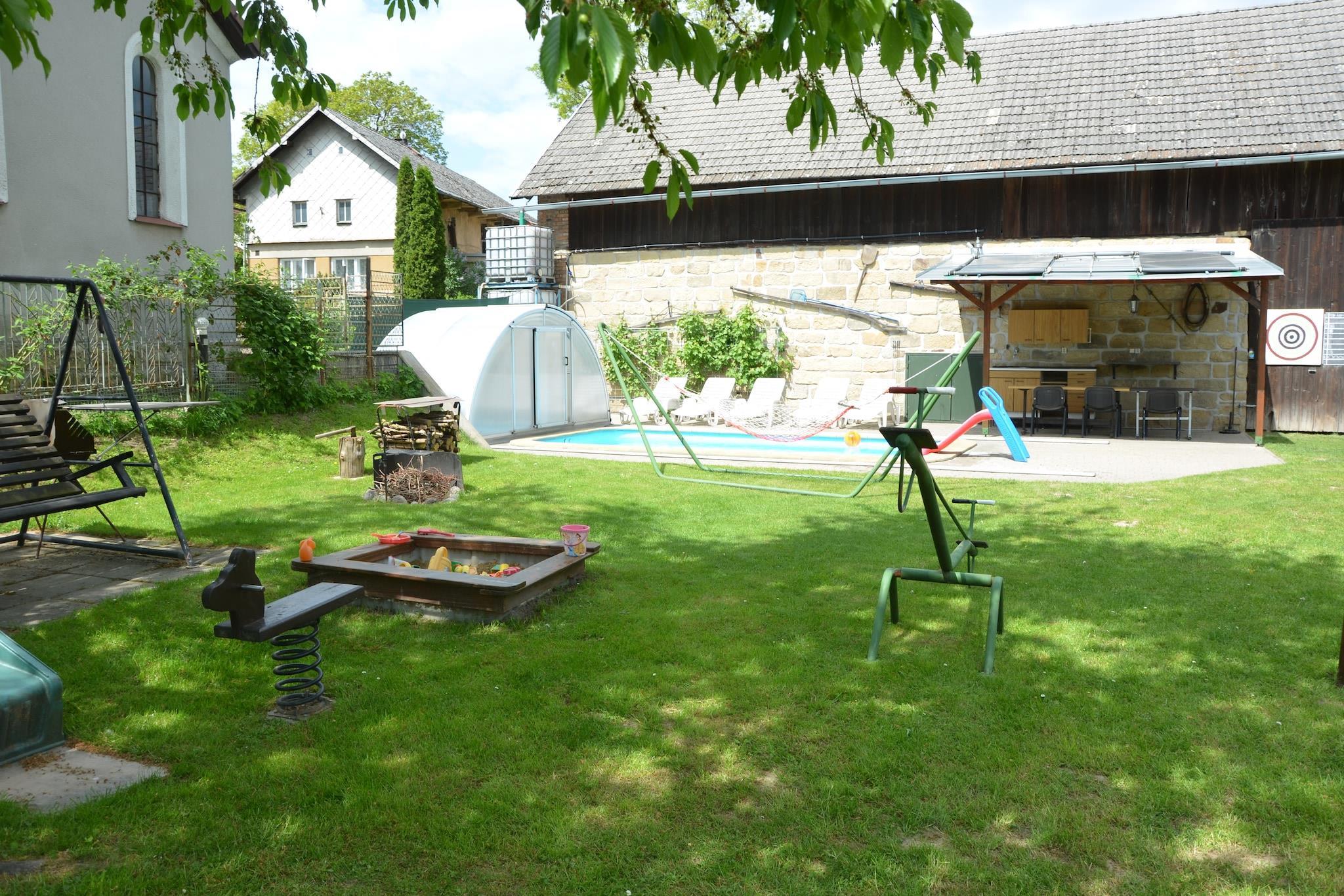 Dieses gemütliche freistehende Ferienhaus für maximal 15 Personen befindet sich in Zelenecká Lhota in der Tschechischen Republik. Es gibt 5 Schlafzimmer, die 13 Personen Platz bieten, ideal für einen Familienurlaub. Darüber hinaus können Sie maximal 2 Haustiere mitbringen. Im Garten gibt es einen privaten Swimmingpool (geöffnet ab 20. Mai), der auch beheizt werden kann. Die Lage dieses schönen Ferienhauses ist perfekt. Im angrenzenden Dorf können Sie zu Fuß einkaufen, und dort finden Sie auch einen Grasstrand zum Schwimmen und Angeln. Jicin, mit seinem Marktplatz und den Brunnen aus dem 19. Jahrhundert, liegt 17 km östlich und ist auf jeden Fall einen Besuch wert. Prag (50 km) ist ebenfalls leicht erreichbar und auf jeden Fall einen Besuch wert. Das Haus hat einen großen Garten mit vielen Unterhaltungsmöglichkeiten für die Kinder. Neben einem privaten Pool gibt es auch einen Spielplatz, ein Trampolin, einen Sandkasten und sogar ein klassisches Kegelspiel. Im Inneren gibt es 2 Bäder und eine gut ausgestattete Küche. Im Wohnzimmer gibt es einen Billardtisch und eine Dartscheibe.