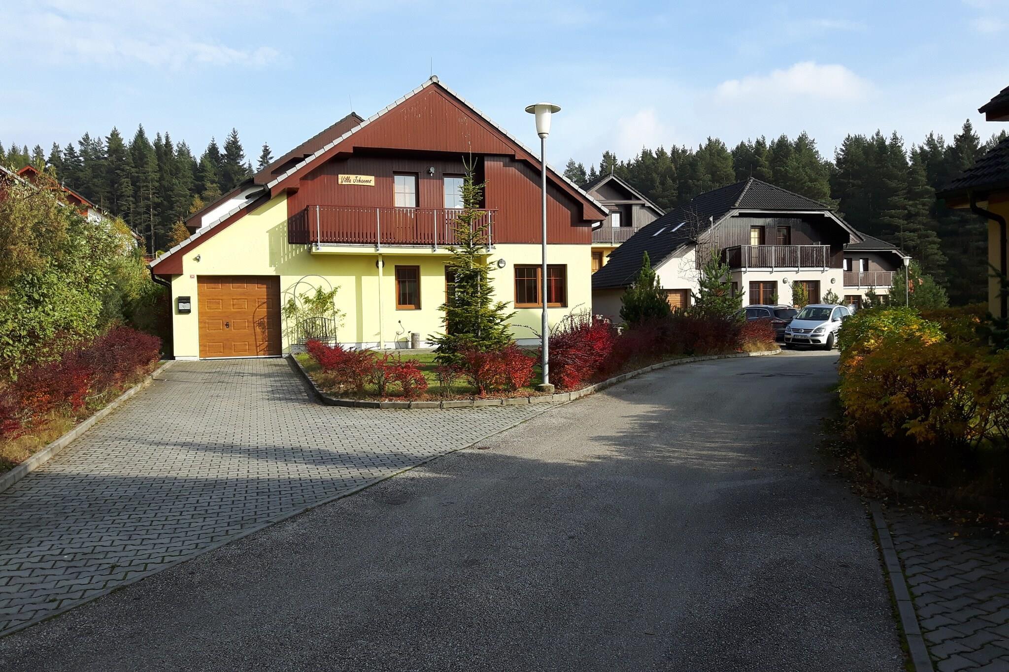 Entspanntes Wohnen am See Diese geräumige Villa im malerischen Dorf Lipno nad Vltavou bietet einen einladenden Rückzugsort für Familien und Freunde. Mit vier Schlafzimmern, einem hellen Wohnbereich und einer privaten Terrasse mit Blick auf den Garten bietet sie Komfort nach Tagen am Wasser oder im Wald. Das Haus verbindet moderne Annehmlichkeiten mit heimeligen Details wie Sat-TV, WLAN und einer voll ausgestatteten Küche, sodass Sie sowohl gemeinsame Mahlzeiten als auch ruhige Momente im Haus genießen können. Natur und Aktivitäten in der Nähe Nur 100 Meter vom Wald und Skilift entfernt, befindet sich die Villa inmitten ganzjähriger Aktivitäten. Im Sommer können Sie zum Lipno-See spazieren gehen, um zu schwimmen, auf den Uferwegen Rad zu fahren oder Segelabenteuer zu erleben. Im Winter laden die nahegelegenen Pisten zum Skifahren ein. Gäste mit Haustieren werden die hundefreundlichen Spazierwege rund um den See und die schattigen Waldwege lieben, auf denen Ihre vierbeinigen Begleiter frei herumlaufen können. Das Gebiet bietet außerdem Freiflächen für Picknicks am See mit Ihren Haustieren. Lokale Gastronomie und Charme Nur einen kurzen Spaziergang entfernt finden Sie gemütliche Restaurants mit herzhaften tschechischen Gerichten und internationalen Spezialitäten. Cafés am Seeufer laden zum Genießen lokaler Fischspezialitäten ein, während familienfreundliche Lokale in Lipno für eine entspannte Atmosphäre sorgen. Lebensmittel und den täglichen Bedarf decken Geschäfte nur 300 Meter entfernt ab.