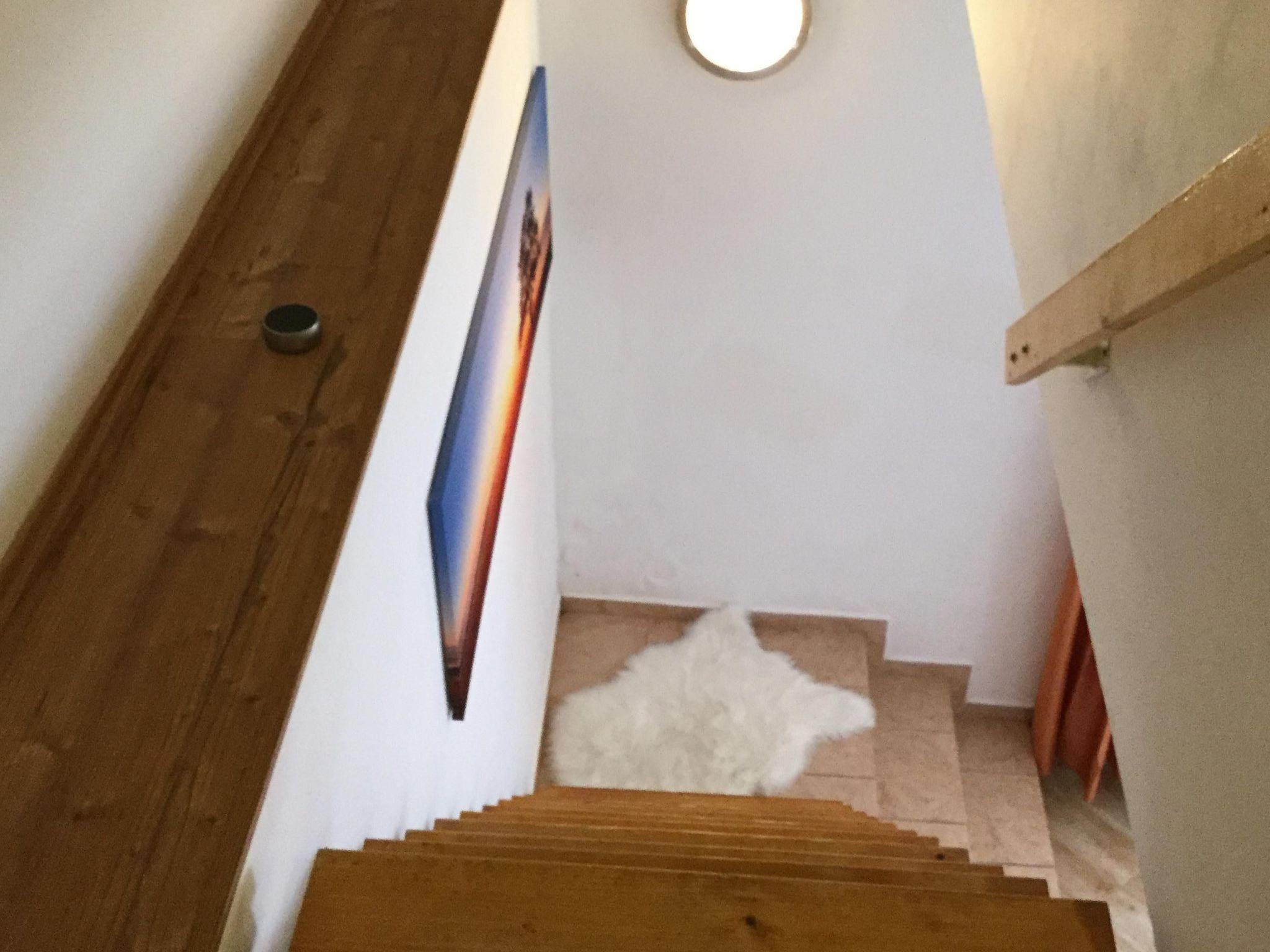 Das Erdgeschoss mit einer Fläche von ca. 55 m² besteht aus folgenden Räumen: Wohnzimmer mit Küche, Flachbildfernseher und Doppelschlafsofa; neben dem Wohnzimmer;; eine voll ausgestattete Küche mit Herd, Backofen, Mikrowelle, Kaffeemaschine und Essbereich. Neben der Küche, ein Badezimmer mit Dusche und Bidet. Da die Decke sehr hoch ist, wurde eine Etage mit zwei Schlafzimmern eingerichtet, in denen sich ein Doppelbett und im zweiten Schlafzimmer zwei Einzelbetten befinden.