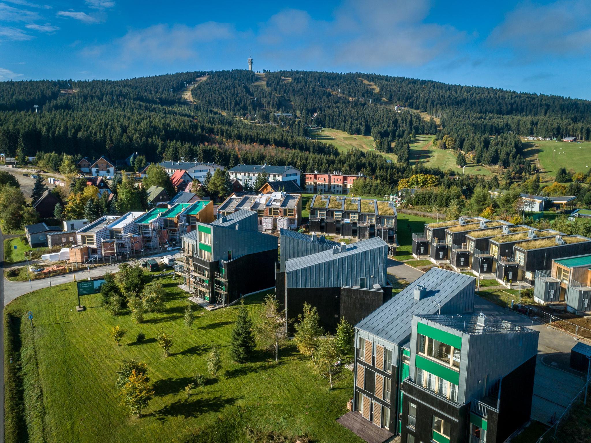 Modernes Reihenhaus "Klinovec Meadows Residence". 2 km vom Zentrum, ruhige, sonnige Lage, 200 m vom Waldrand, 300 m vom Skigebiet. Zur Mitbenutzung: Grundstück, Garten. Feuerstelle. Zur Alleinbenutzung: Terrasse, Gartenmöbel, Parkplatz auf dem Grundstück. Einkaufsgeschäft 2 km, Supermarkt 6 km, Einkaufszentrum 9 km, Restaurant 350 m, Bushaltestelle "Loucná Háj" 450 m, Hallenbad 600 m. Wanderwege ab Haus 50 m, Radweg, Skilift, Skiverleih 300 m, Skibushaltestelle 500 m, Skischule 300 m, Kinderskischule, Langlaufloipe 200 m, Kinderspielplatz 500 m. Nahe gelegene Sehenswürdigkeiten: Trail Park Klínovec 4 km, Ježíškova cesta 6 m, Kurort Oberwiesenthal - bobová dráha, morské akvárium, parní úzkokolejka 8 km, lázne Jáchymov 13 km, Karlovy Vary 30 km, Annaberg-Buchholz 20 km. Bekannte Skigebiete sind gut erreichbar: Skiareál Klínovec 300 m, Loucná 2 km, Neklid 4 km, Hranice 6 km, Plešivec 15 km, Fichtelberg/Oberwiesenthal (DE) 8 km. Wandergebiete: Klínovec (1244m), Boží Dar 8 km, Horní Hrad (Hauenštejn) 15 km.