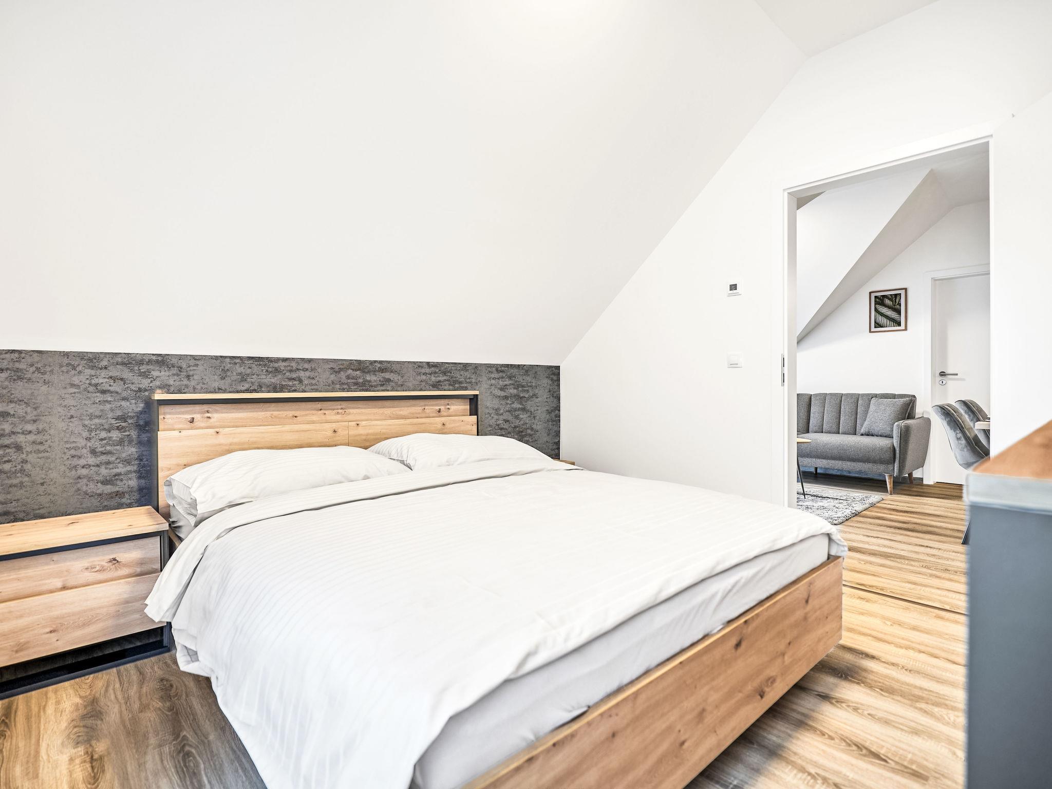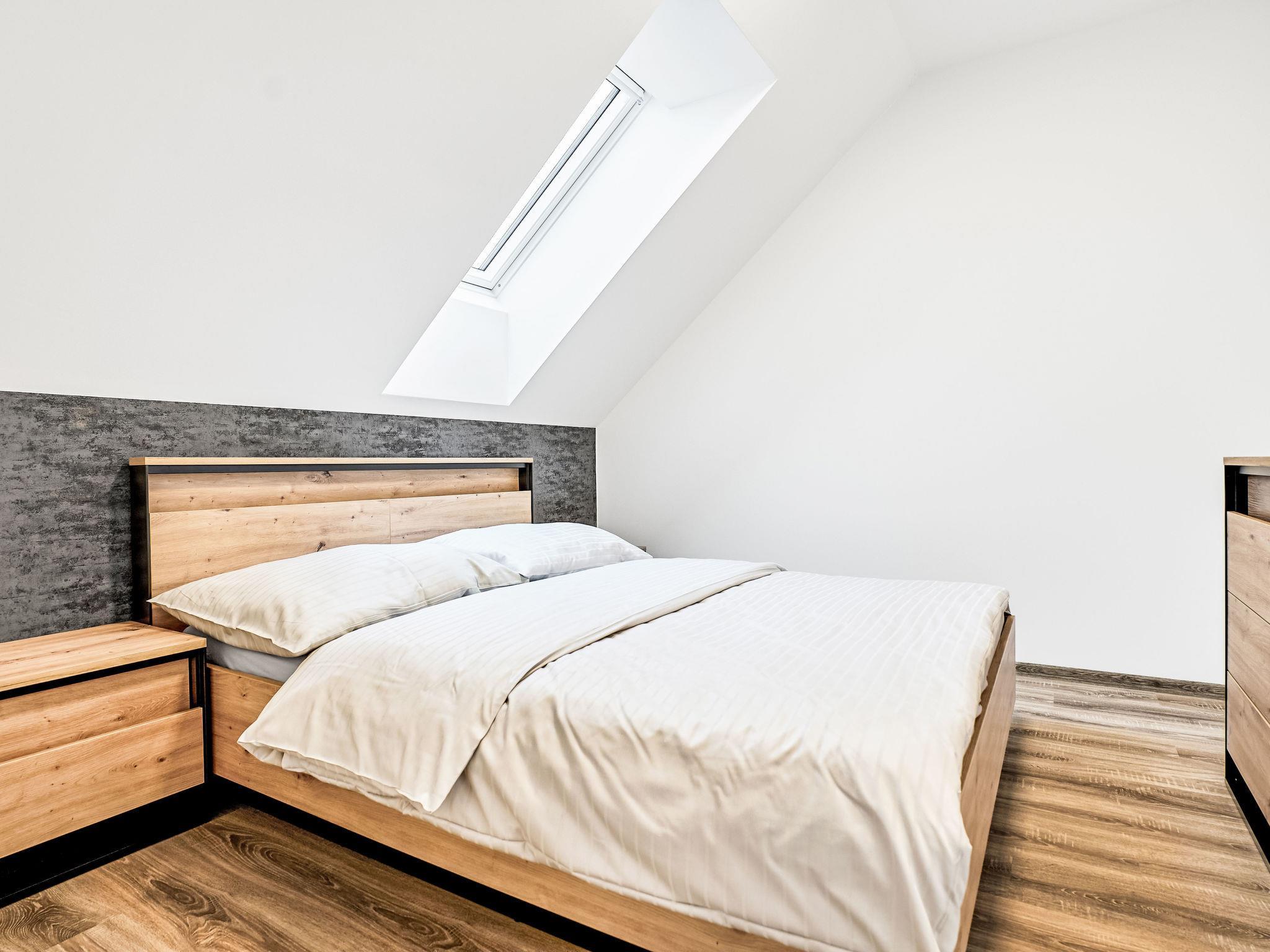 "Attic", 3-Zimmer-Wohnung im 1. Stock. Schön und modern eingerichtet: 2 Zimmer, jedes Zimmer mit 1 Doppelbett. Wohnzimmer mit 1 Diwanbett und Sat-TV. Kochnische (Backofen, Mikrowelle, elektrische Kaffeemaschine) mit Esstisch. Dusche/WC. Heizung. Zur Verfügung: Internet (WLAN, gratis). Bitte beachten: Nichtraucher-Unterkunft.