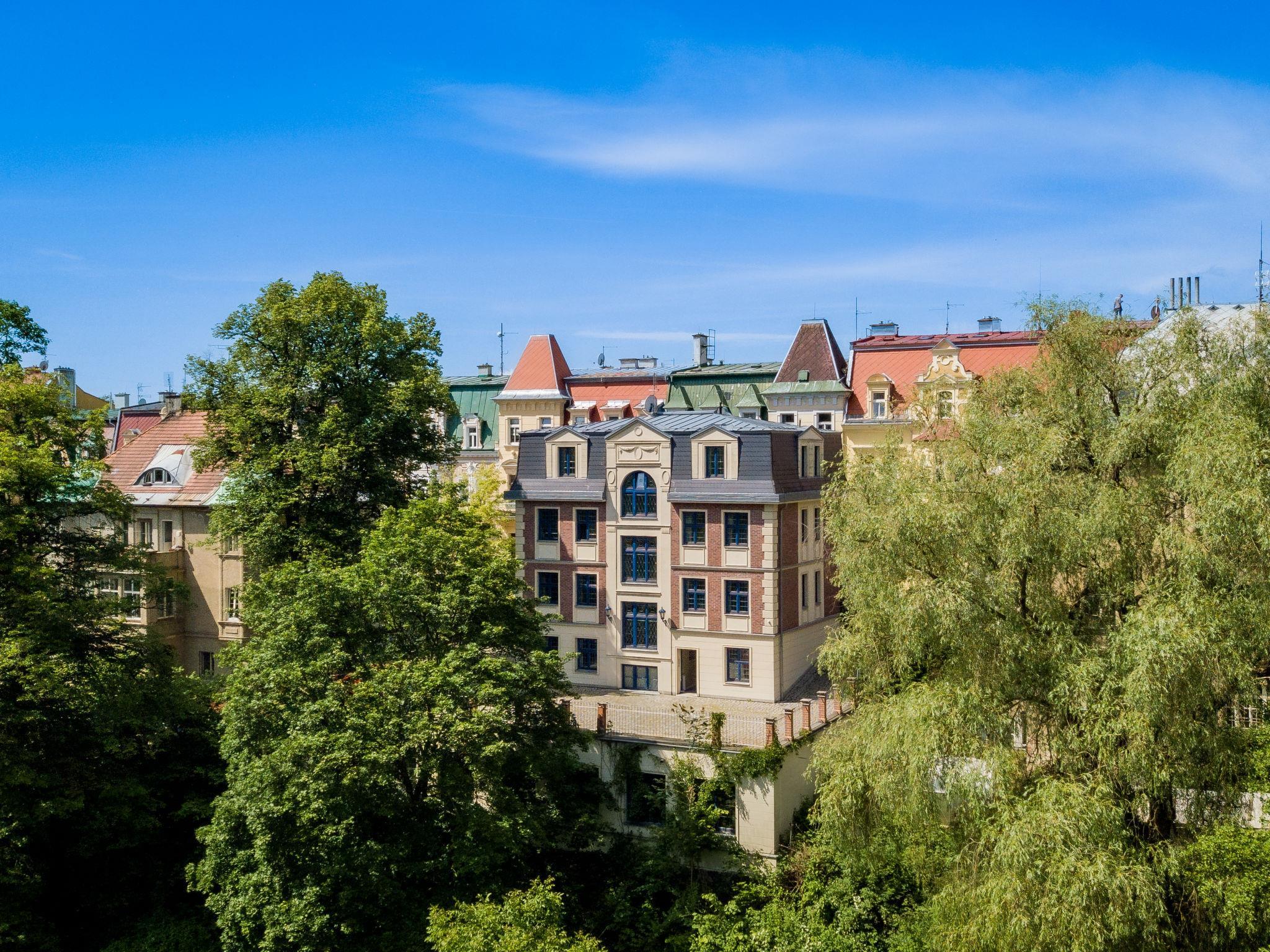 Das Haus "Villa Merlin" wurde im alten englischen Stil erbaut, in einem Wohnquartier am Rande der Altstadt von Marianske Lazne. Haus auf 3 Stockwerken, Baujahr 2006. Im Ort, 100 m vom Zentrum, zentrale, ruhige Lage, an einer Strasse, im Grünen. Im Hause: Skiraum, Zentralheizung. Parkplatz auf dem Grundstück. Einkaufsgeschäft, Restaurant 100 m, Bushaltestelle "Mariánské lázne, tržnice" 400 m, Freibad 1 km, Hallenbad 1 km. Golfplatz (18 Loch) 3 km, Tennis 500 m, Skipisten 3 km. Bitte beachten: Das Foto ist nur ein Wohnungsbeispiel. Weitere Unterkünfte sind buchbar. Die Südost-Seite des Hauses verfügt über eine Terrasse, welche in hübsche Ecken des historischen Spa-Parkes führt.