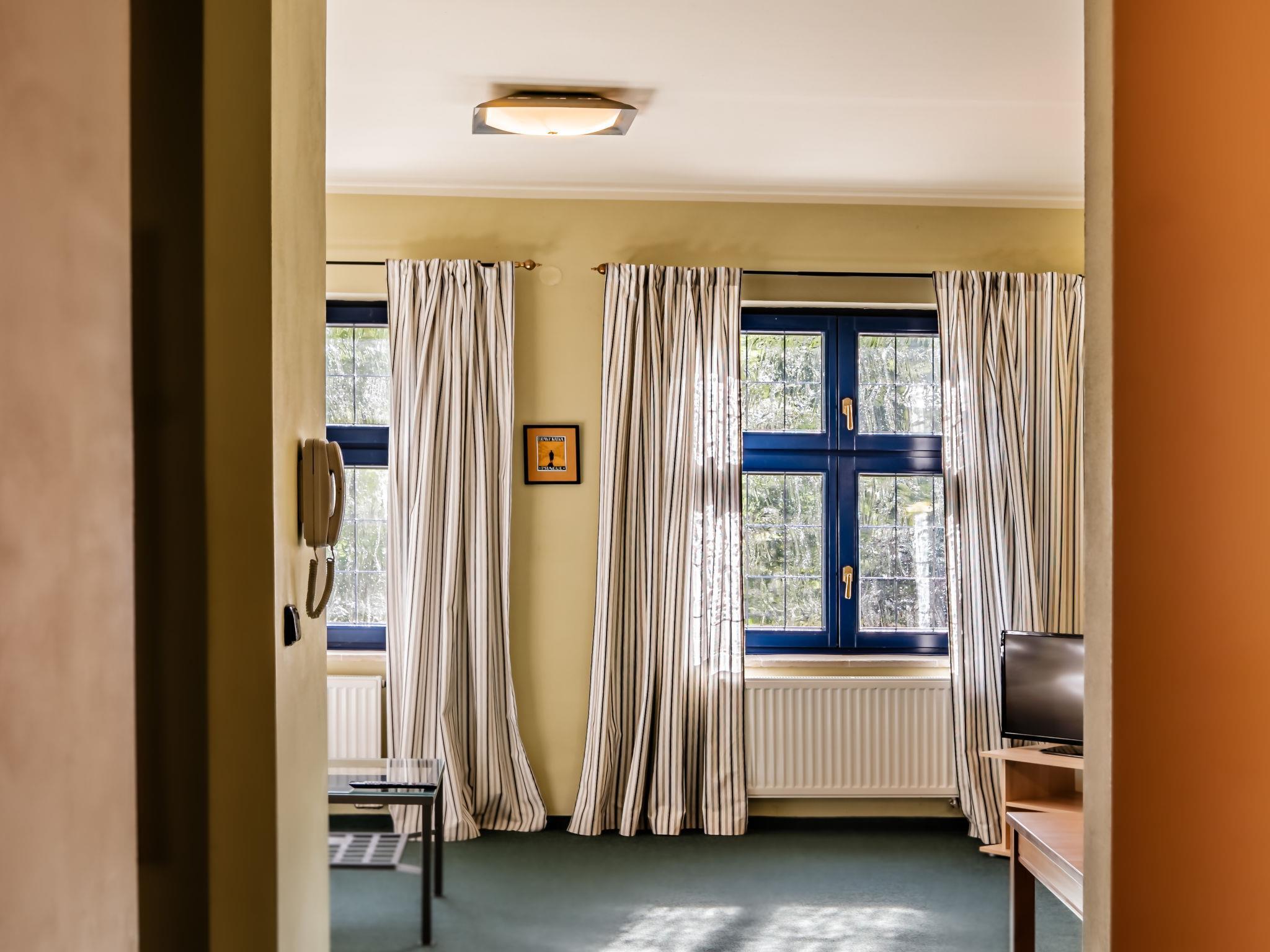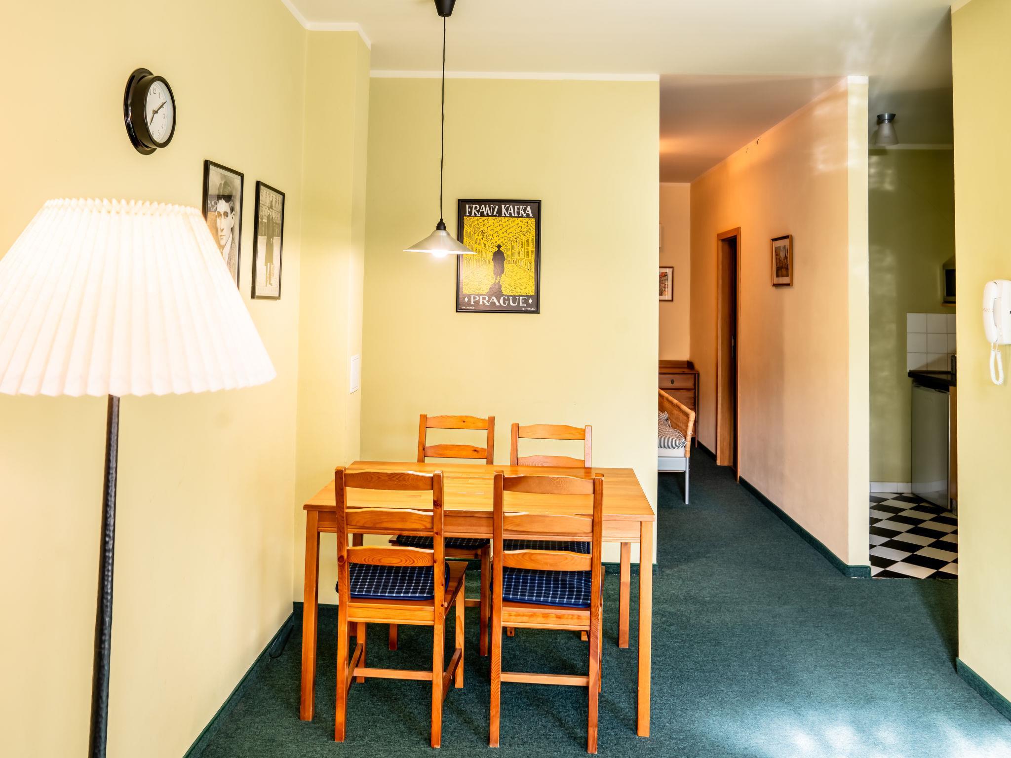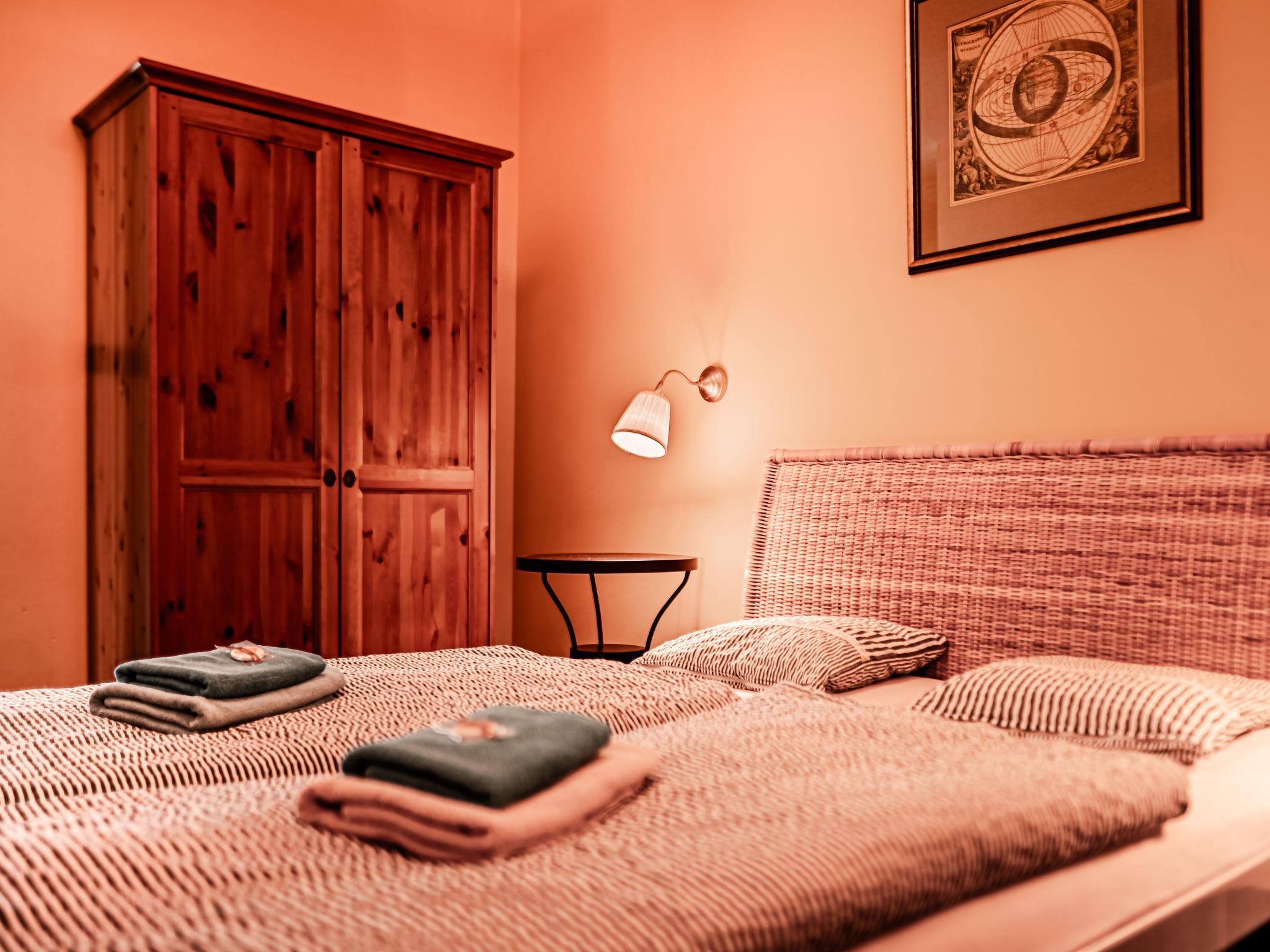 "Kafka", 2-Zimmer-Wohnung 40 m2, unteres Geschoss. Schön und gemütlich eingerichtet: Wohnzimmer mit Esstisch und Sat-TV. 1 Zimmer mit 1 Doppelbett. Kochnische (2 Kochplatten, Wasserkocher, Mikrowelle, Tiefkühler). Dusche/WC. Sehr schöne Sicht auf den Garten. Zur Verfügung: Internet (Wireless LAN, gratis). Parkplatz (eingezäunt) beim Haus. Bitte beachten: geeignet für Familien. Nichtraucher-Unterkunft. Maximal 1 Haustier/Hund erlaubt. Feuerlöscher. Das Wohnzimmer ist vom Zimmer mit Doppelbett zum Teil mit dem Scheibewand getrennt.