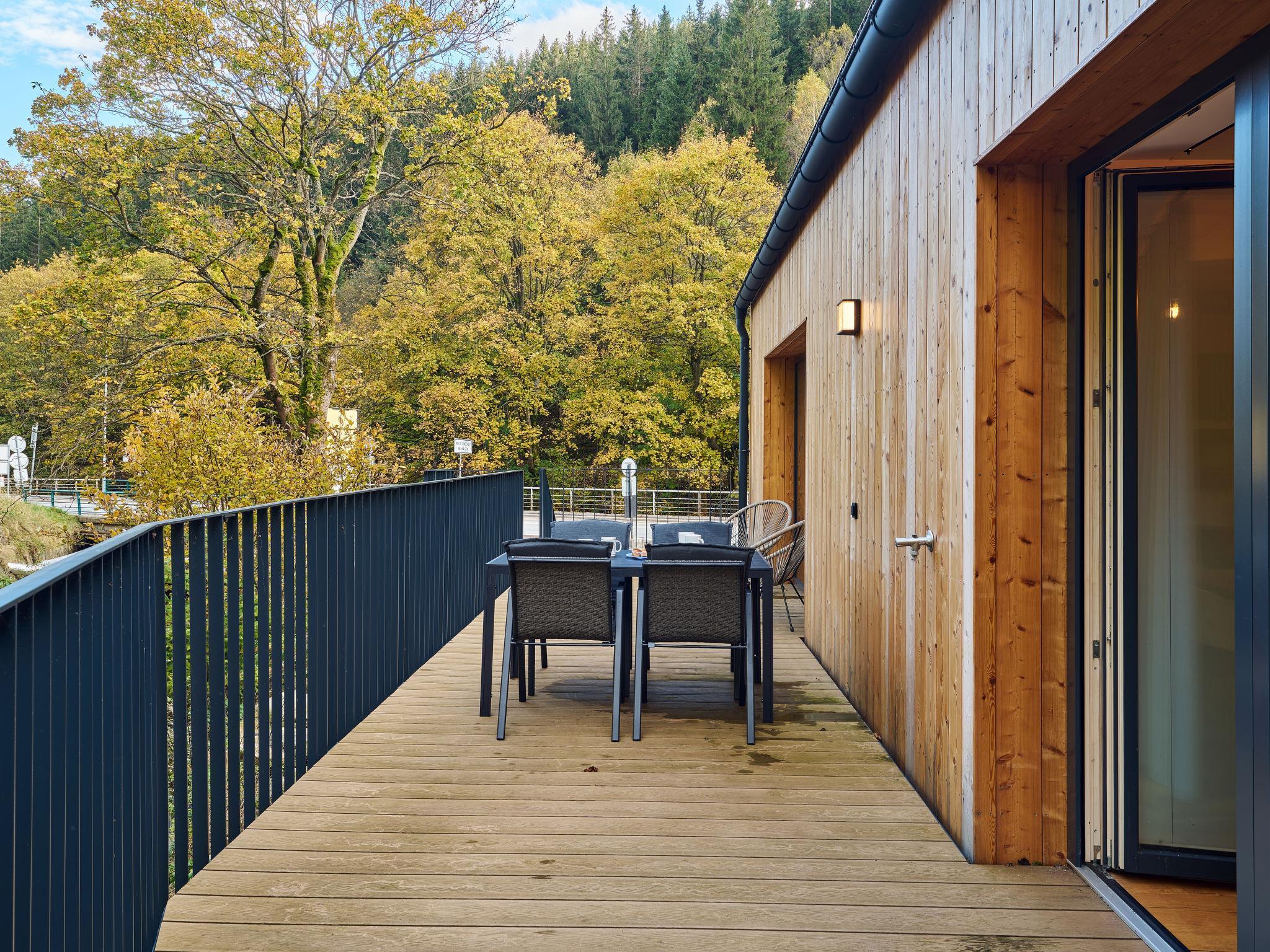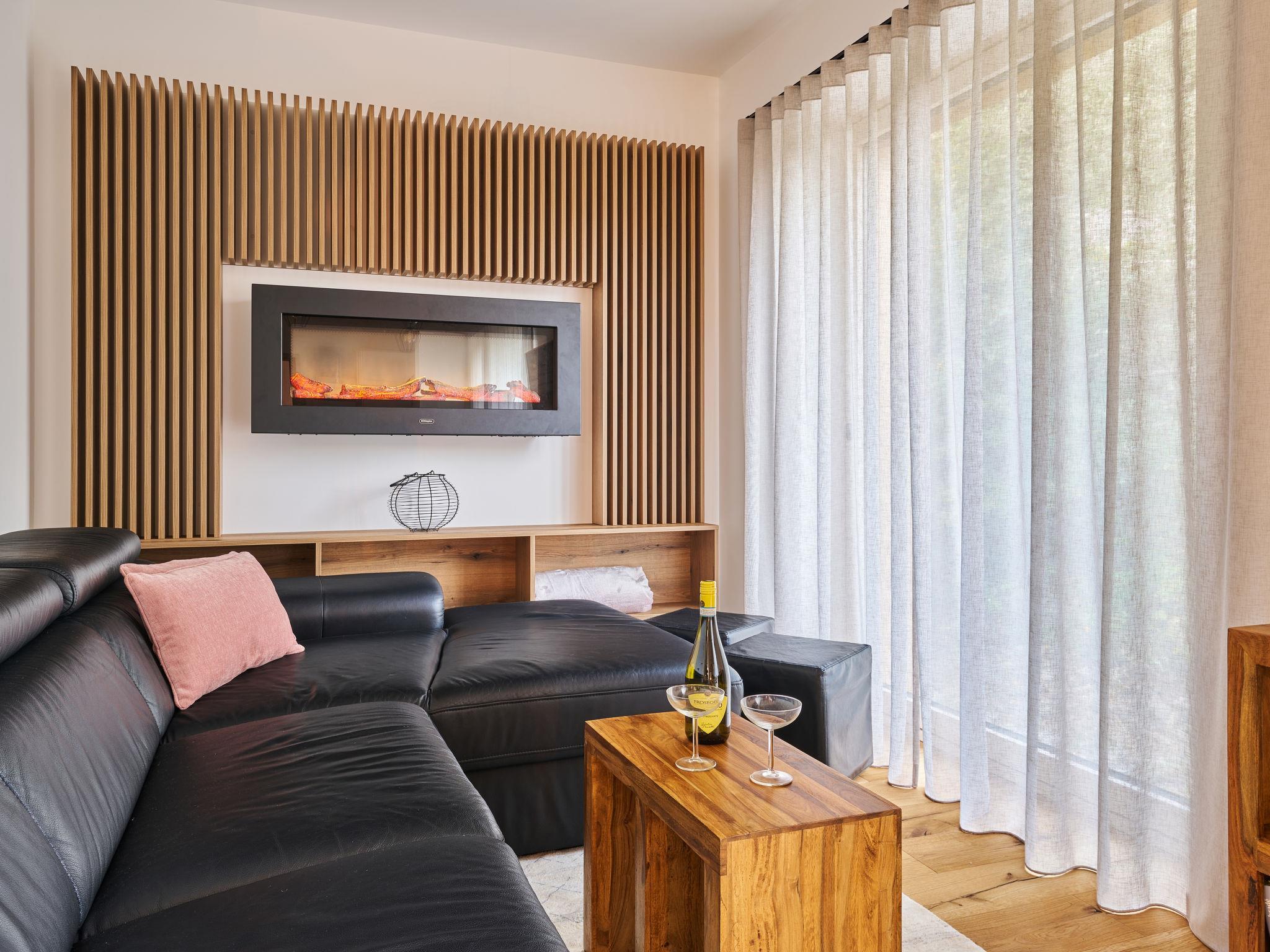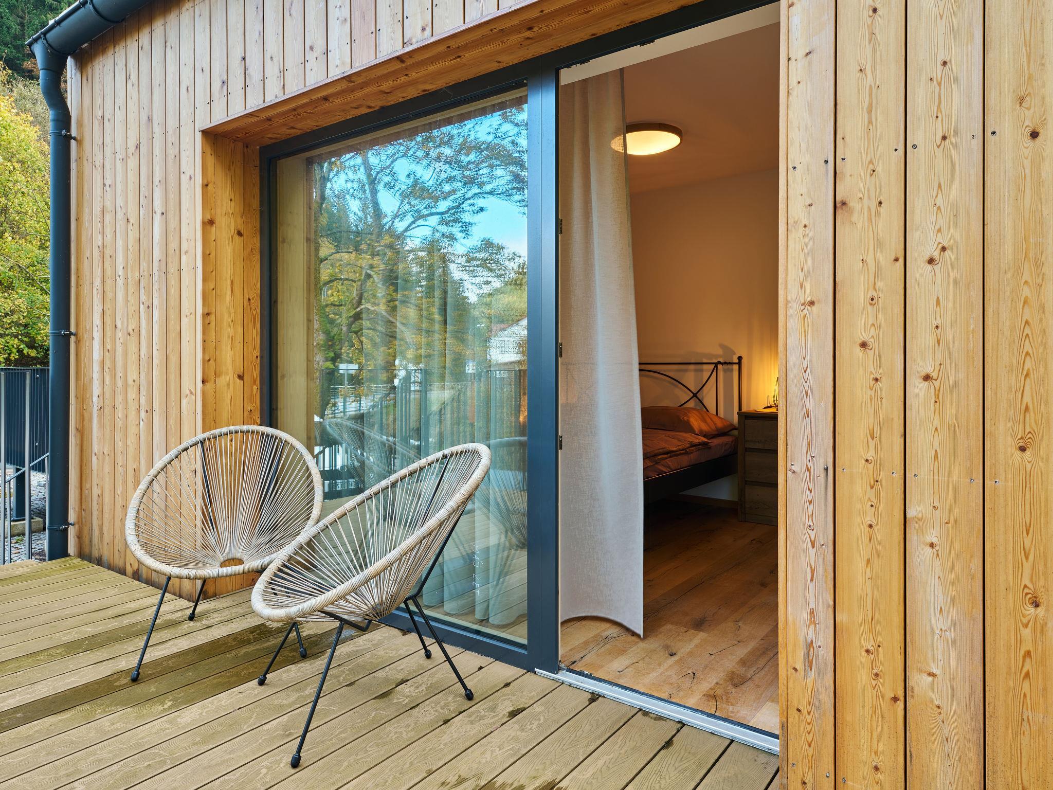"Vogue Ridge Retreat & Terrace", 3-Zimmer-Wohnung 74 m2, im Erdgeschoss. Geräumig und hell, sehr schön und modern eingerichtet: Wohn-/Esszimmer mit offenem Kamin, Esstisch und TV. Ausgang zur Terrasse. 1 Zimmer mit 1 Doppelbett, Dusche/WC und TV. Ausgang zur Terrasse. 1 Zimmer mit 1 Doppelbett und Dusche/WC. Kochnische (Backofen, Geschirrspüler, 4 Induktionskochplatten, Toaster, Wasserkocher, Tiefkühler, elektrische Kaffeemaschine). Heizung. Grosse Terrasse 30 m2. Terrassenmöbel. Schöne Sicht auf die Landschaft und den Fluss. Zur Verfügung: Internet (WLAN, gratis). Parkplatz (1 Auto). Bitte beachten: geeignet für Familien. Nichtraucher-Unterkunft.