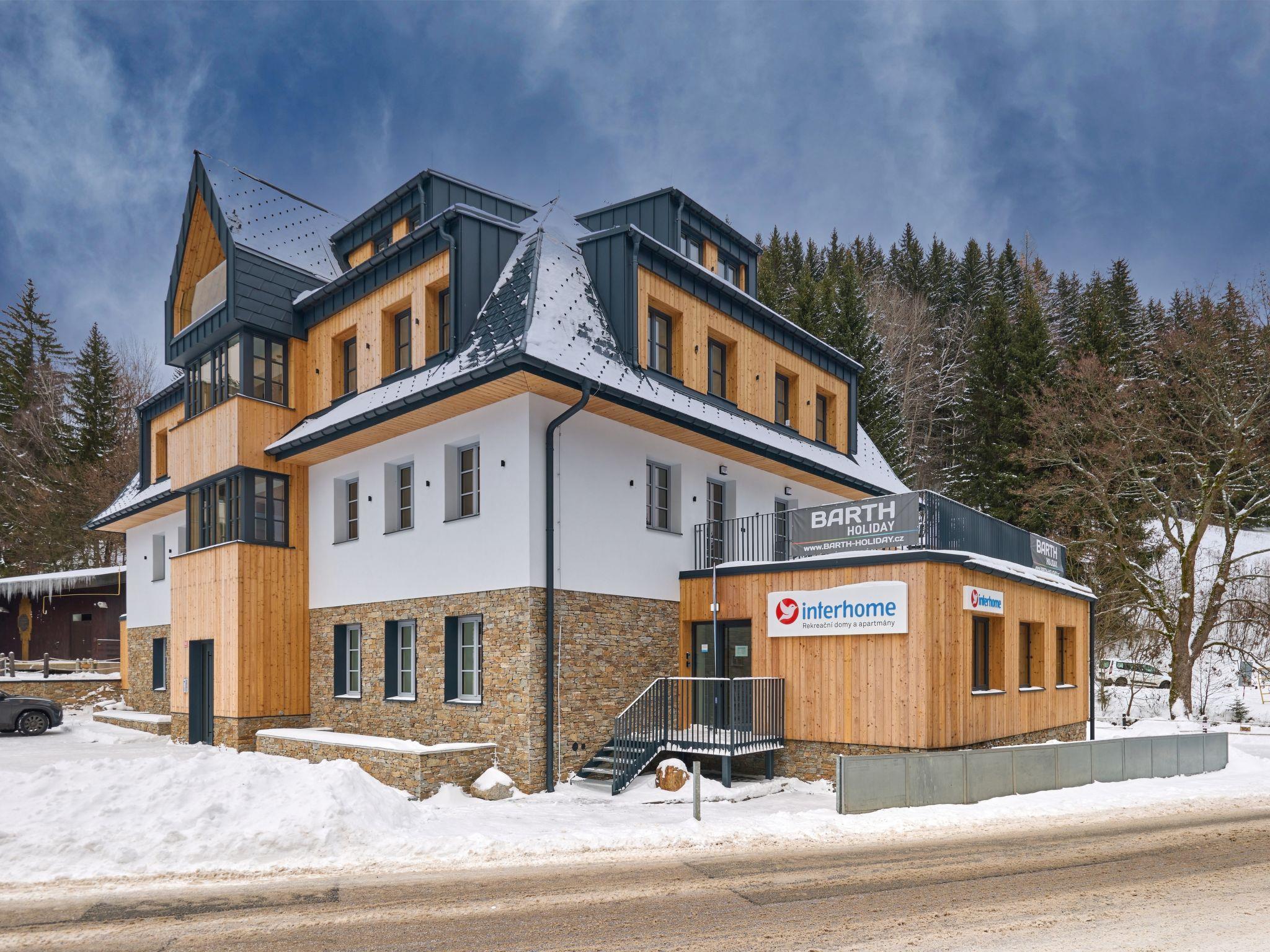 Moderne, freistehende, luxuriöse Residenz "Máj", auf 3 Stockwerken, renoviert im Jahre 2023. Im Ortszentrum von Pec pod Snežkou, 100 m vom Waldrand, 1.3 km vom Skigebiet, 10 m vom Fluss. Im Hause: Skiraum, Zentralheizung. Parkplatz beim Haus. Einkaufsgeschäft 60 m, Lebensmittelgeschäft 200 m, Restaurant 60 m, Bar, Café 100 m, Fahrradverleih 500 m, Biergarten 60 m, Bushaltestelle "Pec pod Snežkou" 300 m, Hallenbad 500 m. Sportzentrum 500 m, Wanderwege ab Haus, Radweg 20 m, Skilift 1.3 km, Sessellift 1.3 km, Skisportanlagen 1.3 km, Skiverleih 60 m, Skibushaltestelle 200 m, Skischule 1.3 km, Kinderskischule 1.3 km, Langlaufloipe 150 m, Kinderspielplatz 400 m. Nahe gelegene Sehenswürdigkeiten: Relaxpark, bobová dráha 400 m, Snežka (lanovka) 1.2 km, Obrí dul, Modrý dul, vodopády 3 km, Malá Úpa 8 km, Janské Lázne 15 km, Vrchlabí, Trutnov 30 km. Bekannte Skigebiete sind gut erreichbar: Pec pod Snežkou – Cerná Hora 1.3 km, Velká Úpa 2.5 km, Janské Lázne 15 km. Bekannte Seen in der Umgebung sind gut erreichbar: Dolce 25 km. Wandergebiete: Krkonošský národní park. Jugendgruppen nur auf Anfrage. Der Besitzer akzeptiert keine Jugendgruppen.