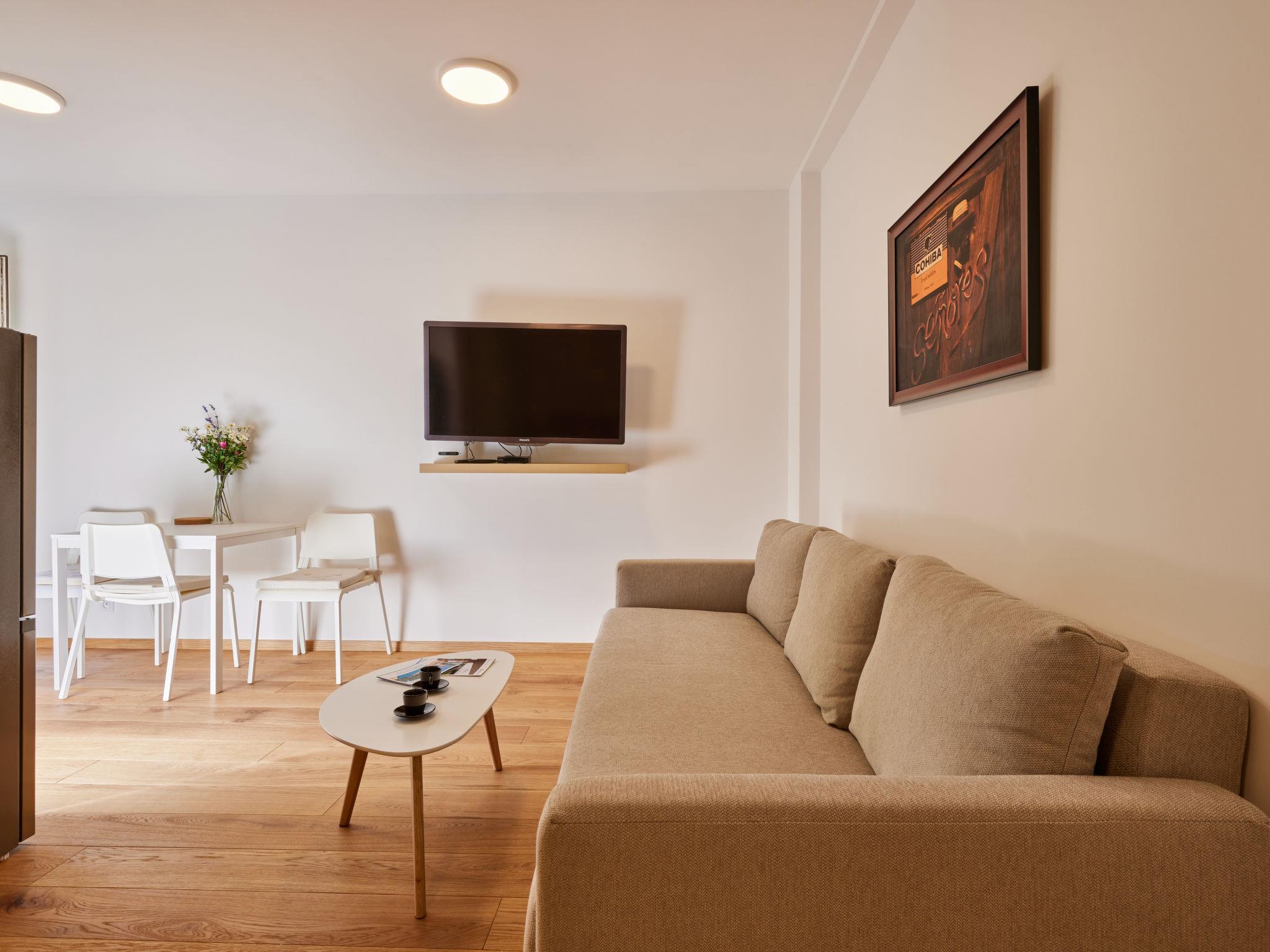 "Serene Glow Nook & Terrace", 1-Zimmer-Studio 36 m2 im 1. Stock. Geräumig und hell, schön und luxuriös eingerichtet: Wohn-/Schlafzimmer mit 1 Doppeldiwanbett, 1 Doppelbett, Esstisch und Sat-TV (Flachbildschirm). Kochnische (Geschirrspüler, 2 Glaskeramikplatten, Toaster, Wasserkocher, Mikrowelle, Tiefkühler, elektrische Kaffeemaschine). Dusche/WC. Heizung. Terrasse 5 m2. Terrassenmöbel. Zur Verfügung: Internet (WLAN, gratis). Parkplatz. Bitte beachten: geeignet für Familien. Nichtraucher-Haus.