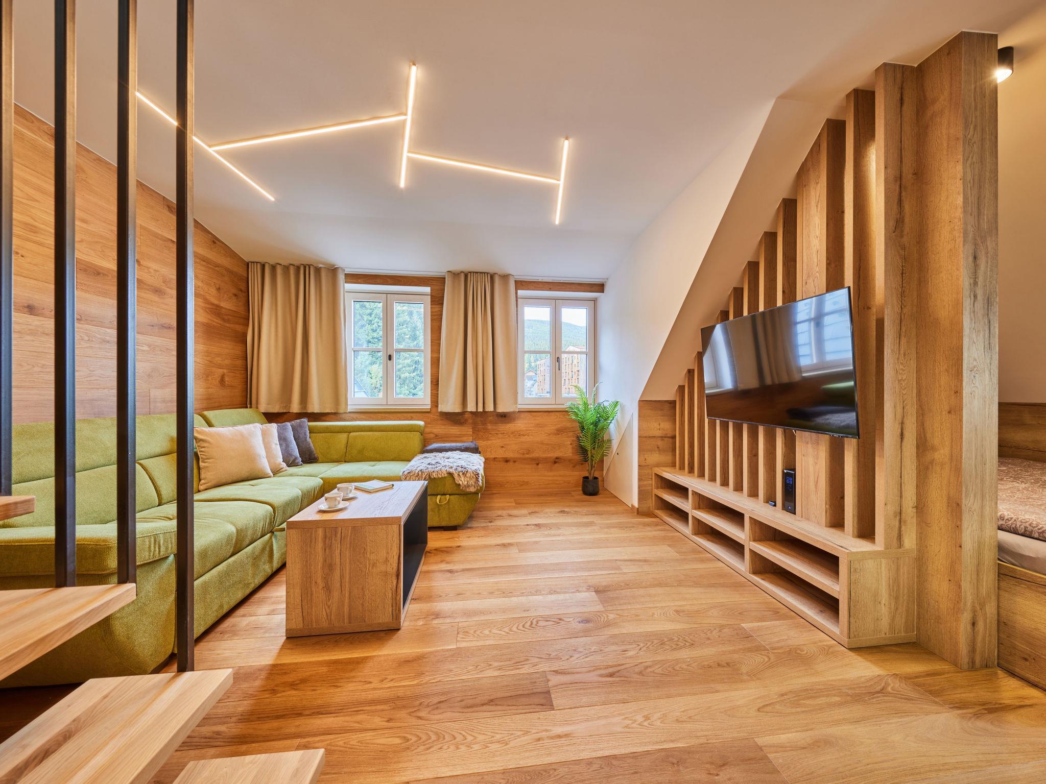 Moderne, freistehende, luxuriöse Residenz "Máj", auf 3 Stockwerken, renoviert im Jahre 2023. Im Ortszentrum von Pec pod Snežkou, 100 m vom Waldrand, 1.3 km vom Skigebiet, 10 m vom Fluss. Im Hause: Skiraum, Zentralheizung. Parkplatz beim Haus. Einkaufsgeschäft 60 m, Lebensmittelgeschäft 200 m, Restaurant 60 m, Bar, Café 100 m, Fahrradverleih 500 m, Biergarten 60 m, Bushaltestelle "Pec pod Snežkou" 300 m, Hallenbad 500 m. Sportzentrum 500 m, Wanderwege ab Haus, Radweg 20 m, Skilift 1.3 km, Sessellift 1.3 km, Skisportanlagen 1.3 km, Skiverleih 60 m, Skibushaltestelle 200 m, Skischule 1.3 km, Kinderskischule 1.3 km, Langlaufloipe 150 m, Kinderspielplatz 400 m. Nahe gelegene Sehenswürdigkeiten: Relaxpark, bobová dráha 400 m, Snežka (lanovka) 1.2 km, Obrí dul, Modrý dul, vodopády 3 km, Malá Úpa 8 km, Janské Lázne 15 km, Vrchlabí, Trutnov 30 km. Bekannte Skigebiete sind gut erreichbar: Pec pod Snežkou – Cerná Hora 1.3 km, Velká Úpa 2.5 km, Janské Lázne 15 km. Bekannte Seen in der Umgebung sind gut erreichbar: Dolce 25 km. Wandergebiete: Krkonošský národní park. Jugendgruppen nur auf Anfrage. Der Besitzer akzeptiert keine Jugendgruppen.