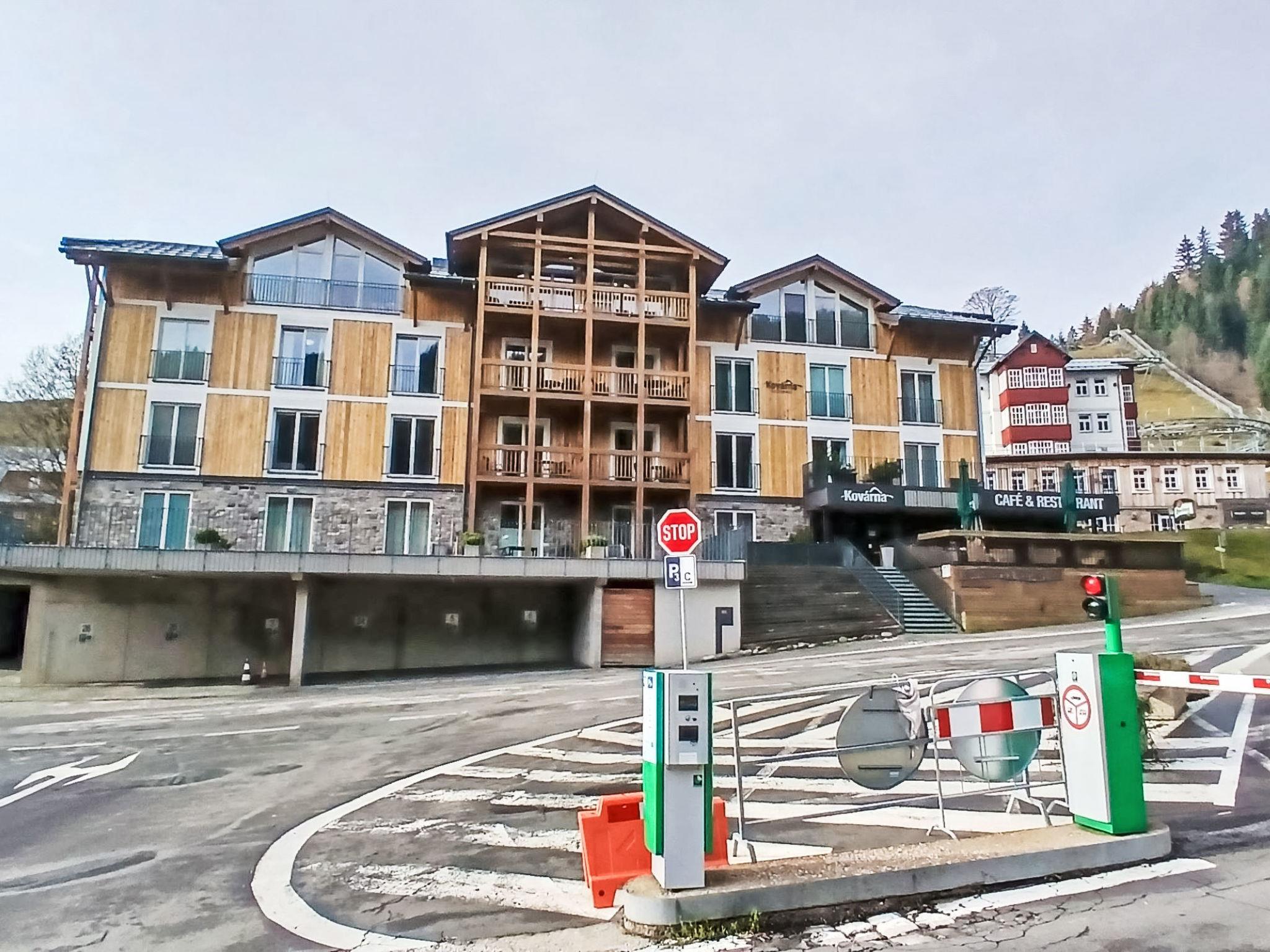 Moderne, freistehende, luxuriöse Residenz "Na Kovárne", auf 4 Stockwerken. Im Ortszentrum von Pec pod Snežkou, 100 m vom Waldrand, 1.3 km vom Skigebiet, 50 m vom Fluss. Im Hause: Restaurant, Zentralheizung. Parkplatz beim Haus. Einkaufsgeschäft 60 m, Lebensmittelgeschäft 200 m, Restaurant 10 m, Bar 400 m, Bäckerei 350 m, Café 10 m, Fahrradverleih, Biergarten 400 m, Bushaltestelle "Pec pod Snežkou, RELAXPARK" 100 m, Hallenbad 500 m. Sportzentrum 500 m, Wanderwege ab Haus, Radweg 20 m, Skilift 1.3 km, Sessellift 1.3 km, Skisportanlagen 1.3 km, Skiverleih 60 m, Skibushaltestelle 200 m, Skischule 1.3 km, Kinderskischule 1.3 km, Langlaufloipe 150 m. Nahe gelegene Sehenswürdigkeiten: Relaxpark, bobová dráha 100 m, Snežka (lanovka) 1.2 km, Obrí dul, Modrý dul, vodopády 3 km, Malá Úpa 8 km, Janské Lázne 15 km, Vrchlabí, Trutnov 30 km. Bekannte Skigebiete sind gut erreichbar: Pec pod Snežkou – Cerná Hora 1.3 km, Velká Úpa 2.5 km, Janské Lázne 15 km. Bekannte Seen in der Umgebung sind gut erreichbar: Dolce 25 km. Wandergebiete: Krkonošský národní park. Der Besitzer akzeptiert keine Jugendgruppen.