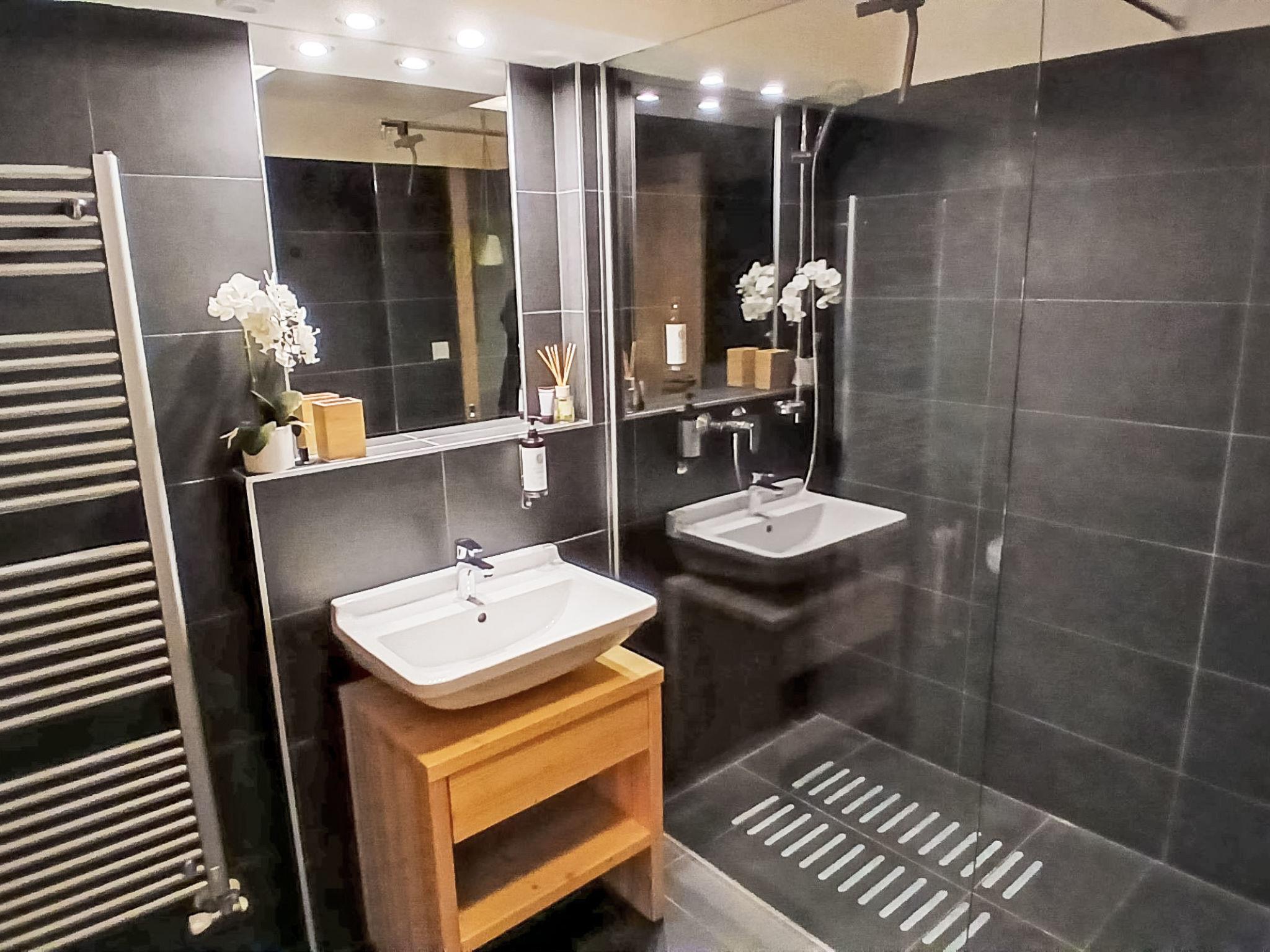 2-Zimmer-Wohnung 60 m2, im Erdgeschoss. Sehr schön und modern eingerichtet: Wohn-/Esszimmer mit 1 Doppeldiwanbett, Essecke und TV. 1 Zimmer mit 1 x 2 Etagenbetten, 1 Doppelbett. Kochnische (Geschirrspüler, 4 Glaskeramikplatten, Toaster, Mikrowelle, elektrische Kaffeemaschine). Dusche/WC. 20 Terrassen. Terrassenmöbel, Abstellkammer. Zur Verfügung: Haartrockner. Internet (WLAN, gratis). Parkplatz (überdacht). Geeignet für Familien.
