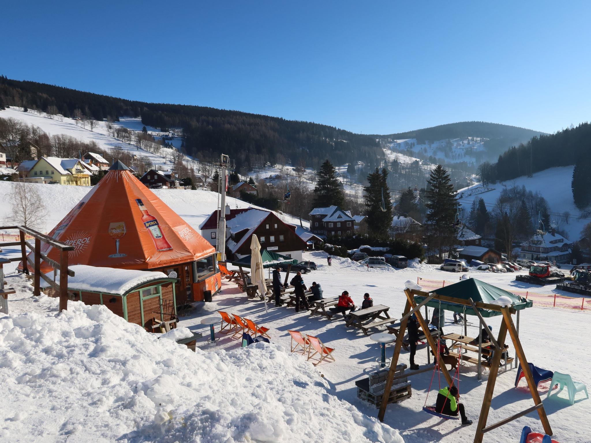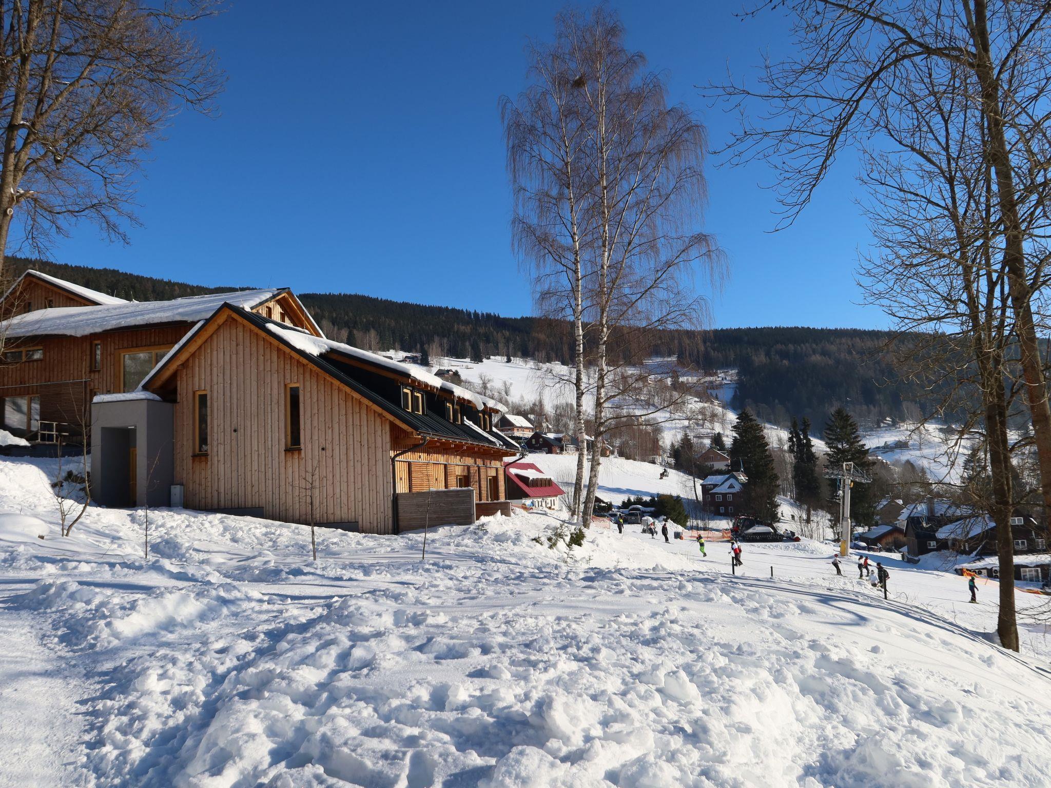 Kinderfreundliches, komfortables Chalet "Portášky, Velká Úpa", auf 2 Stockwerken. 3 Wohnungen im Ferienhaus. Im Ortsteil Velká Úpa, 2 km vom Zentrum von Pec pod Snežkou, 12 km vom Zentrum von Janské Lázne, 20 km vom Zentrum von Trutnov, alleinstehende, sonnige, erhöhte Lage, direkt am Skigebiet. Frühstück auf Anfrage (extra). Parkplatz (im Winter extra). Lebensmittelgeschäft 50 m, Restaurant 100 m, Bushaltestelle "Pec pod Snežkou, dopr. Terminál" 400 m. Golfplatz (18 Loch) 15 km, Tennis 2 km, Skilift, Sessellift, Skipisten 10 m, Skiverleih, Skibushaltestelle, Skischule, Kinderskischule 100 m, Kinderspielplatz 600 m. Nahe gelegene Sehenswürdigkeiten: Bobová dráha/Relaxpark Pec pod Snežkou 3 km, Snežka (1603 m) 6 km, Mladé Buky 12 km, Kowary 26 km, Aquapark Vrchlabí 29 km, Park miniatur Myslakowice, Karpacz 34 km, Adršpašsko-teplické skály 40 km, Jelenia Góra, Zoo Dvur Králové, Kuks 45 km. Bekannte Skigebiete sind gut erreichbar: Portášky 10 m, Cerná hora-Pec pod Snežkou 3 km, Cerná Hora-Janské Lázne 12 km. Bekannte Seen in der Umgebung sind gut erreichbar: Dolce 25 km. Wandergebiete: Krkonošský národní park. Bitte beachten: Bei guter Schneelage Zufahrt mit den Skiern bis zum Haus. Appartements grenzen an die Pension Modrín, wo Sie alle Dienstleistungen wie Wellness und Restaurant nutzen können (extra). Parken ist in der Wintersaison auf bewachten Parkplätzen möglich (150m, extra). Gepäcktransport per Roller (extra).