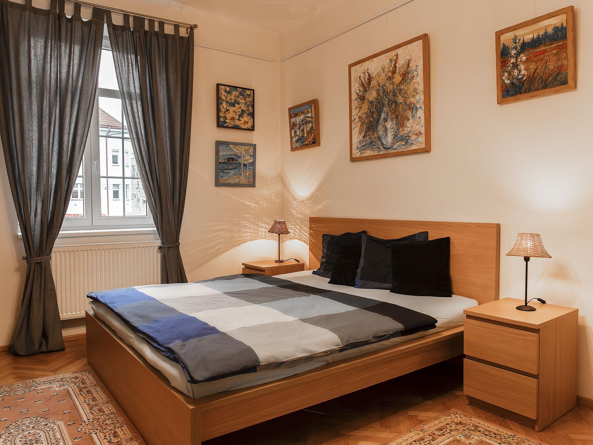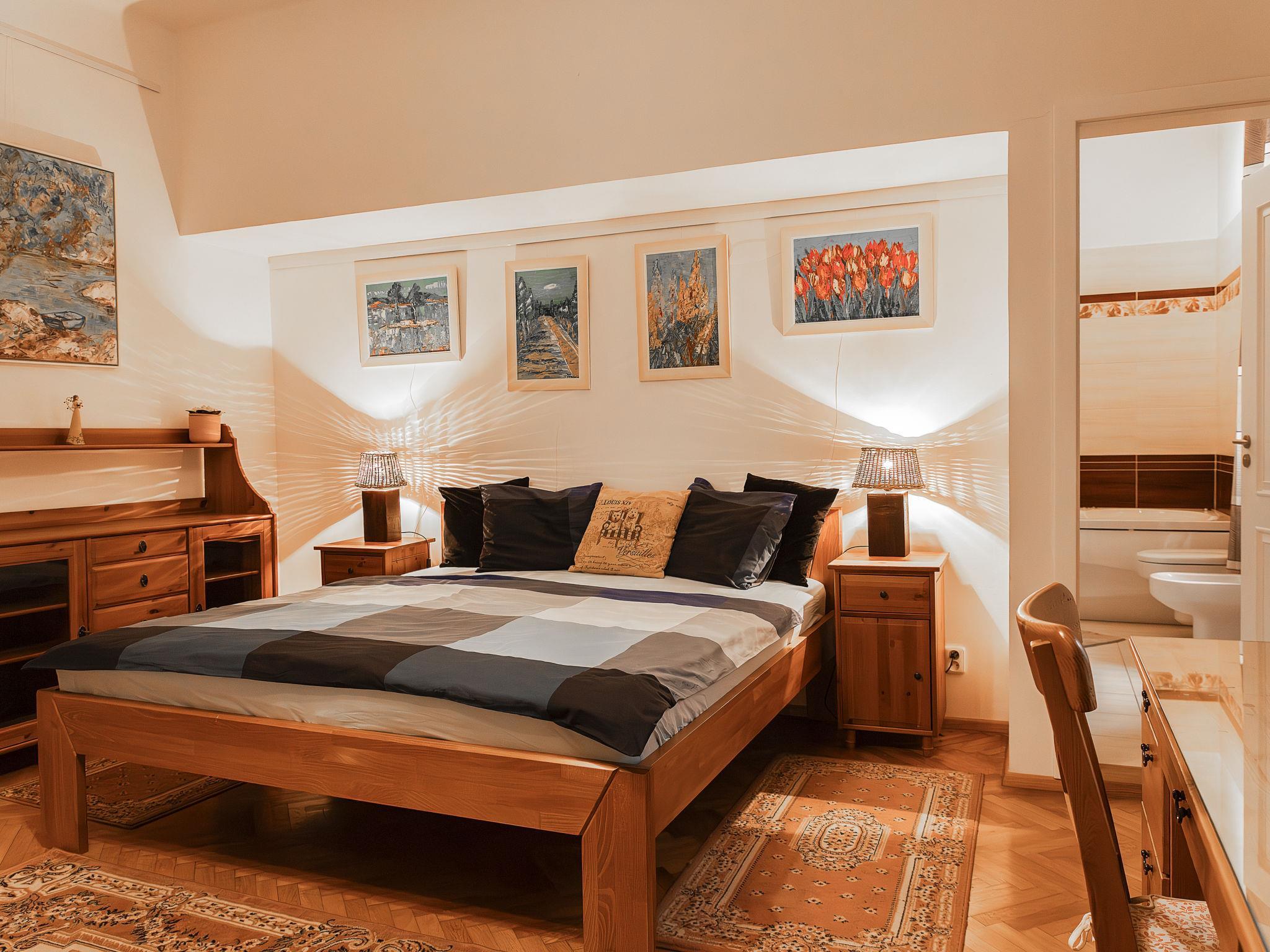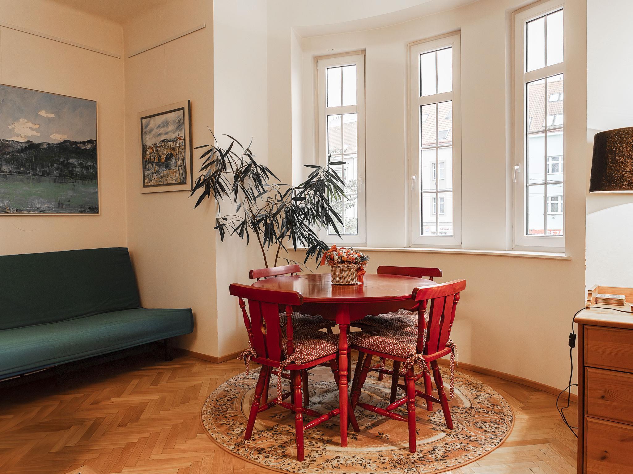 Hervorragende Kombination, welche Komfort, ruhige Lage und gute Verbindung zum Stadtzentrum bietet, entweder mit der U-Bahn-Linie A oder mit der Strassenlinie Nr. 22. Alle wichtigen Sehenswürdigkeiten sind in 15-20 Minuten zu erreichen. Grosse Villa auf 3 Stockwerken, Baujahr 1927, renoviert. 6 km vom Zentrum von Praha, im Bezirk Strašnice, sonnige Lage im Villenviertel. Zur Mitbenutzung: Garten 1'000 m2 mit Rasen. Gartenmöbel. Im Hause: Zentralheizung. Parkplatz (für 2 Autos) auf dem Grundstück, öffentliche Parkplätze auf der Strasse. Einkaufsgeschäft, Lebensmittelgeschäft 100 m, Supermarkt 400 m, Einkaufszentrum 500 m, Restaurant, Bar 200 m, Café 250 m, Biergarten 200 m, Straßenbahn "Prubežná" 70 m, Bushaltestelle "Strašnická" 280 m, U-Bahnstation "Strašnická" 280 m, Freibad 1 km, Hallenbad 1 km. Tennis 1 km, Tennishalle 1 km, Minigolf 300 m, Sportzentrum, Kinderspielplatz. Nahe gelegene Sehenswürdigkeiten: Sport/RelaxPark Gutovka 200 m, Eden 1.4 km, Havlíckovy sady/Gröbovka, Žižkovská vež 3 km, Václavské námestí, Karluv most, Staromestské námestí, Orloj, Vyšehrad, Hradcany/Pražský hrad, Stromovka, Zoo. Bitte beachten: kein Fahrstuhl vorhanden. Geeignet für Familien. Jugendgruppen nur auf Anfrage. Der Besitzer wohnt im selben Haus.