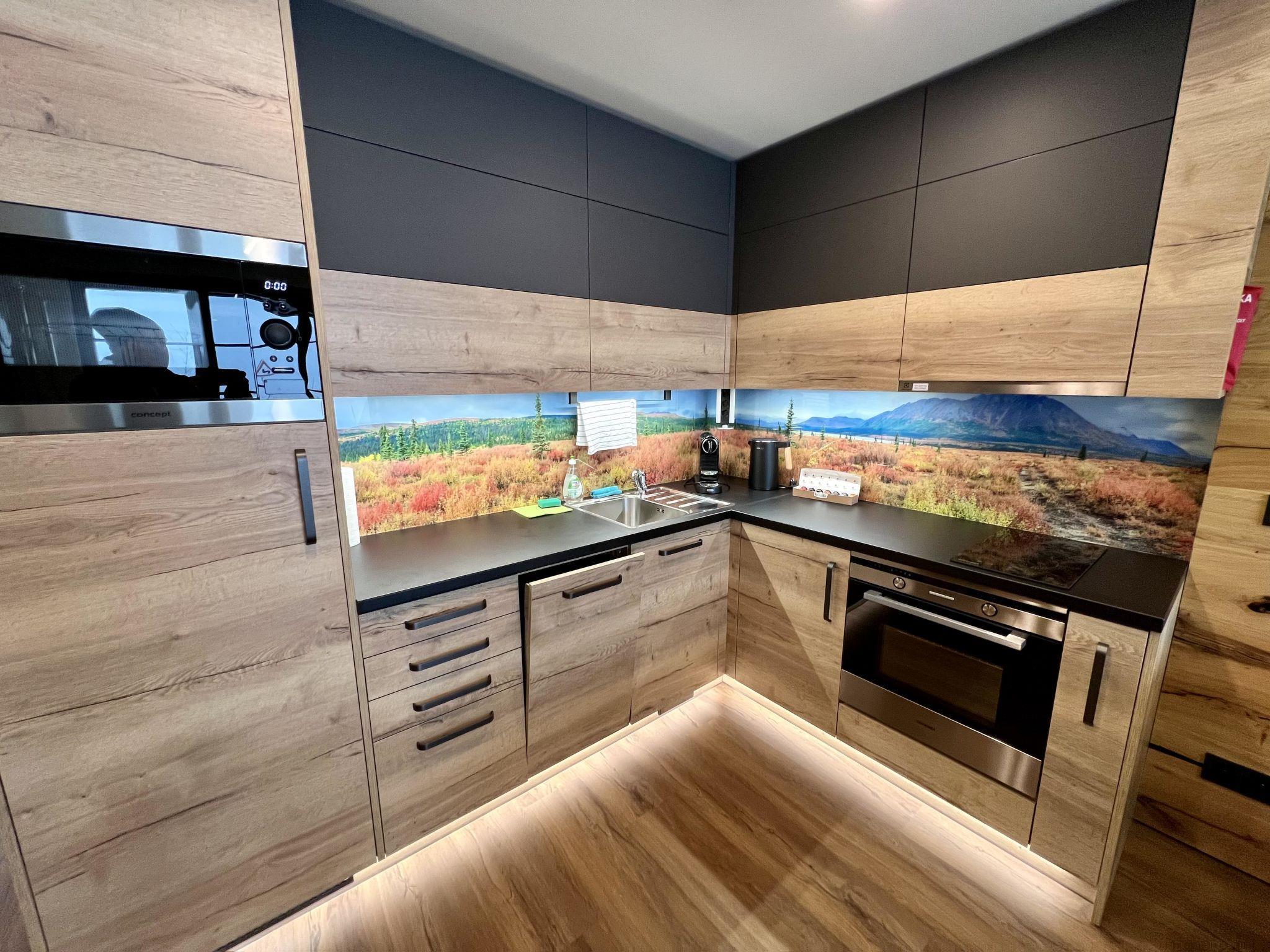 "Rícky F39", 3-Zimmer-Bungalow 75 m2. Objekt geeignet für 4 Erwachsene + 2 Kinder. Luxuriös eingerichtet: Wohnzimmer mit TV (Flachbildschirm). Ausgang zum Garten, zur Terrasse. 1 Zimmer mit 1 x 2 Etagenbetten, 1 Doppelbett. 1 Zimmer mit 1 x 2 Etagenbetten. Kochnische (Backofen, Geschirrspüler, 2 Glaskeramikplatten, Mikrowelle, elektrische Kaffeemaschine) mit Esstisch. Dusche, sep. WC. Terrasse. Terrassenmöbel. Sicht auf die Landschaft. Zur Verfügung: Internet (WLAN, gratis). Bitte beachten: geeignet für Familien. Nichtraucher-Unterkunft. Smart-TV mit tschechischen Programmen, inklusive Zugang zu YouTube und der Möglichkeit, sich bei NETFLIX anzumelden.