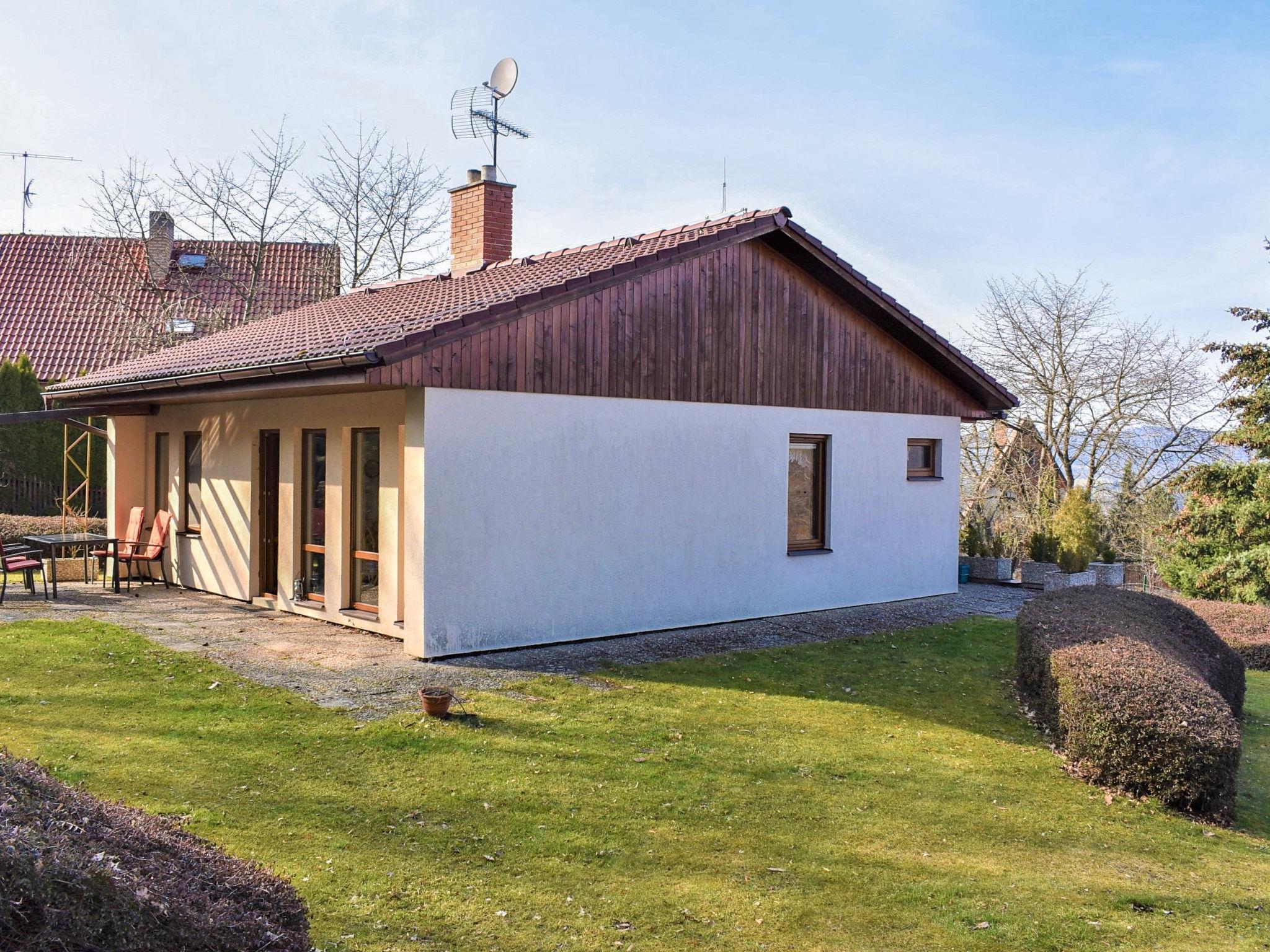 Merín 5 km von Rabyne: Modernes, schönes, freistehendes Einfamilienhaus "Merín". Am Ortsrand, ruhige, sonnige Lage, 900 m vom See. Zur Alleinbenutzung: Garten 700 m2 (eingezäunt). Sitzplatz, Gartenmöbel, Grill, öffentliche Parkplätze auf der Strasse. Lebensmittelgeschäft 1.5 km, Supermarkt 8 km, Restaurant 3 km, Bushaltestelle "Rabyne - Merín" 250 m, Sandstrand "vodní nádrž Slapy" 1.5 km, Hallenbad 1.5 km, Badesee "vodní nádrž Slapy" 900 m. Tennis 1.5 km, Tennishalle 1.5 km, Sportzentrum 1.5 km, Wanderwege ab Haus 20 m, Kinderspielplatz 1.5 km. Nahe gelegene Sehenswürdigkeiten: vodní nádrž Slapy 900 m, Krnanský vodopád, vyhlídka Máj 12 km, zámek Konopište, zámek Dobríš 20 m, Mníšek pod Brdy 27 m, zámek Jemnište 32 km, Praha, Pražský hrad, hrad Karlštejn 55 m. Wandergebiete: Svatojanské proudy 9 km.