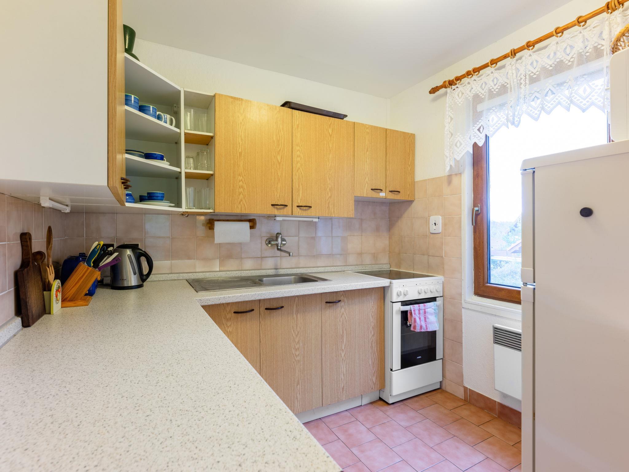 3-Zimmer-Bungalow 90 m2. Geräumig und hell, komfortabel eingerichtet: Wohnzimmer mit 1 Doppeldiwanbett, Schwedenofen, Sat-TV und Kabel-TV (Flachbildschirm). 1 Zimmer mit 1 Doppelbett. 1 Zimmer mit 2 Betten. Küche (Backofen, 4 Glaskeramikplatten, Wasserkocher, Mikrowelle, Tiefkühler, elektrische Kaffeemaschine) mit Esstisch. Dusche, sep. WC. E-Heizung, Holzheizung, Boiler (120 Liter). Gartensitzplatz 5 m2. Terrassenmöbel, Gartengrill. Schöne Sicht auf den See. Zur Verfügung: Babybett. Internet (Wireless LAN, gratis). Geeignet für Familien. Maximal 2 Haustiere/Hunde erlaubt.