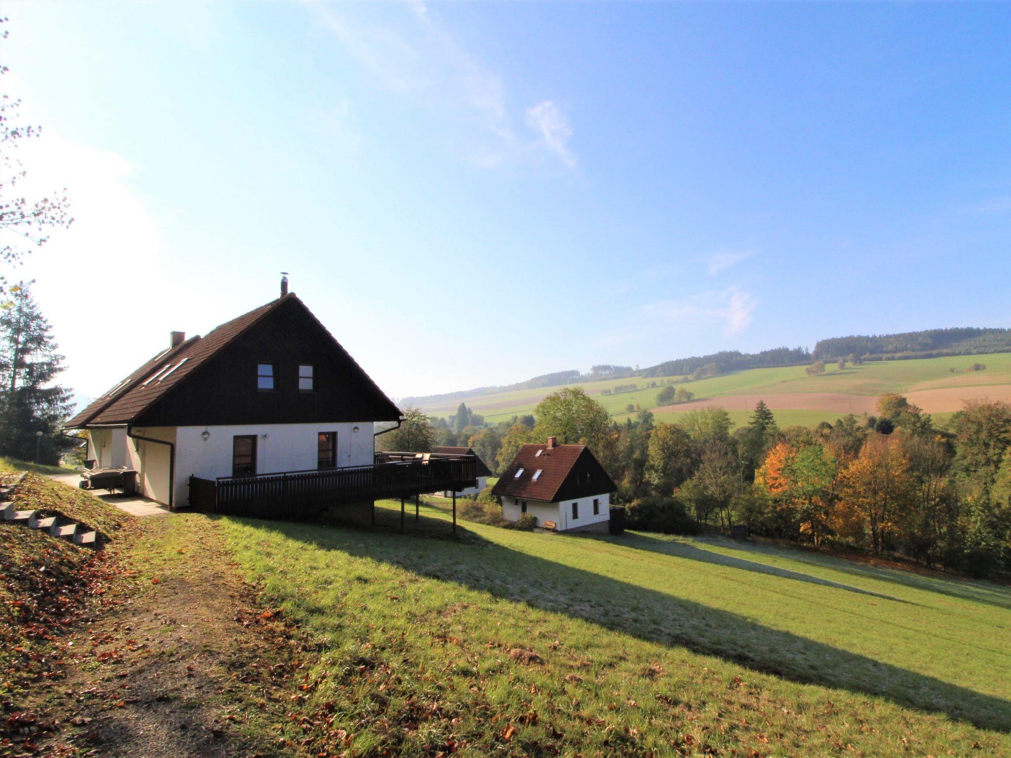 Stárkov 18 km von Náchod: Freistehende Ferienanlage "Stárkov", 450 m.ü.M., Baujahr 1997, renoviert im Jahre 2015, umgeben von Wiesen. 22 Häuser im Ferienresort. Am Ortsrand, sonnige, erhöhte Lage am Hang, direkt am Waldrand, 24 km vom See, 10 km vom Skigebiet, im Grünen. Zur Mitbenutzung: Grundstück 10 ha, Wiese, Teich, Schwimmbad (8 x 4 m, 150 cm tief, saisonale Verfügbarkeit: 15.Jun. - 16.Sep.). Tischtennis, Volleyball, Badminton, Volleyballfeld, Beachvolleyball, Sitzplatz, Grill, Feuerstelle, Kinderspielplatz (Rutschbahn, Schaukel, Sandkasten). In der Anlage: Empfang, Aufenthaltsraum, Bistro, Massage (extra). Billard, Spielzimmer, Tischfussball, Trampolin, Kiosk, Einstellraum für Fahrräder, Wäscherei (extra), Fahrradverleih. Wäschewechsel (zusätzlich extra). Handtuchwechsel (zusätzlich extra). Wohnungsreinigung möglich (extra). Brötchenservice möglich auf Anfrage. Einkaufsservice vor Anreise möglich. 200 m lange steile, schmale Zufahrt. Parkplatz (für 2 Autos) beim Haus. Lebensmittelgeschäft 1 km, Supermarkt 8 km, Restaurant 1 km, Café 10 m, Bushaltestelle "Stárkov, mlékárna" 50 m, Bahnstation "Hronov" 8 km, Hallenbad 18 km. Golfplatz (9 Loch) 26 km, Segelschule 26 km, Tennis 500 m, Minigolf 10 m, Reitstall 10 m, Wanderwege ab Haus, Radweg, Skilift 6 km, Skischule 17 km, Langlaufloipe 100 m, Eisfeld 8 km, Kinderspielplatz 10 m. Nahe gelegene Sehenswürdigkeiten: Adršpašsko-teplické skály 15 km, Náchod 17 km, Broumovské steny 17 km, Ratiborice a Babiccino údolí 22 km, Broumov 24 km, Relaxpark Pec pod Snežkou 50 km. Bekannte Skigebiete sind gut erreichbar: Radvanice 10 km, Petríkovice 17 km, Mladé Buky 36 km. Bekannte Seen in der Umgebung sind gut erreichbar: vodní nádrž Rozkoš 26 km. Bitte beachten: geeignet für Familien, Babyausstattung auf Anfrage (inkl.).