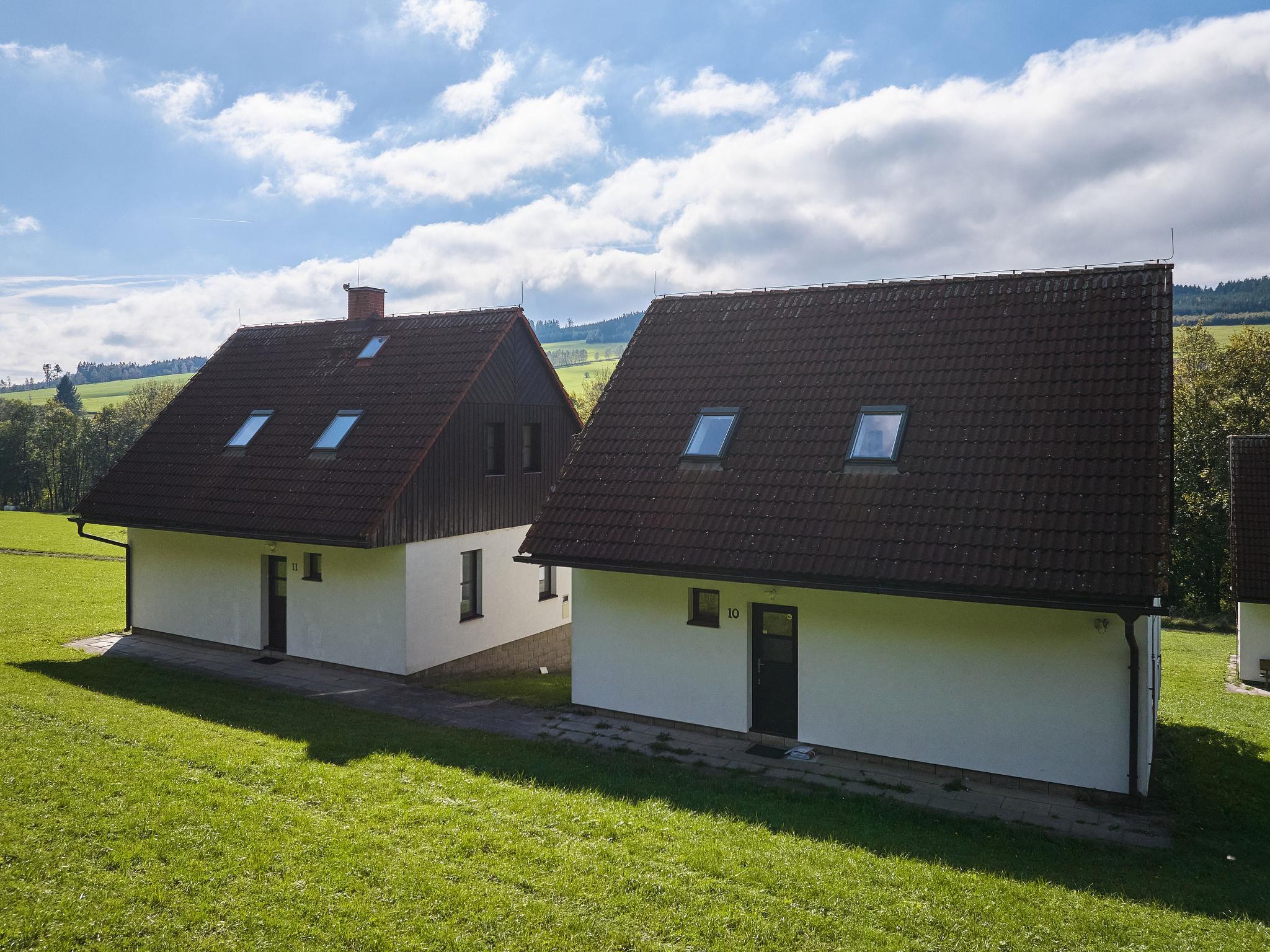 Stárkov 18 km von Náchod: Ferienanlage "Stárkov", 450 m.ü.M., einseitig angebaut, Baujahr 1997, umgeben von Wiesen. 22 Häuser im Ferienresort. Am Ortsrand, sonnige, erhöhte Lage am Hang, direkt am Waldrand, 24 km vom See, 10 km vom Skigebiet, im Grünen. Zur Mitbenutzung: Grundstück 10 ha, Wiese, Teich, Schwimmbad (8 x 4 m, 150 cm tief, saisonale Verfügbarkeit: 15.Jun. - 16.Sep.). Tischtennis, Volleyball, Badminton, Volleyballfeld, Beachvolleyball, Sitzplatz, Grill, Feuerstelle, Kinderspielplatz (Rutschbahn, Schaukel, Sandkasten). In der Anlage: Empfang, Aufenthaltsraum, Bistro, Massage (extra). Billard, Tischfussball, Trampolin, Kiosk, Einstellraum für Fahrräder, Wäscherei (extra). Wäschewechsel (zusätzlich extra). Handtuchwechsel (zusätzlich extra). Wohnungsreinigung möglich (extra). Brötchenservice möglich auf Anfrage. Einkaufsservice vor Anreise möglich. Zufahrt bis 200 m zum Haus. Parkplatz beim Haus. Lebensmittelgeschäft 1 km, Supermarkt 8 km, Restaurant 1 km, Café 10 m, Bushaltestelle "Stárkov,mlékárna" 280 m, Bahnstation "Ždár nad Metují" 4.6 km, Hallenbad 18 km. Golfplatz (9 Loch) 26 km, Segelschule 26 km, Tennis 500 m, Reitstall, Wanderwege ab Haus, Radweg 10 m, Skilift 6 km, Skischule 17 km, Langlaufloipe 100 m, Eisfeld 8 km, Kinderspielplatz 10 m. Nahe gelegene Sehenswürdigkeiten: Adršpašsko-teplické skály 15 km, Náchod 17 km, Broumovské steny 17 km, Ratiborice a Babiccino údolí 22 km, Broumov 24 km, Relaxpark Pec pod Snežkou 50 km. Bekannte Skigebiete sind gut erreichbar: Radvanice 10 km, Petríkovice 17 km, Mladé Buky 36 km. Bekannte Seen in der Umgebung sind gut erreichbar: vodní nádrž Rozkoš 26 km. Bitte beachten: geeignet für Familien, geeignet für Senioren Babyausstattung auf Anfrage (inkl.).