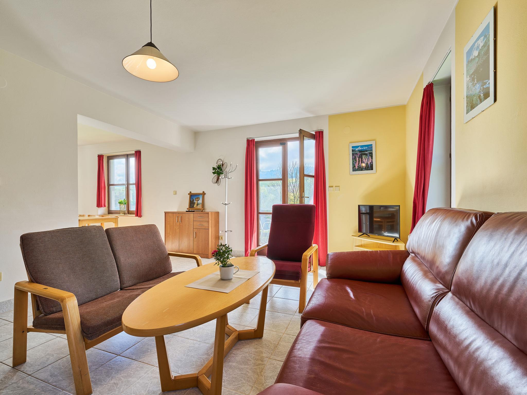 4-Zimmer-Chalet 100 m2 auf 2 Stockwerken. Hell, gemütlich eingerichtet: Wohnzimmer mit Sat-TV und Flachbildschirm. Ausgang zur Terrasse. Offene Küche (4 Kochplatten, Toaster, Wasserkocher, Mikrowelle, Tiefkühler, elektrische Kaffeemaschine) mit Esstisch. Dusche/WC, sep. WC. E-Heizung. Obergeschoss: 1 Zimmer mit 3 Betten. 1 Zimmer mit 3 Betten. 1 Zimmer mit 1 Doppelbett. Terrasse 11 m2. Terrassenmöbel. Schöne Panoramasicht auf das Tal und die Landschaft. Zur Verfügung: Bügeleisen, Kinderhochstuhl, Babybett (extra). Internet (Wireless LAN, extra). Bitte beachten: geeignet für Familien. Nichtraucher-Haus. Maximal 2 Haustiere/Hunde erlaubt.