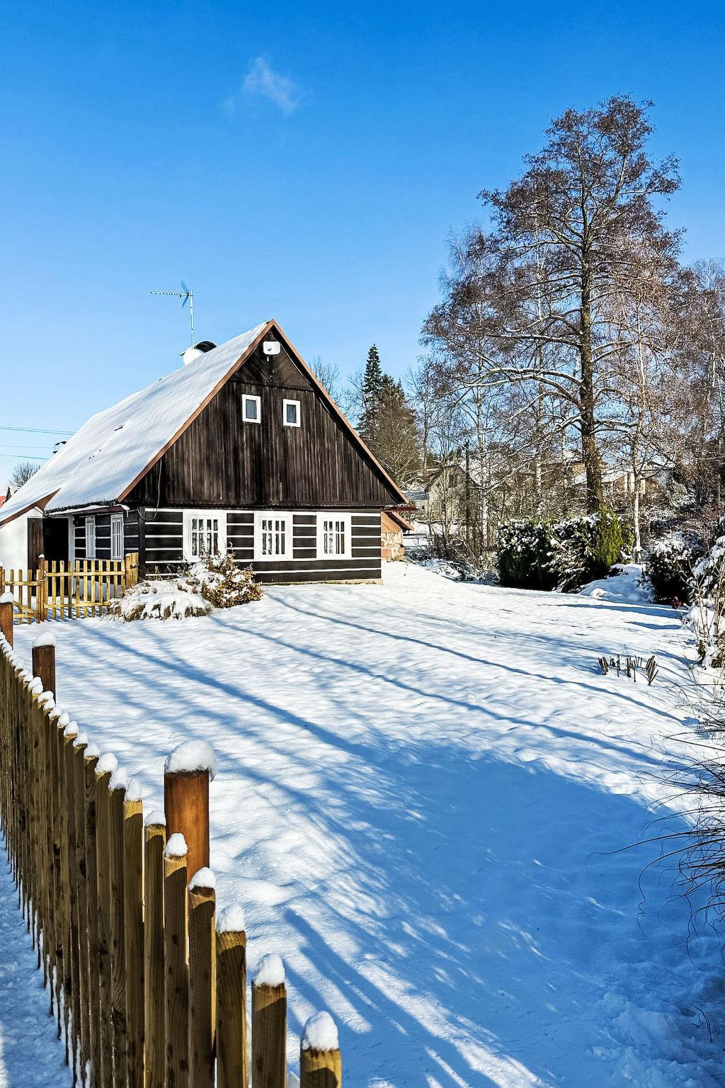 Sehr schönes, freistehendes Chalet "Studenec", auf 2 Stockwerken, renoviert. 10 km vom Skigebiet. Zur Alleinbenutzung: Grundstück, Garten. Sitzplatz, Feuerstelle. Im Hause: Wireless LAN, Sauna, Einstellraum für Fahrräder, Skiraum, Zentralheizung. Parkplatz (für 3 Autos) auf dem Grundstück. Lebensmittelgeschäft 750 m, Restaurant 1 km, Bushaltestelle "Studenec, Pod Táborem" 100 m, Bahnstation "Horka u Staré Paky" 4500 km, Hallenbad 7 km. Skipisten 10 km, Langlaufloipe 400 m. Nahe gelegene Sehenswürdigkeiten: Sportovní centrum Jilemnice 7 km, Vrchlabí 11 km, Hrad Pecka 13 km, Komenského jeskyne 23 km. Bekannte Skigebiete sind gut erreichbar: Ski Máchovka 10 km, Benecko 14 km, Špindleruv Mlýn 25 km, SkiResort CERNÁ HORA - PEC, Cerný Dul 20 km. Bitte beachten: geeignet für Familien.