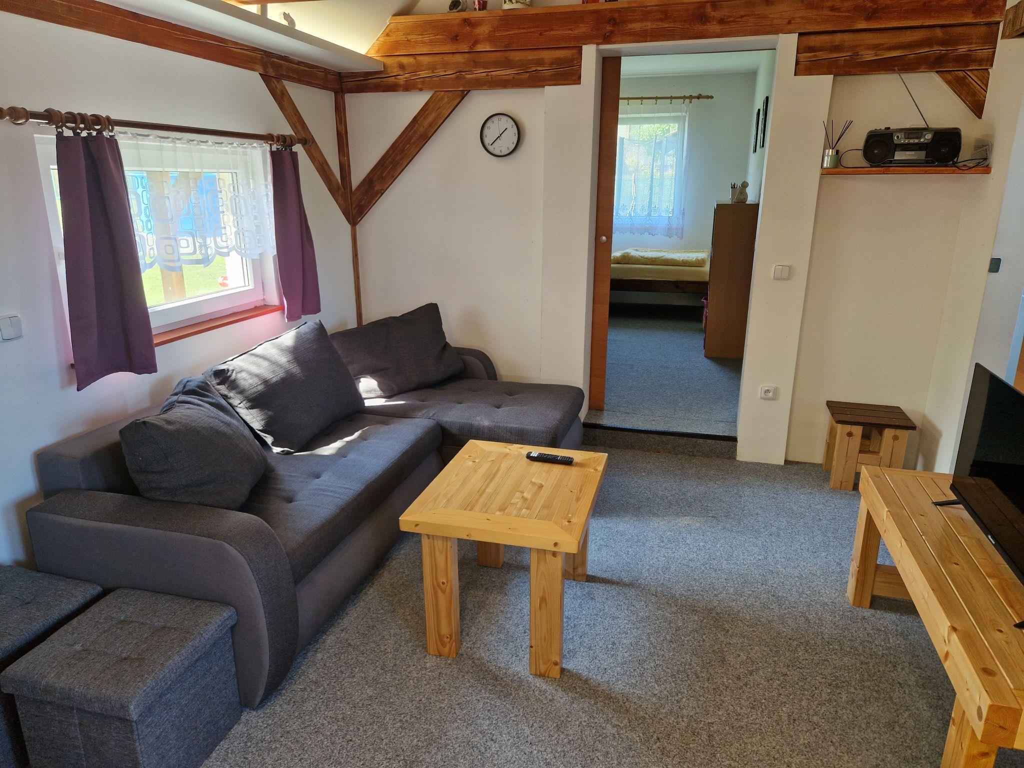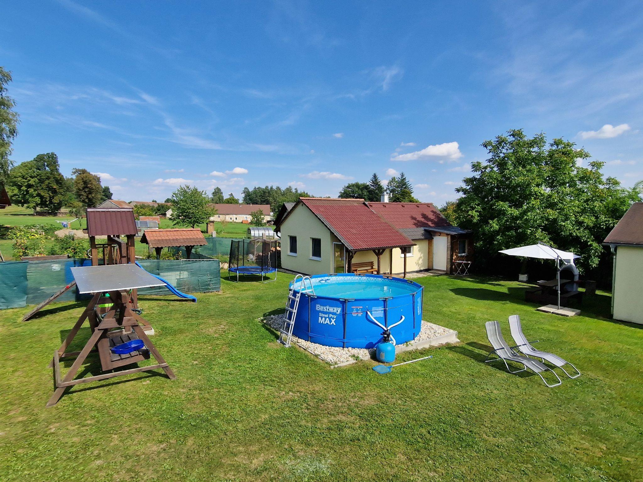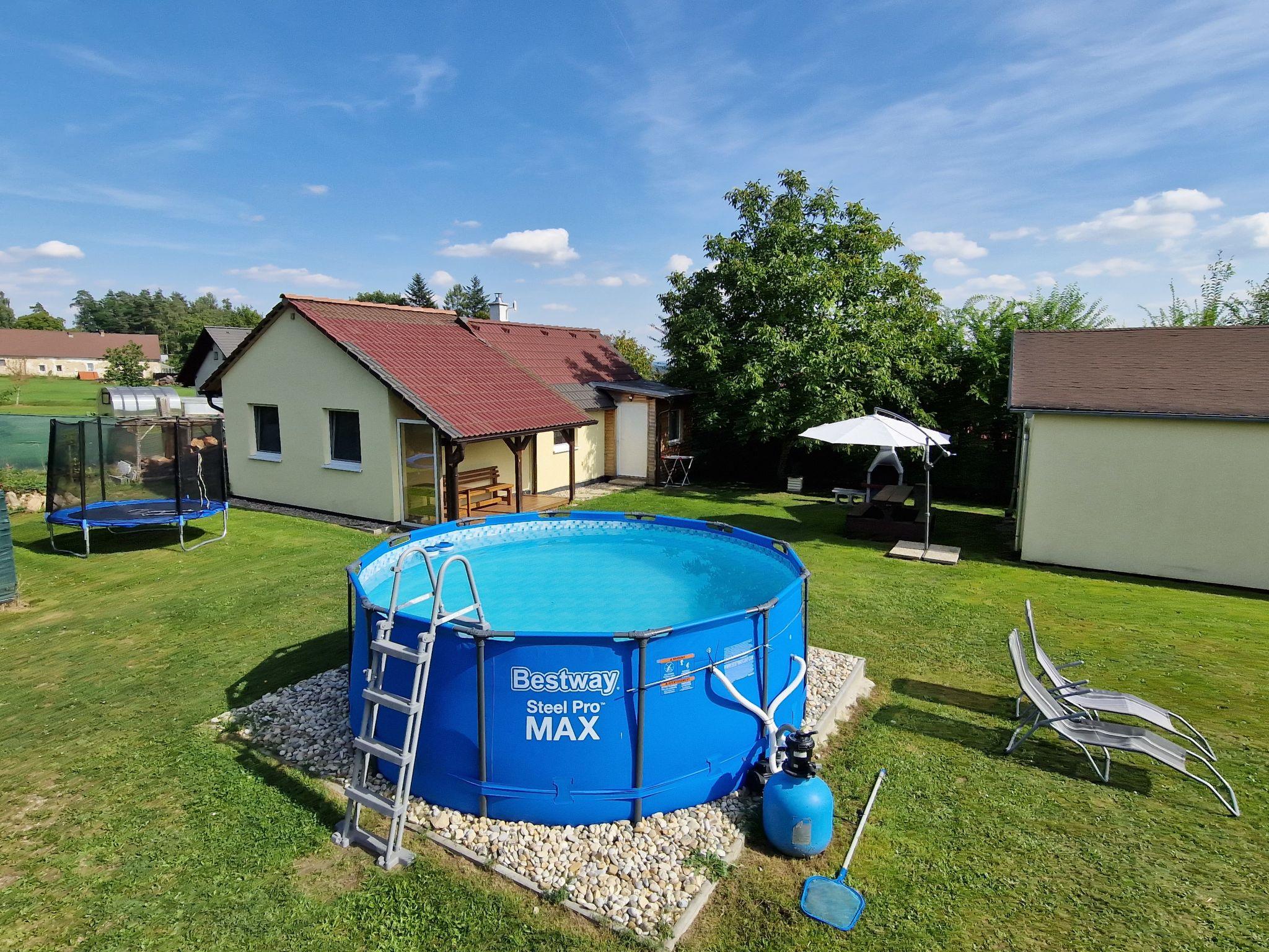 Gemütlicher, freistehender Bungalow "Velký Ratmírov". Ruhige, sonnige Lage. Zur Alleinbenutzung: Grundstück 100 m2 (eingezäunt), Aufstellpool rund (3.6 m Durchmesser, 120 cm tief, saisonale Verfügbarkeit: 01.Jun. - 30.Sep.). Gartenmöbel, Grill, Kinderspielplatz. In der Anlage: Trampolin. Parkplatz. Einkaufsgeschäft, Restaurant 500 m, Bushaltestelle "Velký Ratmírov" 500 m, Bahnstation "Debolín" 2.5 km. Angelmöglichkeit 2 km. Nahe gelegene Sehenswürdigkeiten: Zámek Kardašova Recice, Pluhuv Ždár 10 km, Zámek, muzeum Jindrichuv Hradec 10 km, Zámek Cervená Lhota, Jemcina, Dírná 14 km, Zoopark Na Hrádecku 14 km, Hrad a zámek Stráž nad Nežárkou 16 km, Provaznické muzeum Karla Klika 16 km. Bekannte Seen in der Umgebung sind gut erreichbar: Velká Holná 6 km. Wandergebiete: Ceská Kanada 20 km, Trebon 30 km.