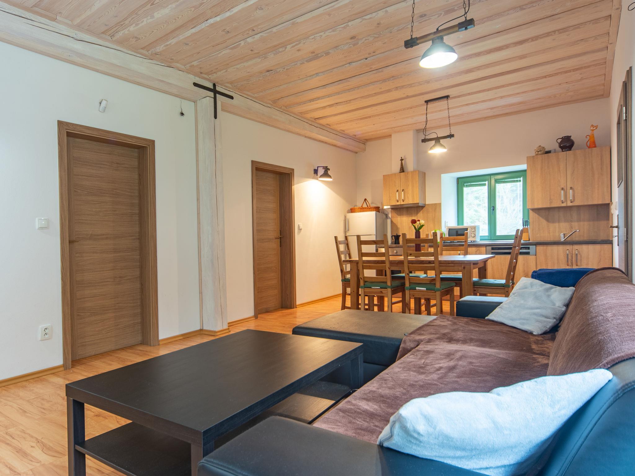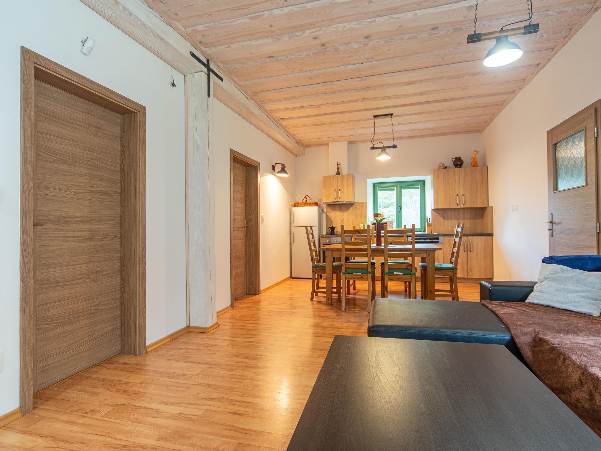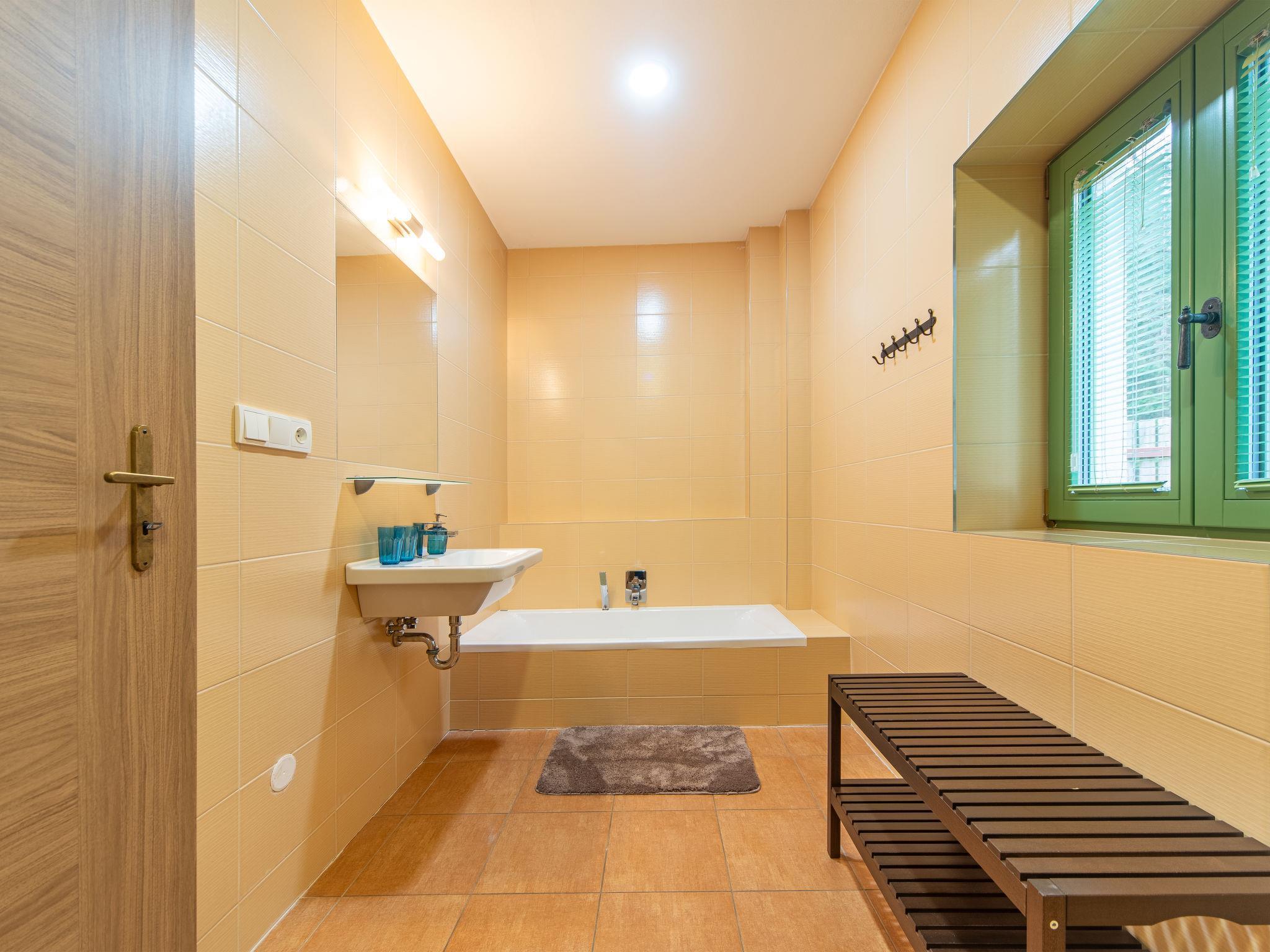 "Klobasná", 2-Zimmer-Doppelhaushälfte im Erdgeschoss. Geräumig, renoviert, sehr schön eingerichtet: Wohn-/Esszimmer mit Esstisch und TV. Wohn-/Schlafzimmer mit 2 x 2 Etagenbetten. 1 Zimmer mit 1 Doppelbett. Kochnische (Backofen, Geschirrspüler, 4 Induktionskochplatten, Wasserkocher, Mikrowelle). Bad/Dusche/WC. Grosse Terrasse. Terrassenmöbel, Gartengrill. Zur Verfügung: Internet (Wireless LAN). Parkplatz beim Haus. Bitte beachten: geeignet für Familien. Nichtraucher-Unterkunft. Eigener Eingang.