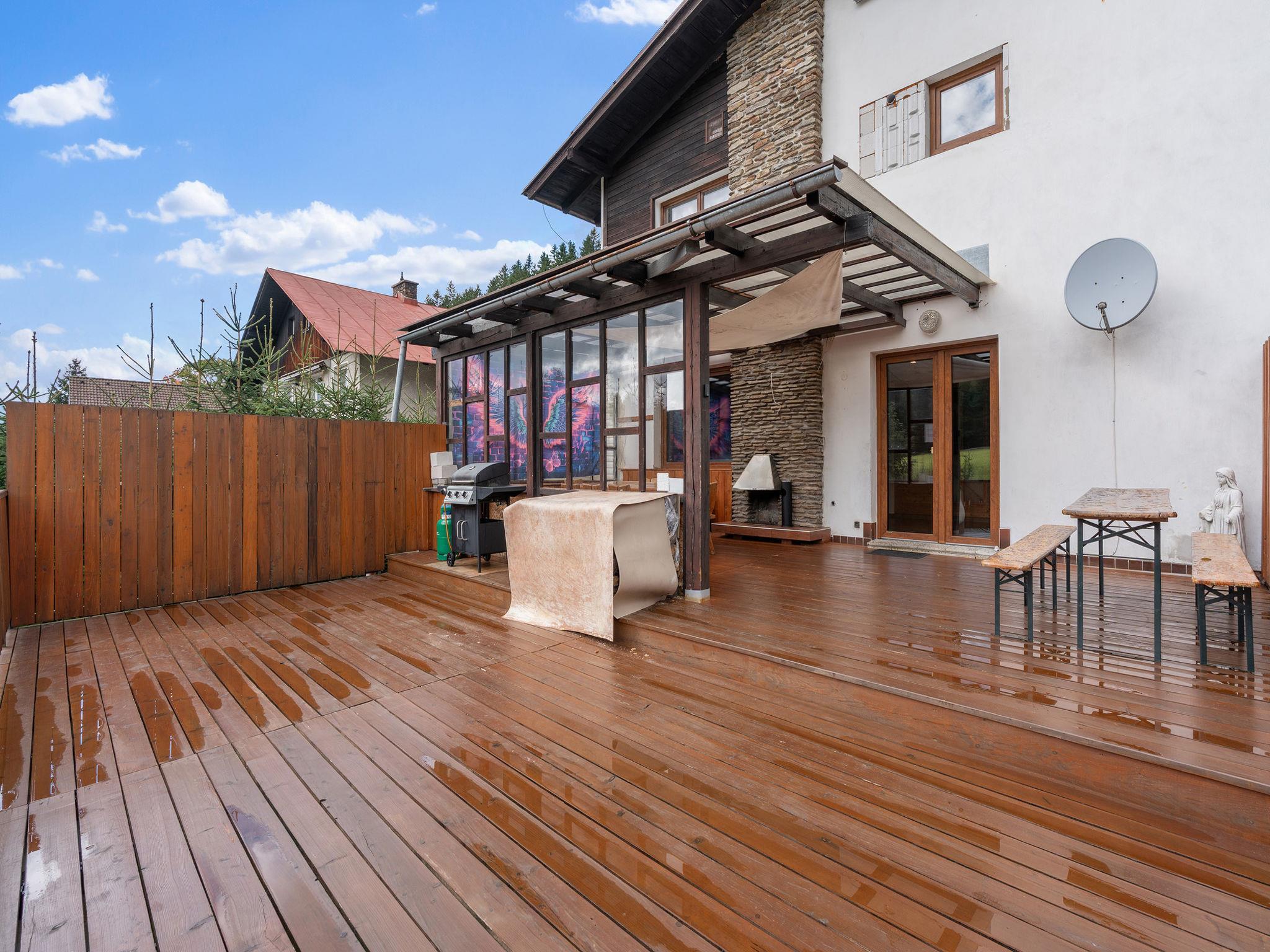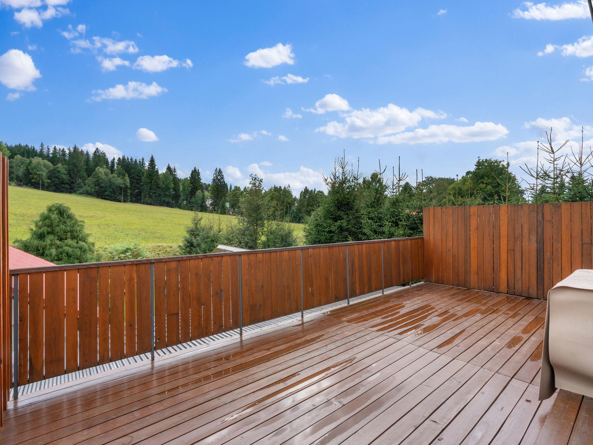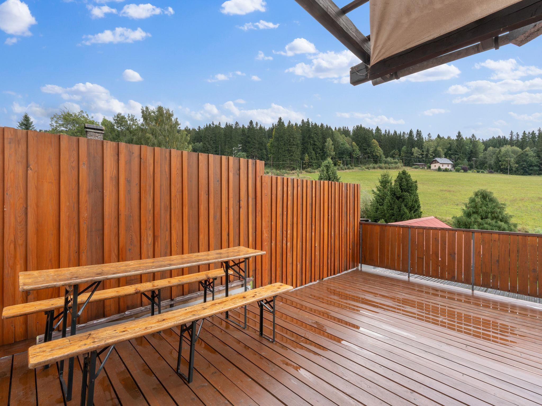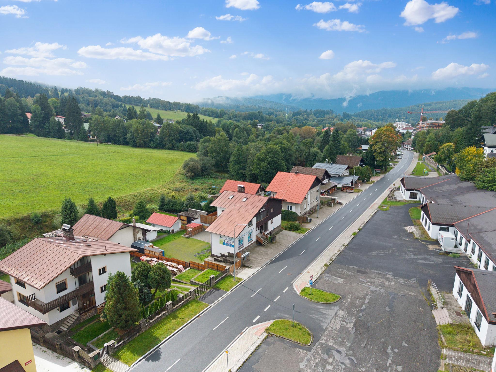 Schönes, freistehendes Chalet "Horalka", auf 3 Stockwerken, renoviert im Jahre 2022. Im Ort Železná Ruda, sonnige, erhöhte Lage, 300 m vom Waldrand, 500 m vom Skigebiet. Zur Alleinbenutzung: Terrasse, Gartenmöbel, Grill. Im Hause: Wireless LAN, Einstellraum für Fahrräder, Skiraum, Zentralheizung. Parkplatz (für 5 Autos) beim Haus. Supermarkt 450 m, Restaurant 250 m, Bar, Café, Biergarten 500 m, Bushaltestelle "Železná Ruda, Pod Belvederem" 520 m, Bahnstation "Železná Ruda, žel.stanice" 1.8 km, Freibad 25 km, Hallenbad 19 km, Badesee "Žábáky" 1.4 km. Tennis 250 m, Minigolf 5 km, Wanderwege ab Haus, Radweg 50 m, Sessellift, Skipisten 500 m, Skiverleih 100 m, Skischule, Kinderskischule 500 m, Kinderspielplatz 700 m. Nahe gelegene Sehenswürdigkeiten: Muzeum Šumavy 800 m, lanové centrum 1.3 km, Localbahnmuseum Bayerisch Eisenstein 4 km, Rozhledna Špicák 6 km, Hojsova Stráž 13 km, Vodopád Bílá strž 13 km, Prášily 19 km, Velhartice 25 km, Sušice 30 km, Kašperské Hory 35 km, Klatovy 37 km. Bekannte Skigebiete sind gut erreichbar: Belveder 500 m, Samoty 850 m, Pancír, Špicák 4 km, Grosser Arber/Velký Javor (DE) 12 km. Bekannte Seen in der Umgebung sind gut erreichbar: Certovo jezero 5.5 km, Cerné jezero 8 km. Wandergebiete: Národní park Šumava, Národní park Bavorský les (DE).
