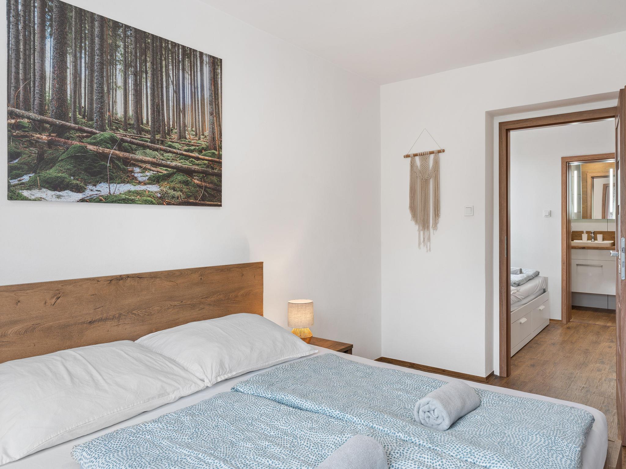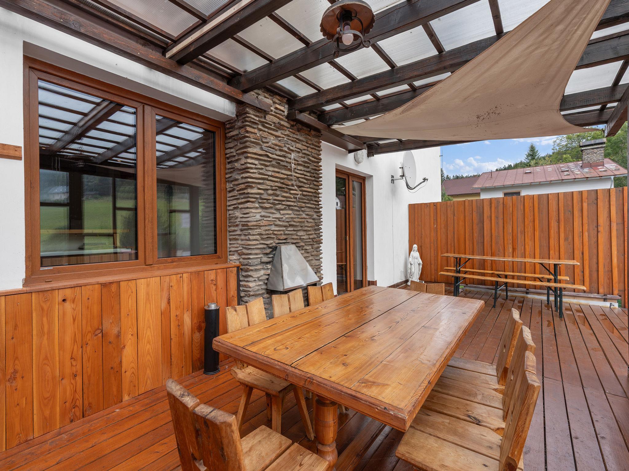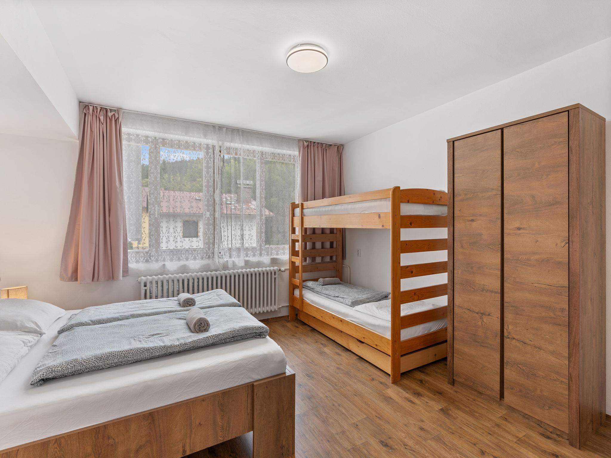 Schönes, freistehendes Chalet "Horalka", auf 3 Stockwerken, renoviert im Jahre 2022. Im Ort Železná Ruda, sonnige, erhöhte Lage, 300 m vom Waldrand, 500 m vom Skigebiet. Zur Alleinbenutzung: Terrasse, Gartenmöbel, Grill. Im Hause: Wireless LAN, Einstellraum für Fahrräder, Skiraum, Zentralheizung. Parkplatz (für 5 Autos) beim Haus. Supermarkt 450 m, Restaurant 250 m, Bar, Café, Biergarten 500 m, Bushaltestelle "Železná Ruda, Pod Belvederem" 520 m, Bahnstation "Železná Ruda, žel.stanice" 1.8 km, Freibad 25 km, Hallenbad 19 km, Badesee "Žábáky" 1.4 km. Tennis 250 m, Minigolf 5 km, Wanderwege ab Haus, Radweg 50 m, Sessellift, Skipisten 500 m, Skiverleih 100 m, Skischule, Kinderskischule 500 m, Kinderspielplatz 700 m. Nahe gelegene Sehenswürdigkeiten: Muzeum Šumavy 800 m, lanové centrum 1.3 km, Localbahnmuseum Bayerisch Eisenstein 4 km, Rozhledna Špicák 6 km, Hojsova Stráž 13 km, Vodopád Bílá strž 13 km, Prášily 19 km, Velhartice 25 km, Sušice 30 km, Kašperské Hory 35 km, Klatovy 37 km. Bekannte Skigebiete sind gut erreichbar: Belveder 500 m, Samoty 850 m, Pancír, Špicák 4 km, Grosser Arber/Velký Javor (DE) 12 km. Bekannte Seen in der Umgebung sind gut erreichbar: Certovo jezero 5.5 km, Cerné jezero 8 km. Wandergebiete: Národní park Šumava, Národní park Bavorský les (DE).
