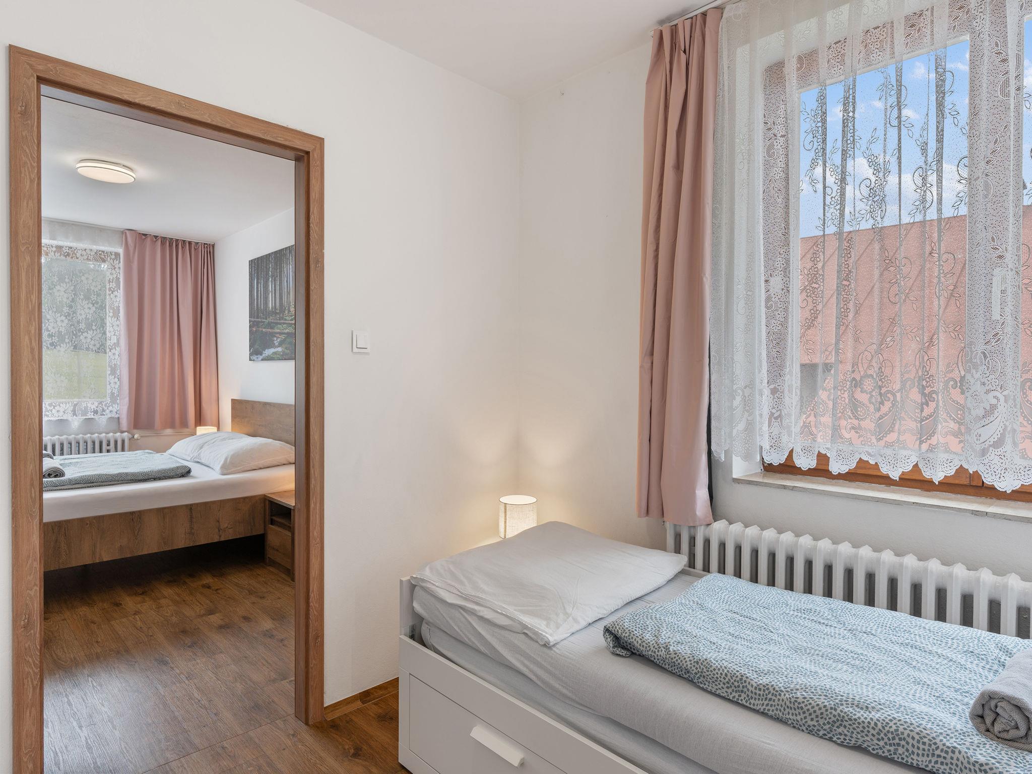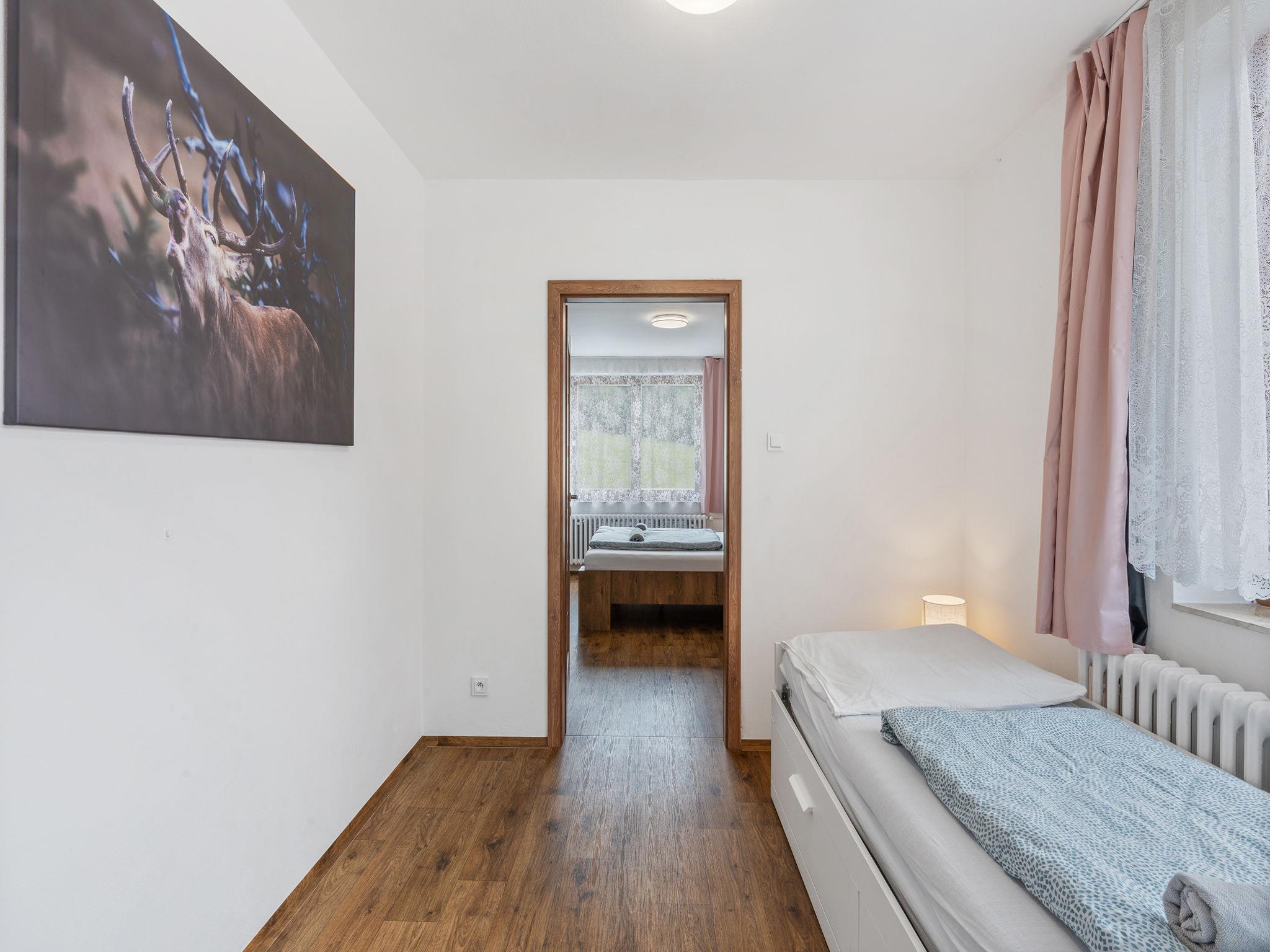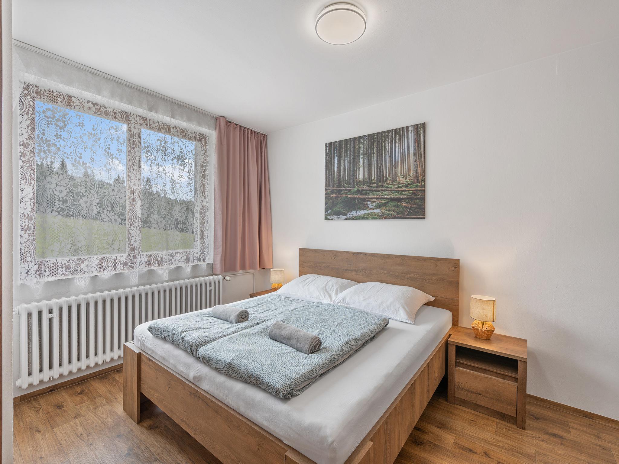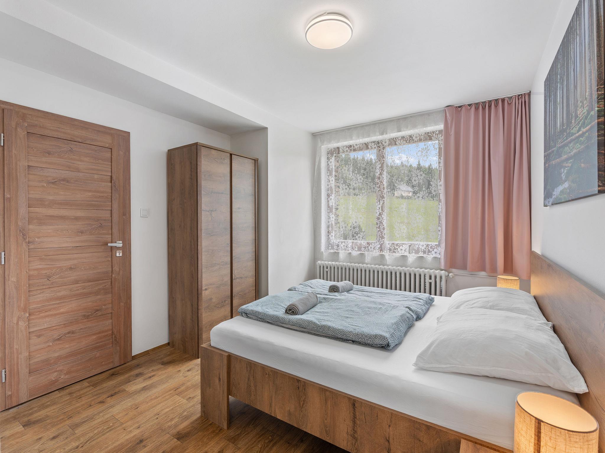 Schönes, freistehendes Chalet "Horalka", auf 3 Stockwerken, renoviert im Jahre 2022. Im Ort Železná Ruda, sonnige, erhöhte Lage, 300 m vom Waldrand, 500 m vom Skigebiet. Zur Alleinbenutzung: Terrasse, Gartenmöbel, Grill. Im Hause: Wireless LAN, Einstellraum für Fahrräder, Skiraum, Zentralheizung. Parkplatz (für 5 Autos) beim Haus. Supermarkt 450 m, Restaurant 250 m, Bar, Café, Biergarten 500 m, Bushaltestelle "Železná Ruda, Pod Belvederem" 520 m, Bahnstation "Železná Ruda, žel.stanice" 1.8 km, Freibad 25 km, Hallenbad 19 km, Badesee "Žábáky" 1.4 km. Tennis 250 m, Minigolf 5 km, Wanderwege ab Haus, Radweg 50 m, Sessellift, Skipisten 500 m, Skiverleih 100 m, Skischule, Kinderskischule 500 m, Kinderspielplatz 700 m. Nahe gelegene Sehenswürdigkeiten: Muzeum Šumavy 800 m, lanové centrum 1.3 km, Localbahnmuseum Bayerisch Eisenstein 4 km, Rozhledna Špicák 6 km, Hojsova Stráž 13 km, Vodopád Bílá strž 13 km, Prášily 19 km, Velhartice 25 km, Sušice 30 km, Kašperské Hory 35 km, Klatovy 37 km. Bekannte Skigebiete sind gut erreichbar: Belveder 500 m, Samoty 850 m, Pancír, Špicák 4 km, Grosser Arber/Velký Javor (DE) 12 km. Bekannte Seen in der Umgebung sind gut erreichbar: Certovo jezero 5.5 km, Cerné jezero 8 km. Wandergebiete: Národní park Šumava, Národní park Bavorský les (DE).