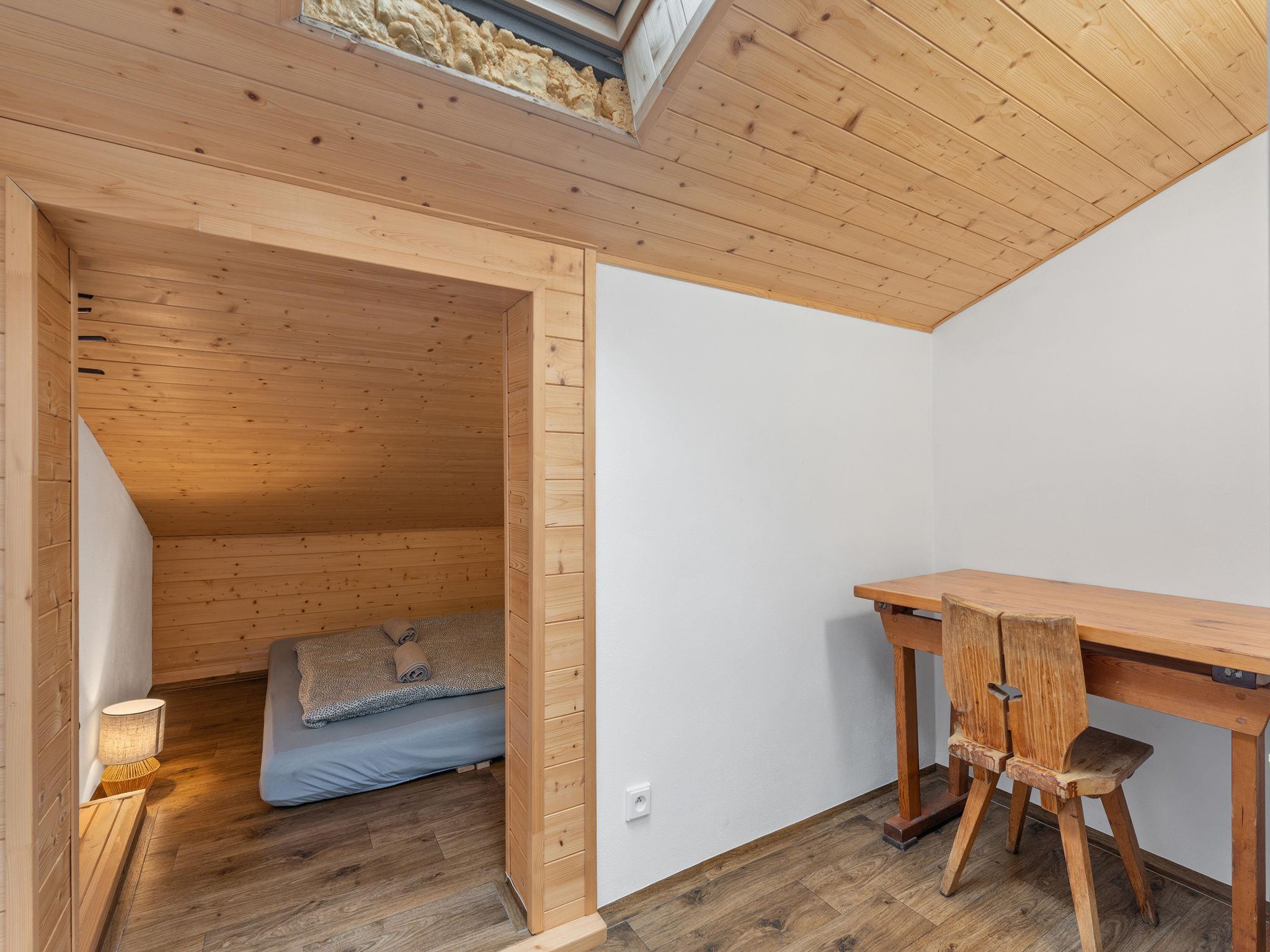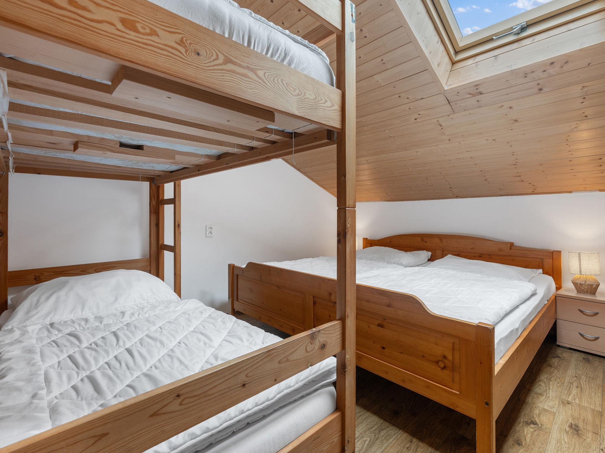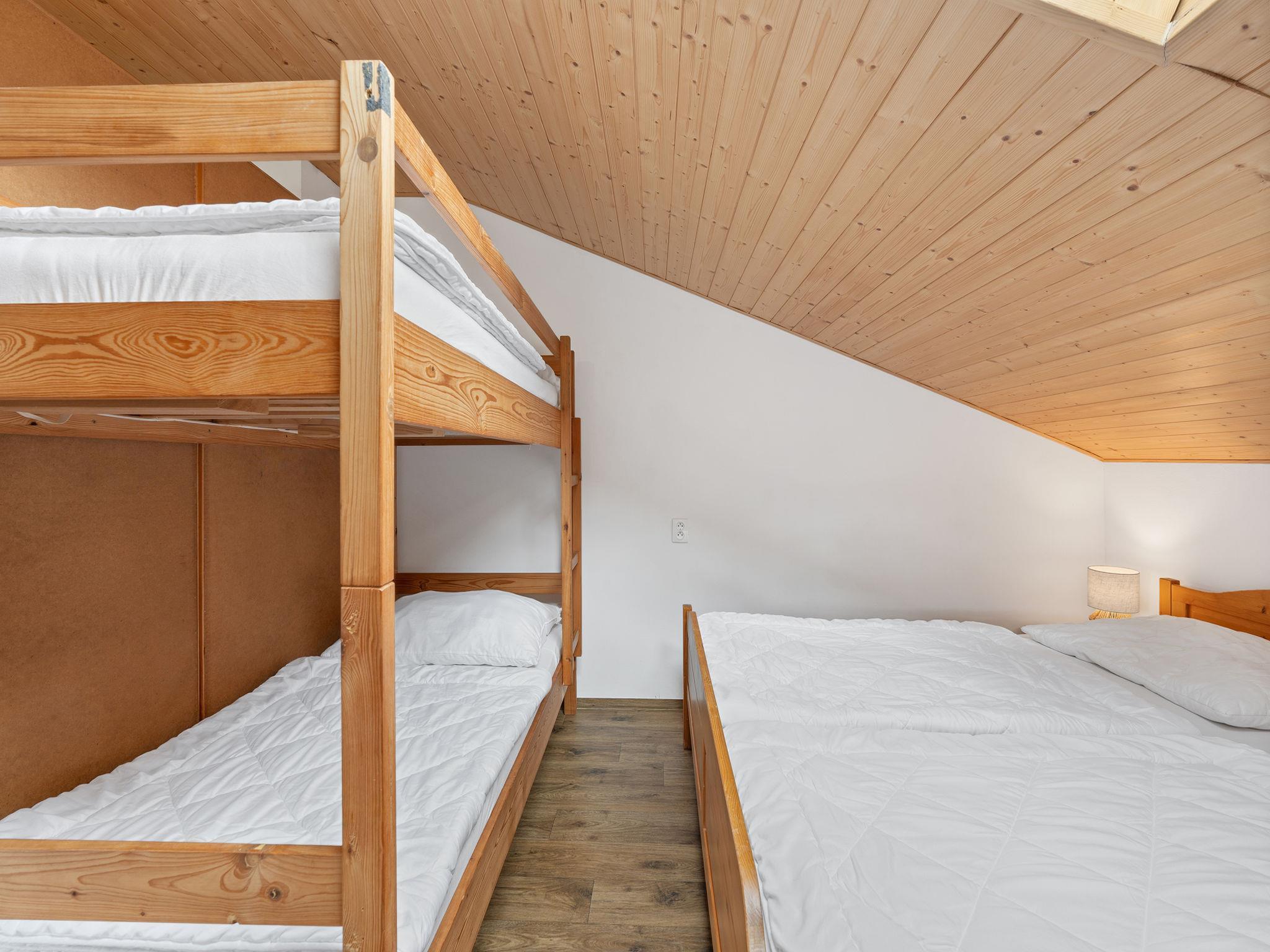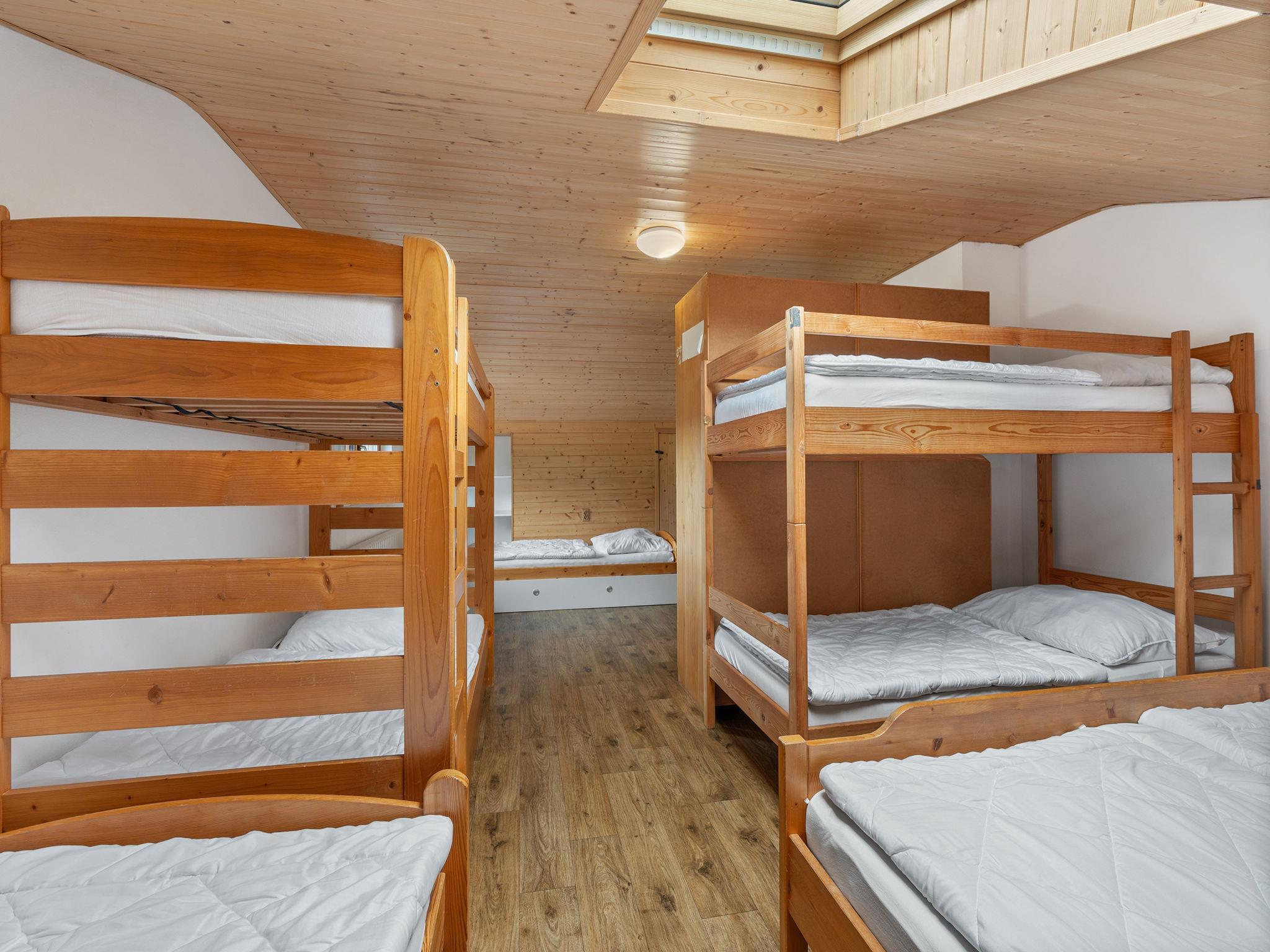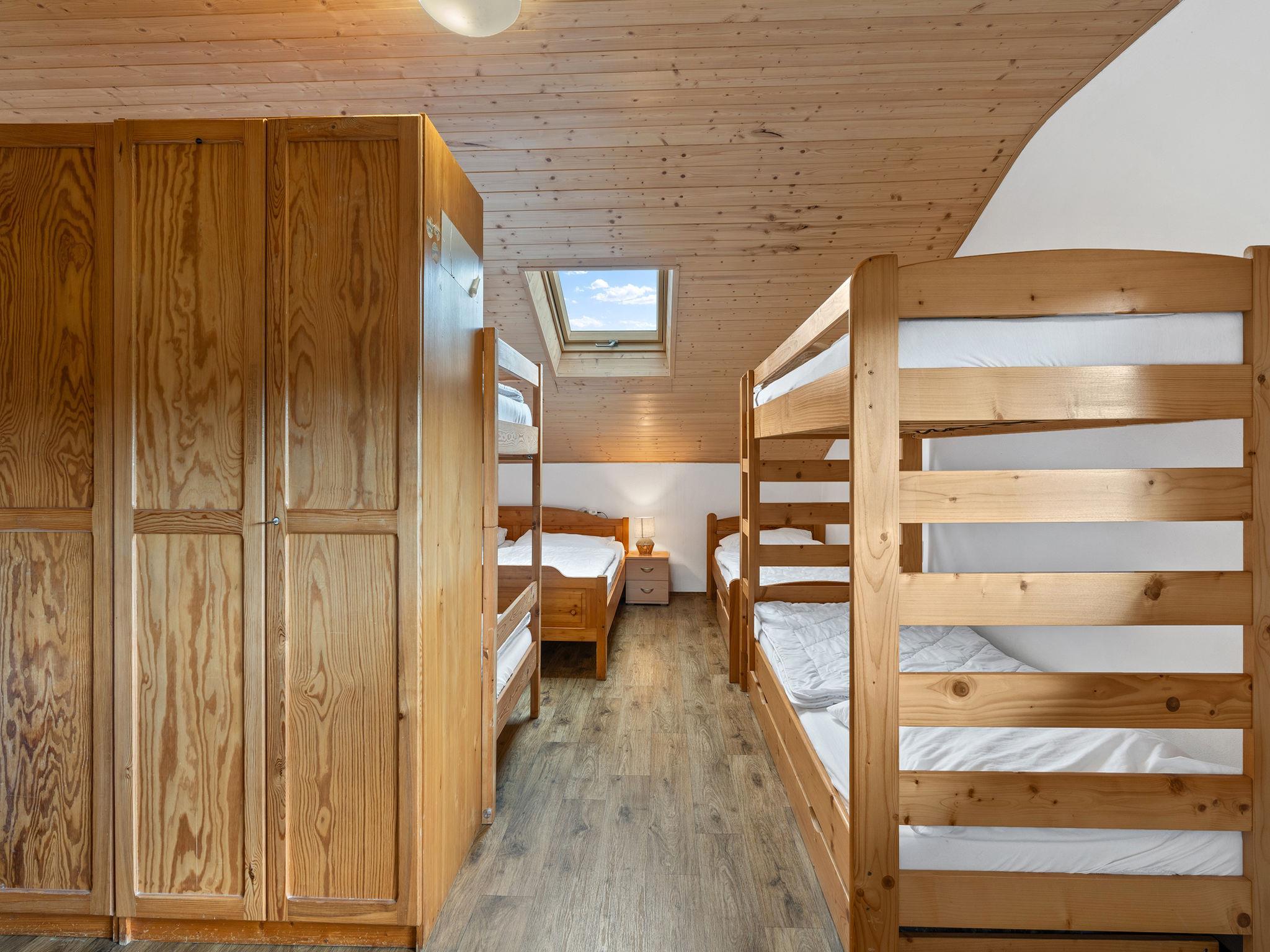 8-Zimmer-Chalet auf 3 Stockwerken. Geräumig, schön und mit viel Holz eingerichtet: offenes grosses Wohn-/Esszimmer mit offenem Kamin, Essecke, Bar und Kabel-TV. Grosse Küche (Geschirrspüler, Gasherd, 5 Flammen, Wasserkocher, Mikrowelle, Grill, elektrische Kaffeemaschine). Sep. WC. Obergeschoss: 1 Zimmer mit 1 x 2 Etagenbetten, 1 Doppelbett und Dusche/WC. 1 Zimmer mit 1 Doppelbett und 1 Ausziehbett (2 Pers.), Dusche/WC. 1 Zimmer mit 1 Doppelbett. Dusche/WC. Dachgeschoss: 1 Zimmer mit 1 Doppelbett. 1 Zimmer mit 8 Betten. 1 kleines Zimmer mit 1 Doppelbett. 1 Kinderzimmer mit 4 Betten. Grosse Terrasse. Terrassenmöbel, Gartengrill. Zur Verfügung: Internet (WLAN, gratis). Geeignet für Familien. Maximal 1 Haustier/Hund erlaubt.