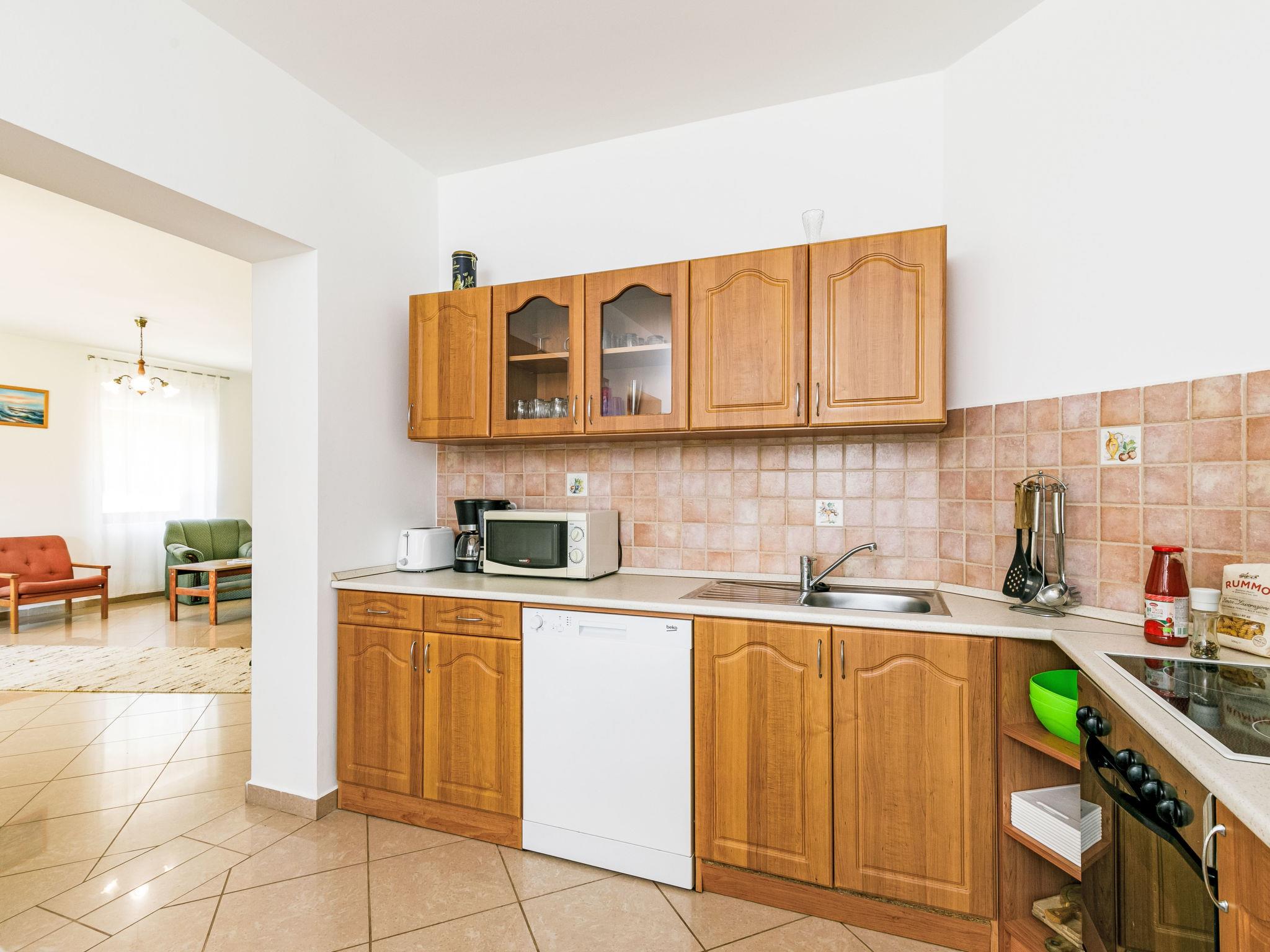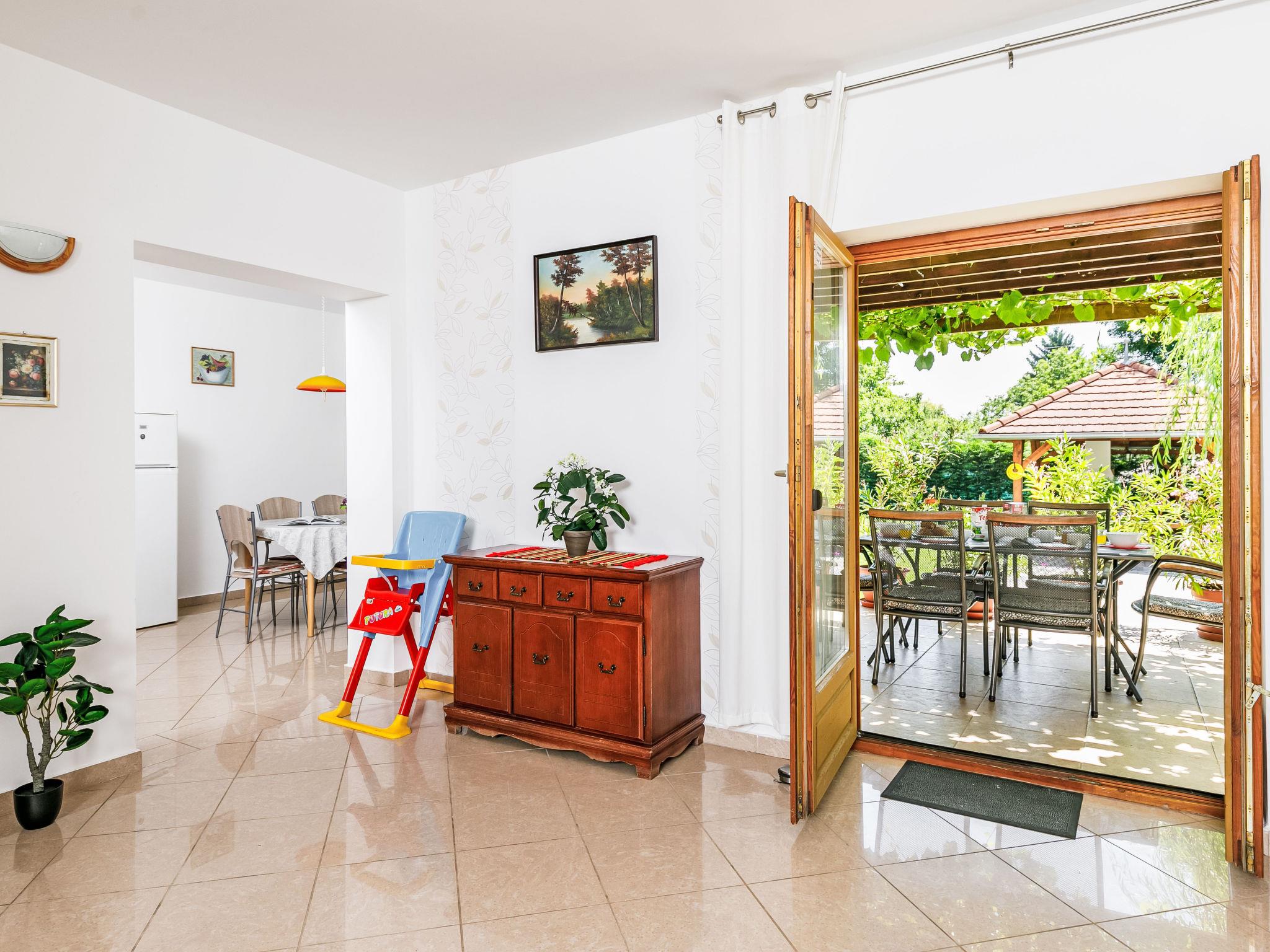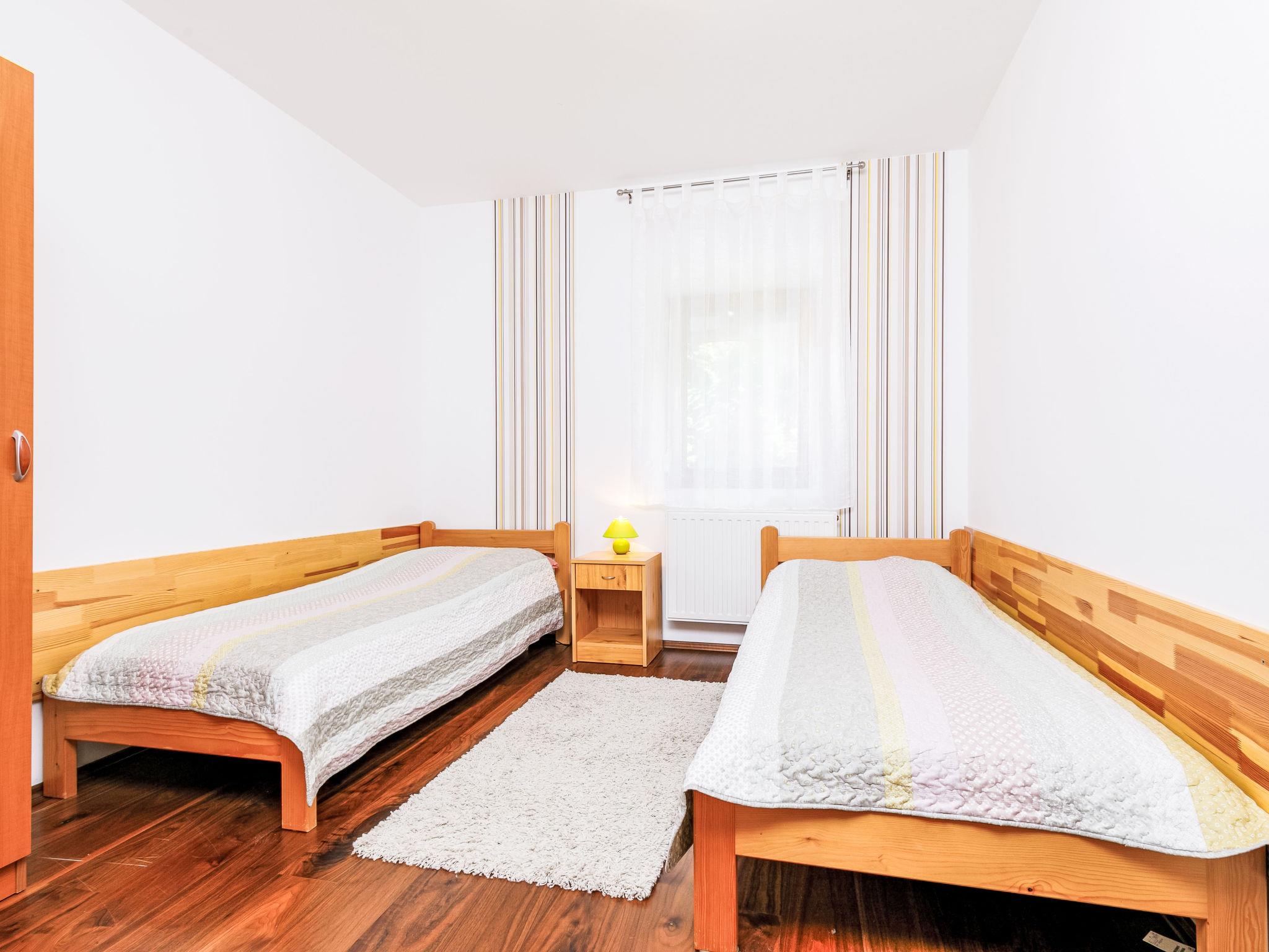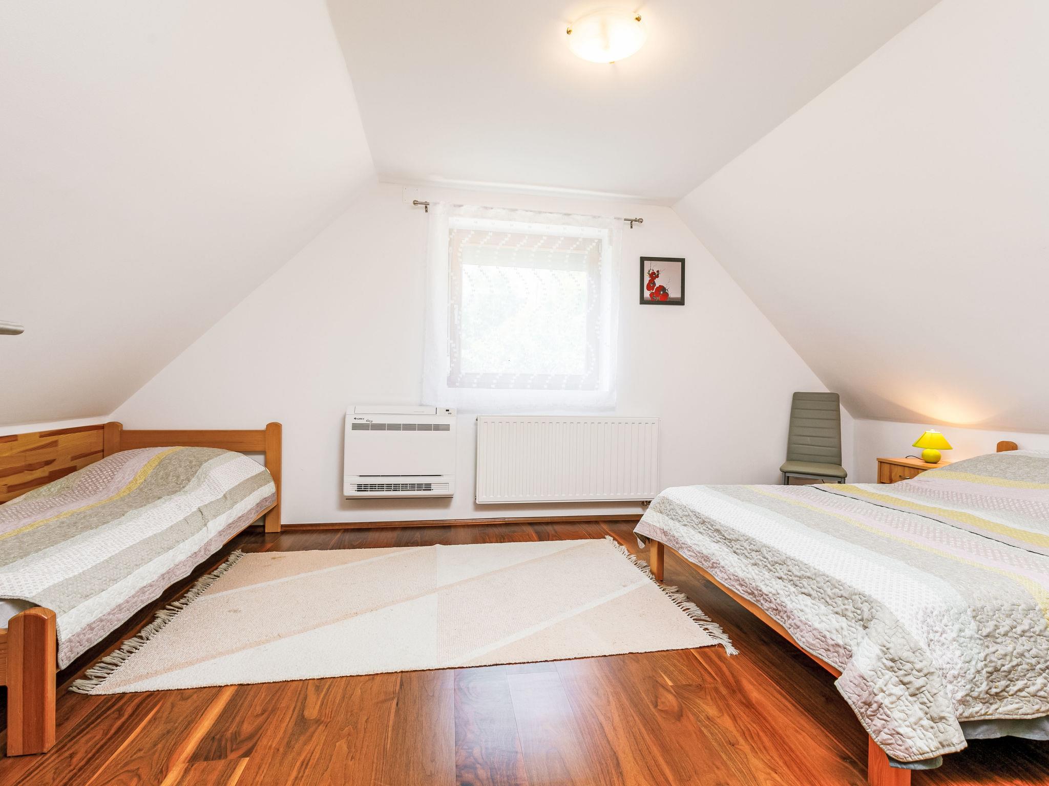 "Horvath", 6-Zimmer-Haus 140 m2 auf 2 Stockwerken. Zweckmässig eingerichtet: Wohnzimmer mit Kabel-TV (Flachbildschirm), DVD. Ausgang zur Terrasse. 1 Zimmer mit 2 Betten (80 cm, Länge 190 cm). 1 Zimmer mit 1 franz. Bett (140 cm, Länge 200 cm). Offene Küche (Backofen, Geschirrspüler, 4 Glaskeramikplatten, Toaster, Wasserkocher, Mikrowelle, elektrische Kaffeemaschine) mit Esstisch. Ausgang zur Terrasse. Sep. WC, Bad/Dusche/WC. Keine Heizmöglichkeit. Obergeschoss: abgeschrägtes Wohnzimmer. 1 abgeschrägtes Zimmer mit 1 Bett (90 cm, Länge 200 cm), 1 franz. Bett (140 cm, Länge 200 cm), Klimaanlage. 1 abgeschrägtes Zimmer mit 1 Bett (90 cm, Länge 200 cm), 1 franz. Bett (180 cm, Länge 200 cm), Klimaanlage. Dusche/WC, sep. WC. G-Heizung. Terrasse, Gartensitzplatz überdacht. Terrassenmöbel, Gartengrill, Liegestühle (6). Zur Verfügung: Waschmaschine, Babybett. Internet (Wireless LAN, gratis). Bitte beachten: Nichtraucher-Haus. MA19023570