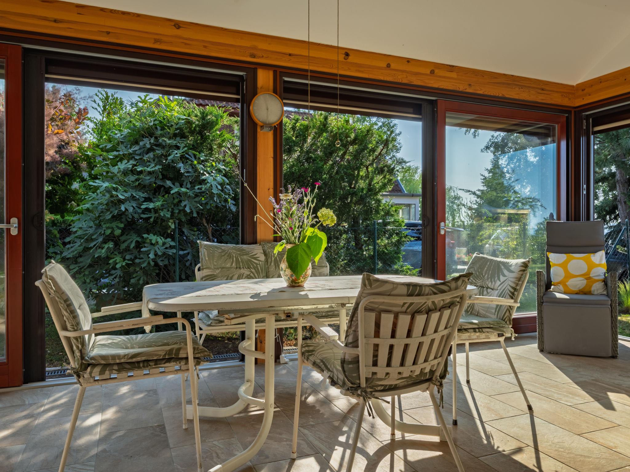 4-Zimmer-Haus auf 2 Stockwerken. Zweckmässig und komfortabel eingerichtet: Wohnzimmer mit Kabel-TV und Internationale TV-Sender. 1 kleines Zimmer mit 1 Bett. Esszimmer mit Wintergarten. Ausgang zum Garten. Kleine Küche (Backofen, Geschirrspüler, Gasherd, 4 Flammen, Toaster, Wasserkocher, Mikrowelle, Tiefkühler, elektrische Kaffeemaschine). Dusche, sep. WC. Heizung, E-Heizung, G-Heizung, Klimaanlage. Obergeschoss: 1 Zimmer mit 1 franz. Bett, 1 Klappbett und Klimaanlage. Ausgang zum Balkon, Richtung Nordwesten. 1 Zimmer mit 2 Betten und Klimaanlage. Ausgang zum Balkon, Richtung Südosten. Dusche/WC. Parkettboden. Terrassenmöbel, Gartengrill (mobil), Liegestühle (6). Herrliche Panoramasicht auf den See. Zur Verfügung: Waschmaschine, Fliegengitter, Haartrockner. Internet (WLAN). Parkplatz (eingezäunt, 1 Auto). Bitte beachten: Nichtraucher-Haus. Rauchmelder, Feuerlöscher.