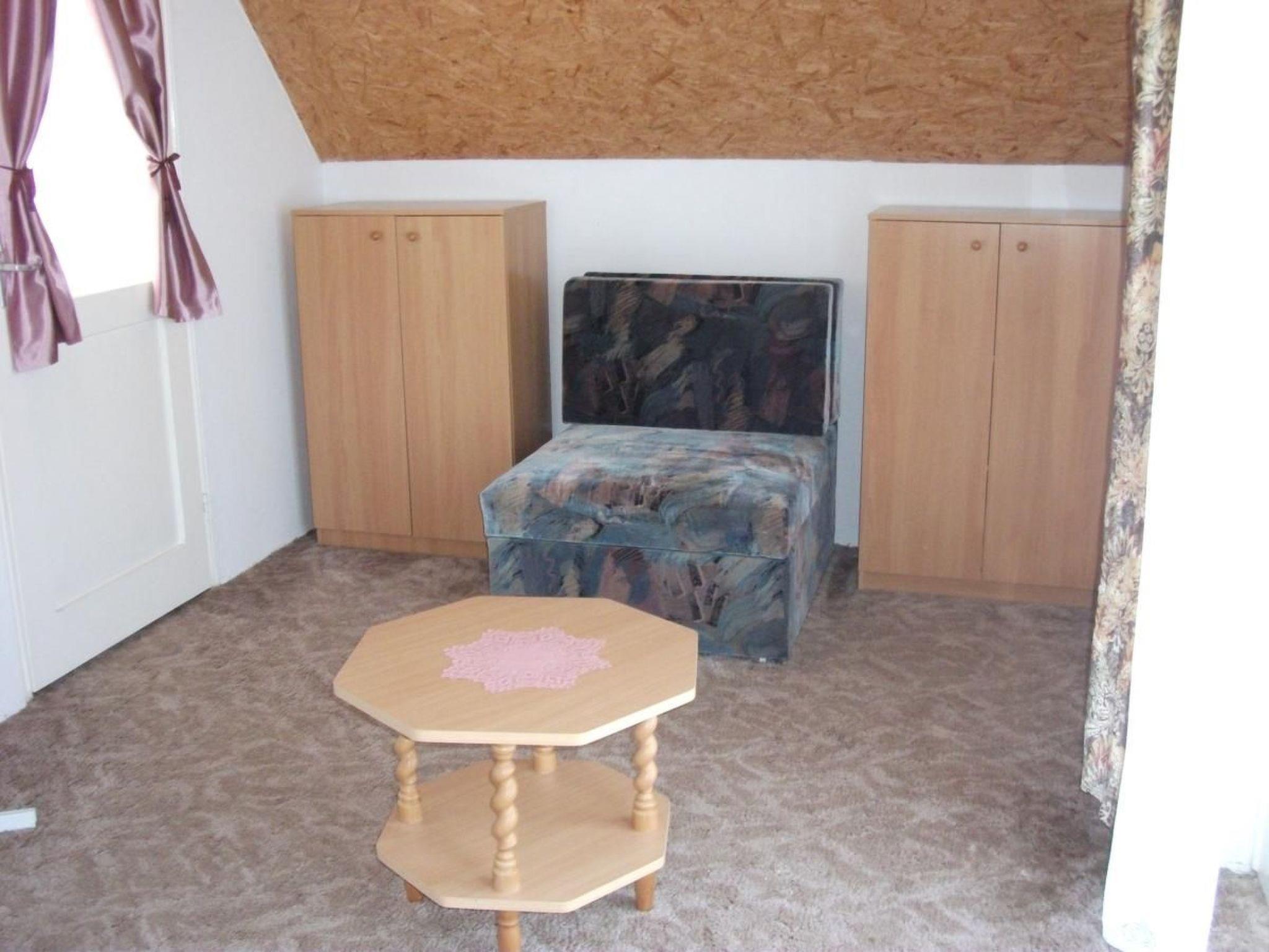 Das gelbe Häuschen ist 90m² groß und steht auf einem Grundstück von 300m². Das Erdgeschoss, 45m², besteht aus einem Wohnzimmer, einer Küche, einer Essecke und einem Bad. Das alles ist in einem Luftraum. Im Wohnzimmer ist eine Schlafcouch für zwei Personen, ein kleiner Tisch, zwei Sessel Schränke, ein Fernseher, HI - FI-Anlage und ein Kamin. Die Küche ist gut ausgestattet: Gasherd,Kühlschrank, Mikrowelle, Kaffeemaschine, Toaster. Die Essecke besteht aus einem großen Tisch mit sechs Stühlen. Im Stockwerk sind zwei Schlafzimmer und ein Bad. Im großen Schlafzimmet ist ein Doppelbett / 1,80 m breit/, zwei Schränke und zu einem Bett verstellbarer Sessel. Im kleinen Schlafzimmer ist ein Garderobenschrank und zwei Einzelbetten. In beiden Badezimmern ist eine Dusche, ein Waschbecken und eine Toilette.