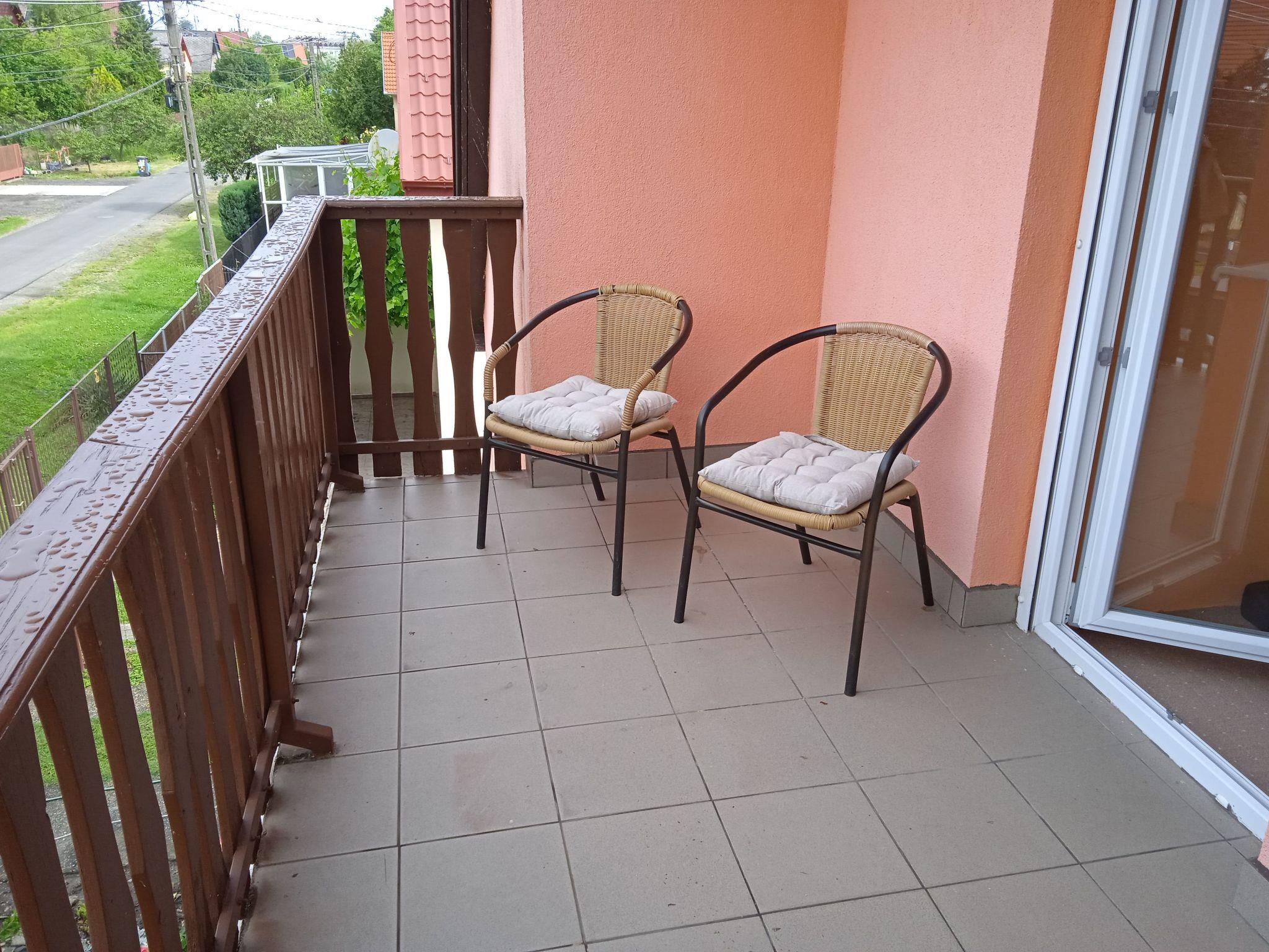 Obengeschoss: 1 Zweibettzimmer mit 2 Couches, 1 Zweibettzimmer mit ausgeziehendes Couch für 2 Pers. Küche mit Essecke. 1 Badezimmer mit Badewanne und mit WC. Balkon mit Gartenmöbeln.