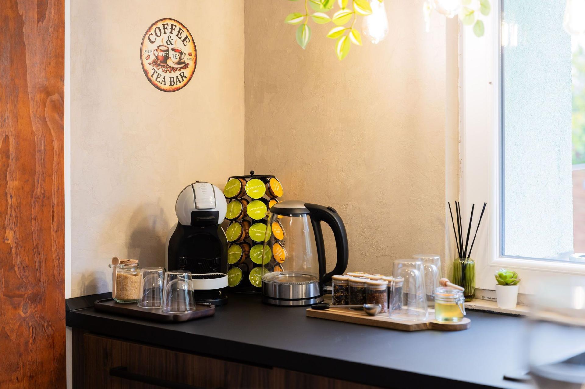 - Kaffee- und Teebar mit losem Bio-Blatt-Tee und Dolce Gusto
