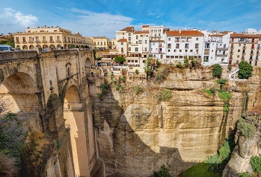 Eines der absoluten Highlights in Andalusien ist die Stadt Ronda, die in atemberaubender Position auf einer Höhe von 723 m in den Bergen liegt. Die weißgetünchten Häuser brachten ihr den Beinamen „weiße Stadt“ ein. Die Besonderheit von Ronda ist die Zweiteilung des Ortes durch eine tiefe Schlucht, die Tajo de Ronda. Auf der einen Seite der Puente Nuevo Brücke aus dem 18. Jahrhundert liegt die Altstadt La Ciudad und auf der anderen Seite die sogenannte Neustadt El Mercadillo. Sehenswürdigkeiten gibt es in beiden Ortsteilen, wobei die Stierkampfarena im Stil des spanischen Barocks, der Palacio de Mondragon, der heute ein interessantes Museum beherbergt und die historischen Bäder im arabischen Viertel nur einige der Attraktionen sind, die Sie während eines Besuches unbedingt besichtigen sollten. Ronda ist außerdem ein idealer Ausgangspunkt für Wandertouren durch die traumhafte Berglandschaft.
