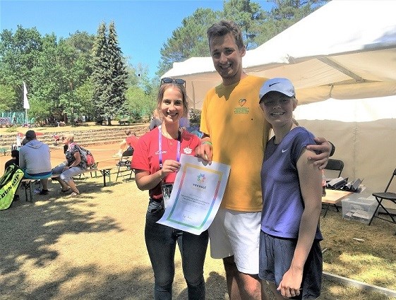 Dieses Jahr fanden die Wettkämpfe national in Berlin statt. Hier v.l. Alina, Louis und Paula mit dem Vacasol Zertifikat auf dem Tennisgelände des SC Brandenburg.