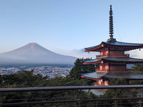 Am nächsten Tag haben wir uns dann um fünf Uhr morgens aus dem Bett gequält und wurden dafür fürstlich belohnt. Von einem Tempel in der Nähe hatten wir einen perfekten Blick auf den Sonnenaufgang über dem Fuji, wolkenlos und perfekt symmetrisch hat sich dort der Berg präsentiert und auf einmal habe ich verstanden, warum dieser Berg heilig ist.